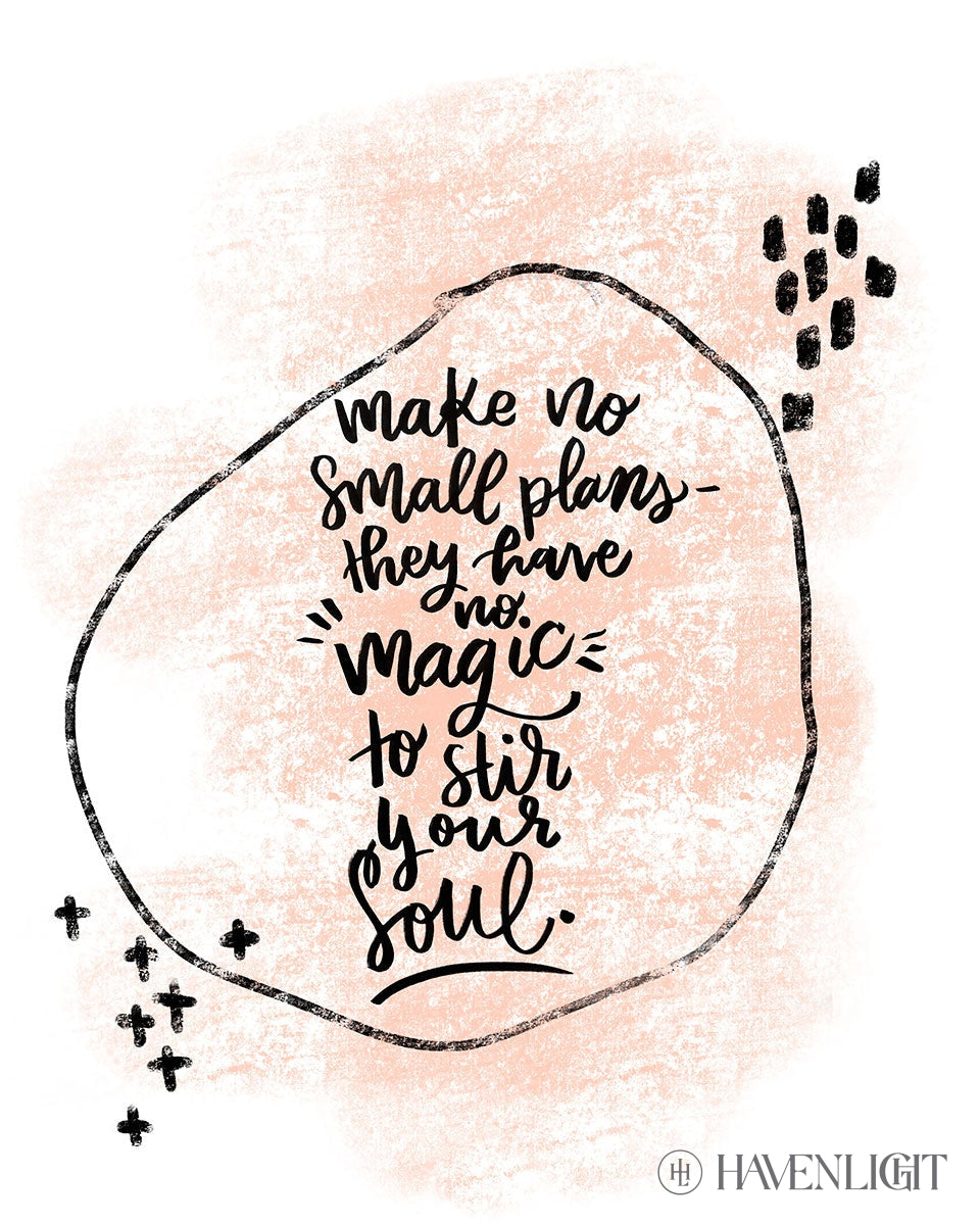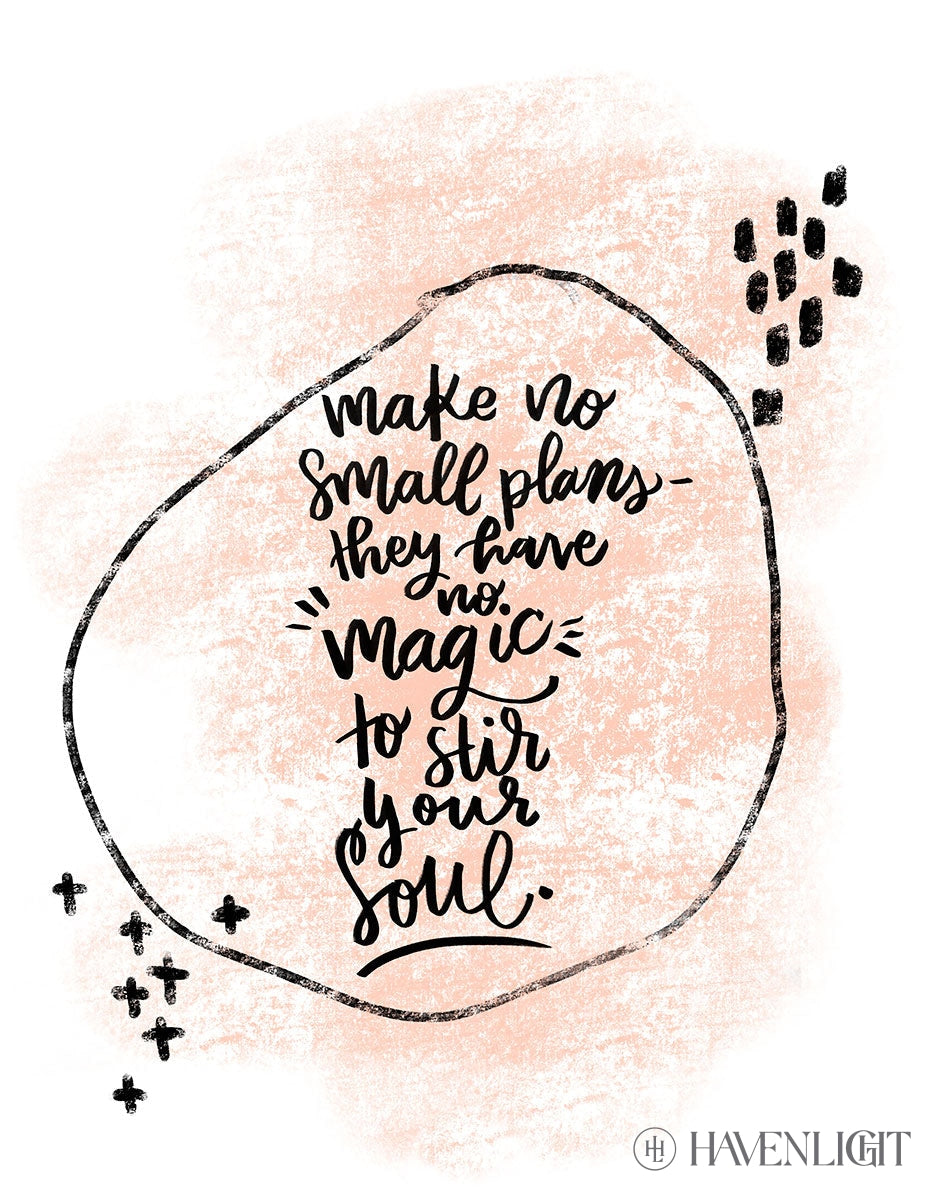 Insprational home decor with the words Make no small plans - they have no magic to stir your soul.