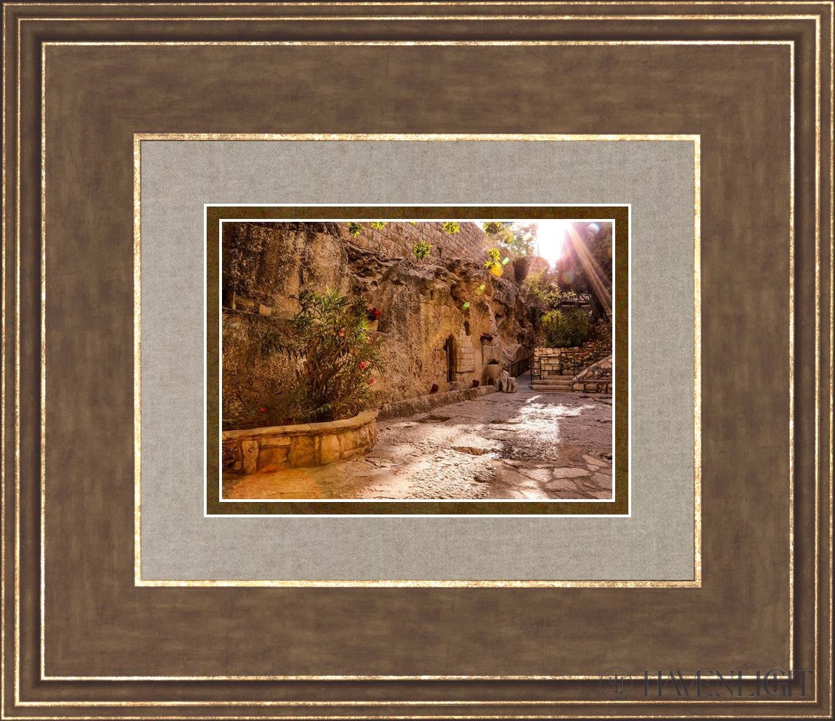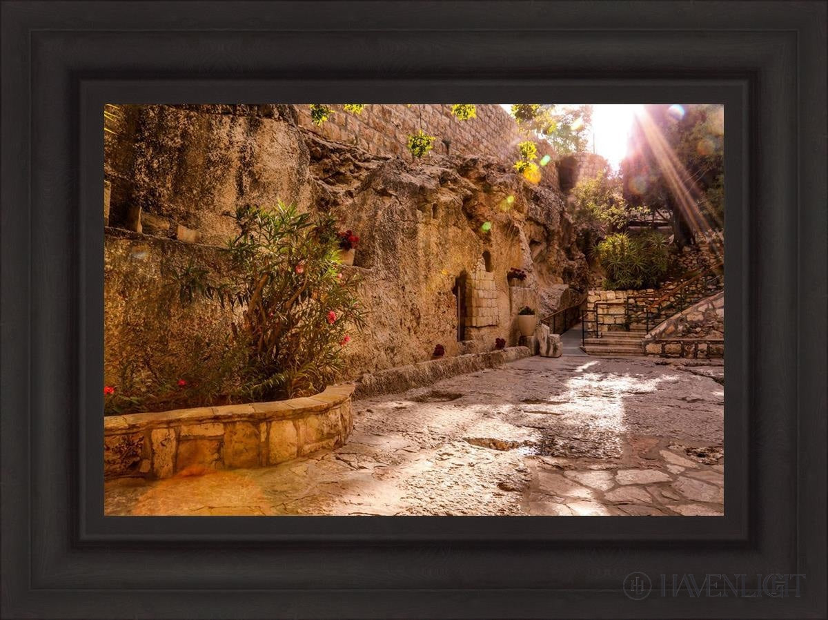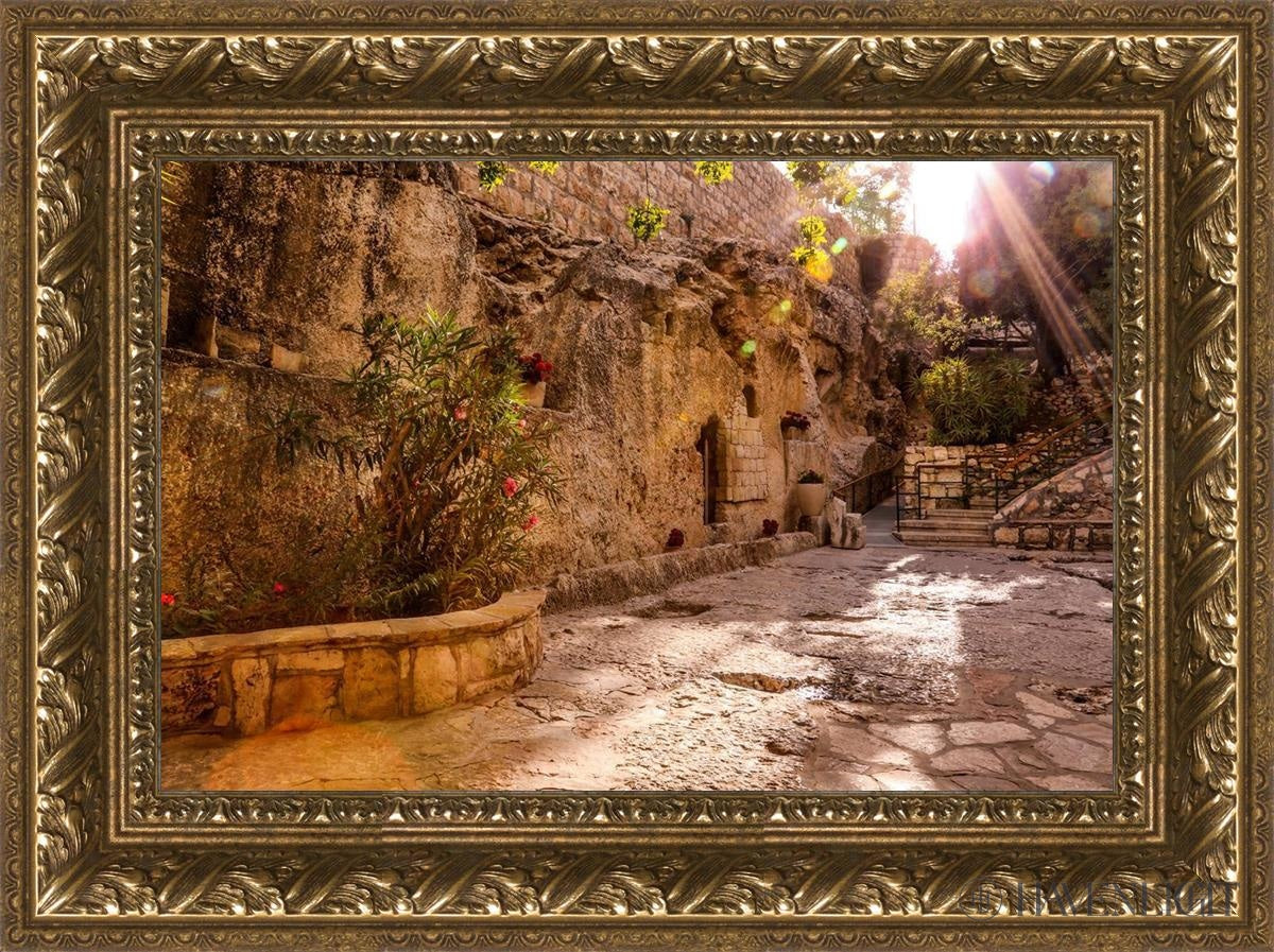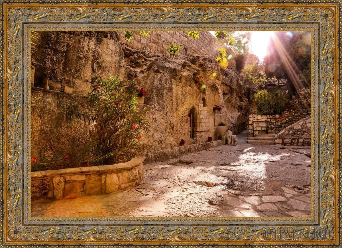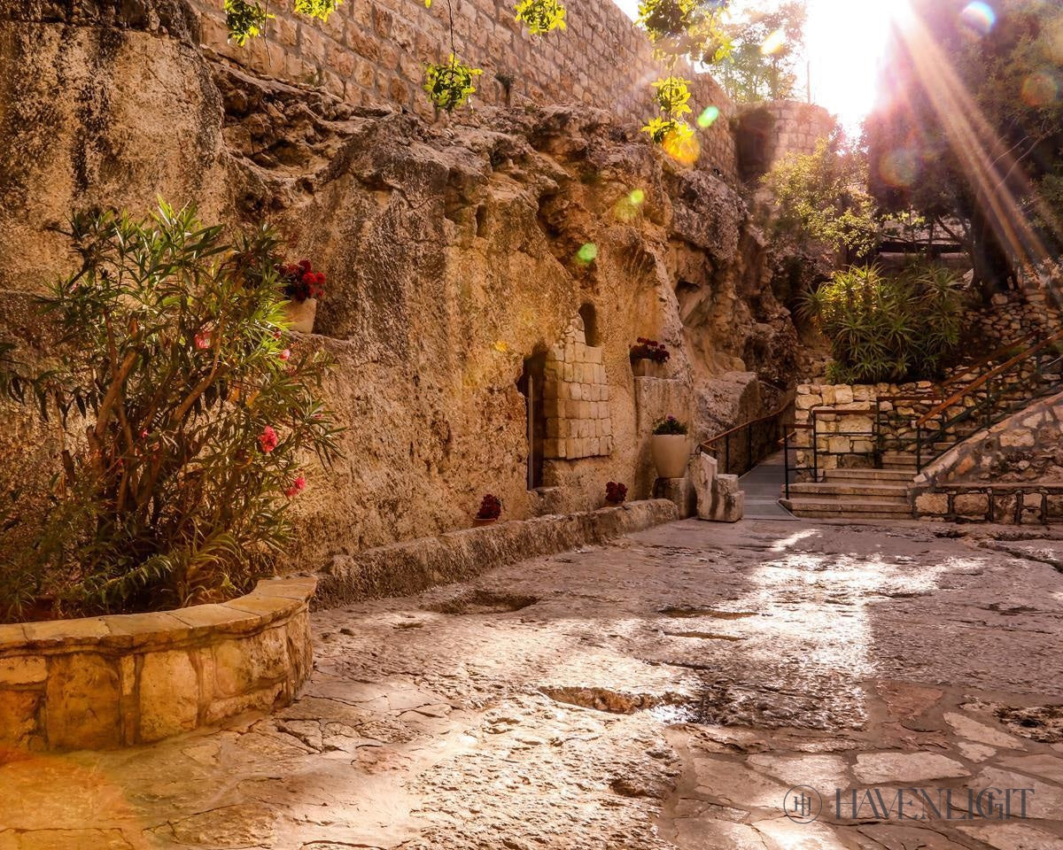By special arrangements we were able to enter this sacred site long before sunrise one spring morning. It was amazing to carefully watch the early light as it began to change the colors and tones of the bedrock before us. I could not stop taking pictures. But then the morning rays began to filter through the trees as the sun rose from behind the Mount of Olives. It was within the first two minutes of that light this picture was captured.****