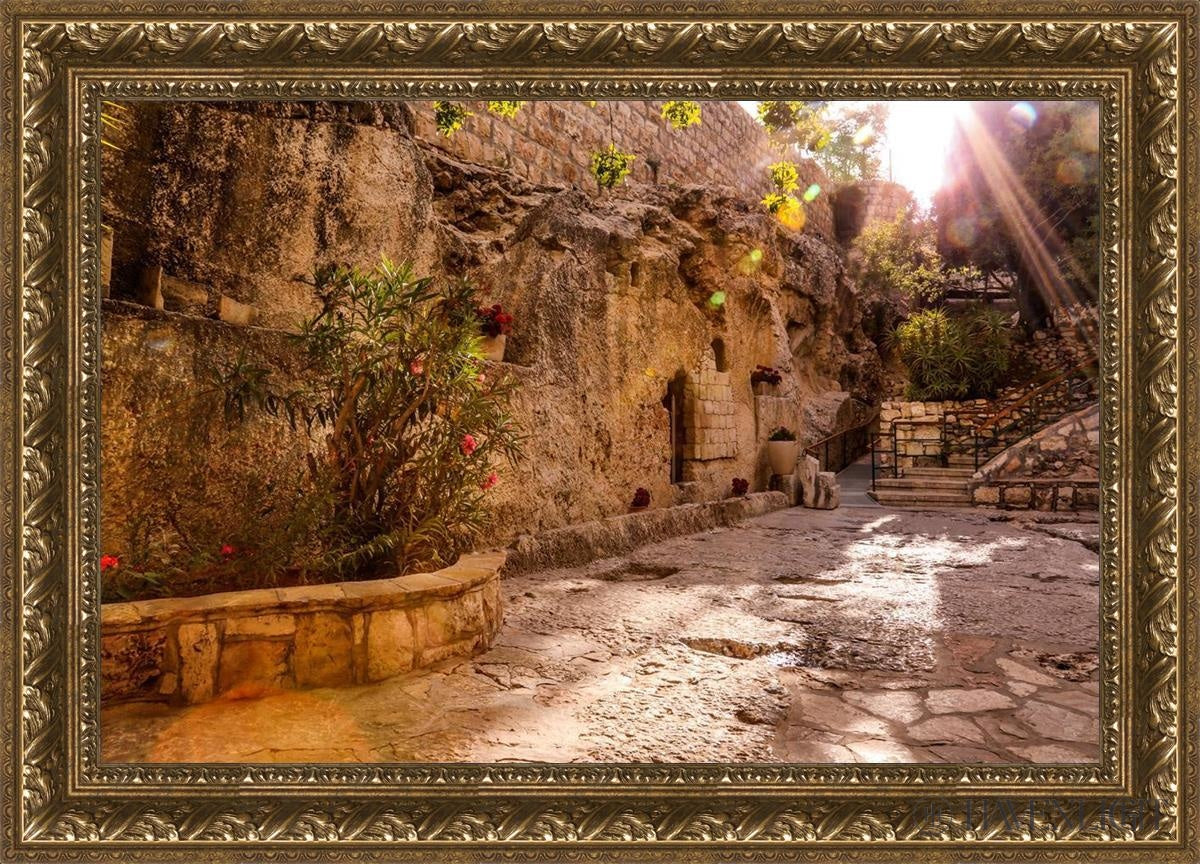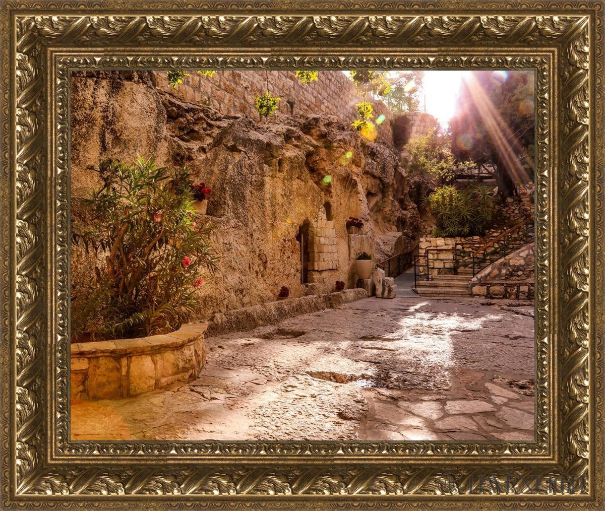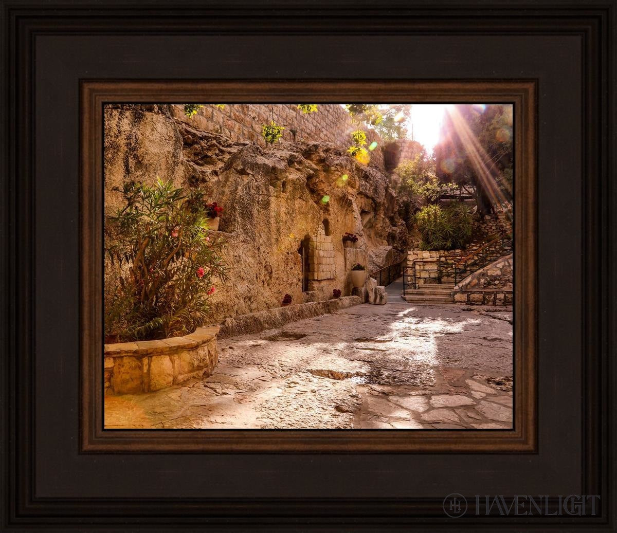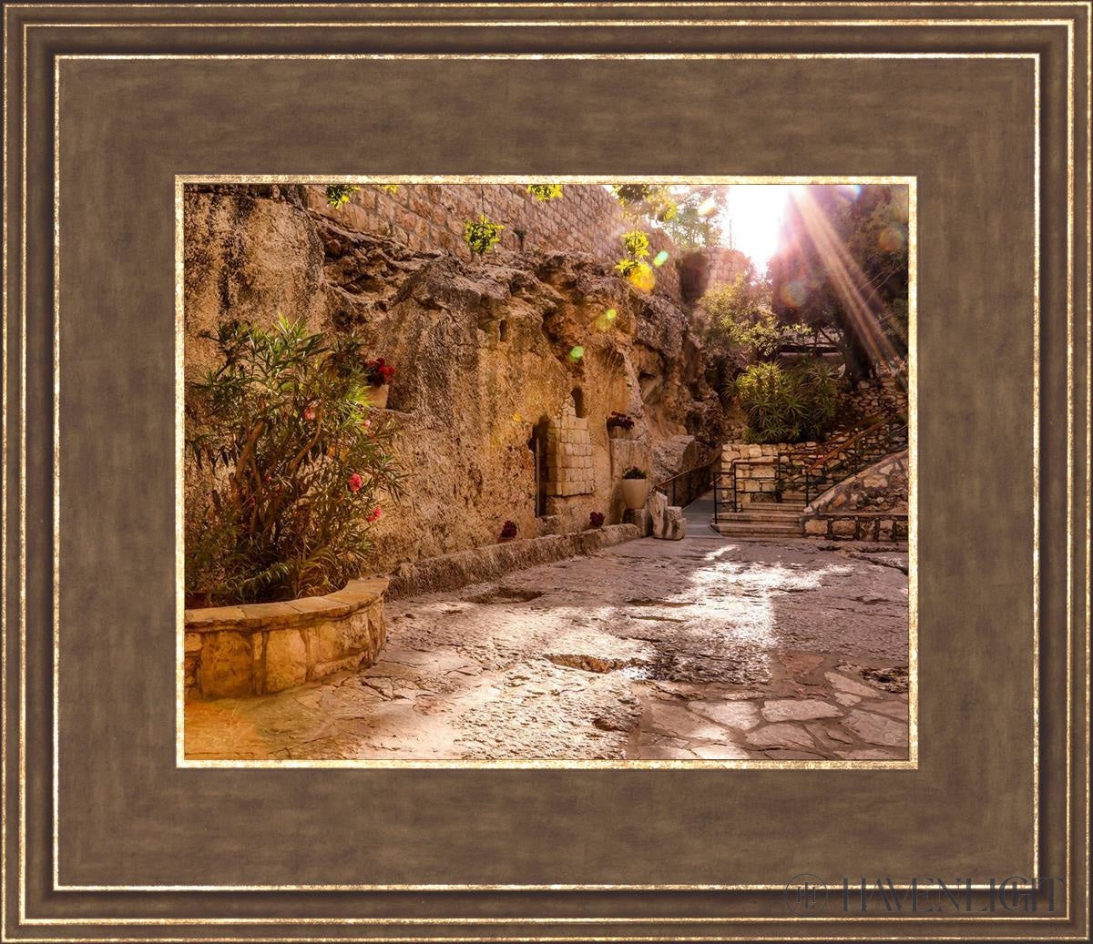 By special arrangements we were able to enter this sacred site long before sunrise one spring morning. It was amazing to carefully watch the early light as it began to change the colors and tones of the bedrock before us. I could not stop taking pictures. But then the morning rays began to filter through the trees as the sun rose from behind the Mount of Olives. It was within the first two minutes of that light this picture was captured.****