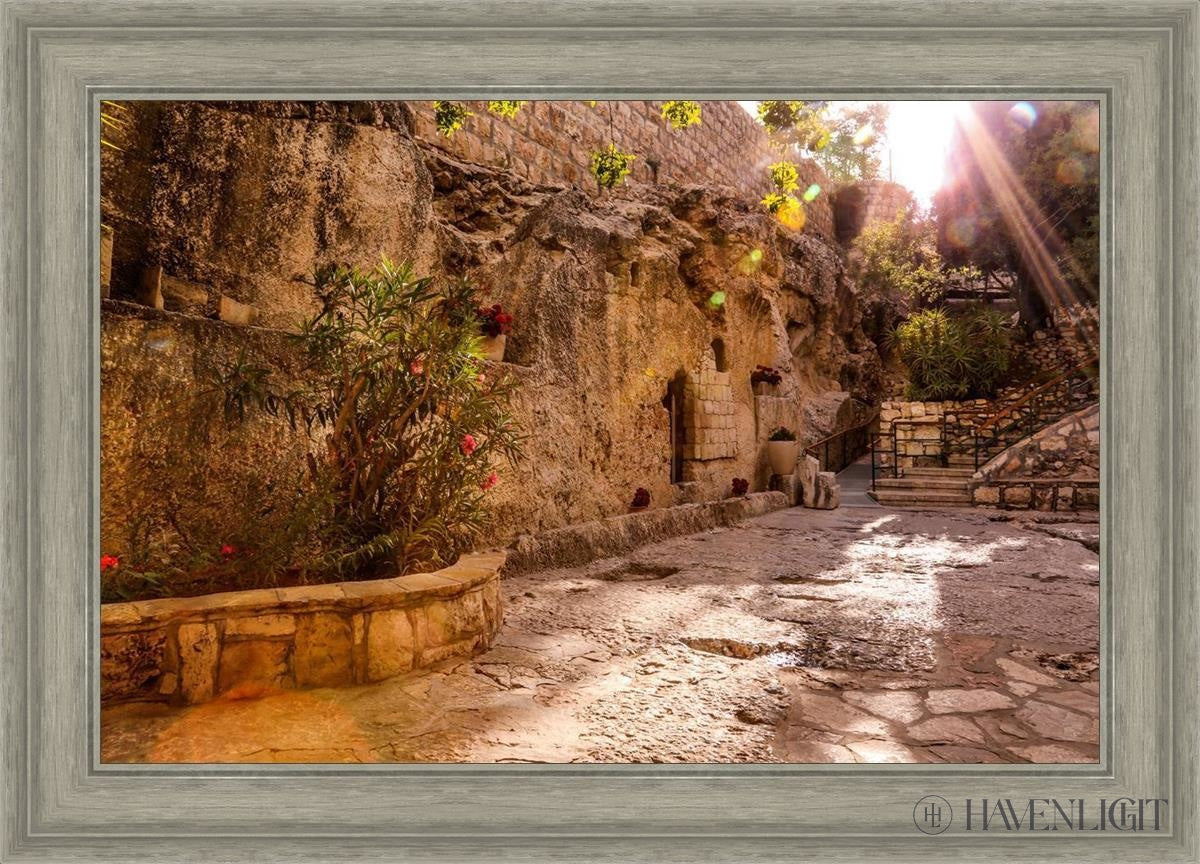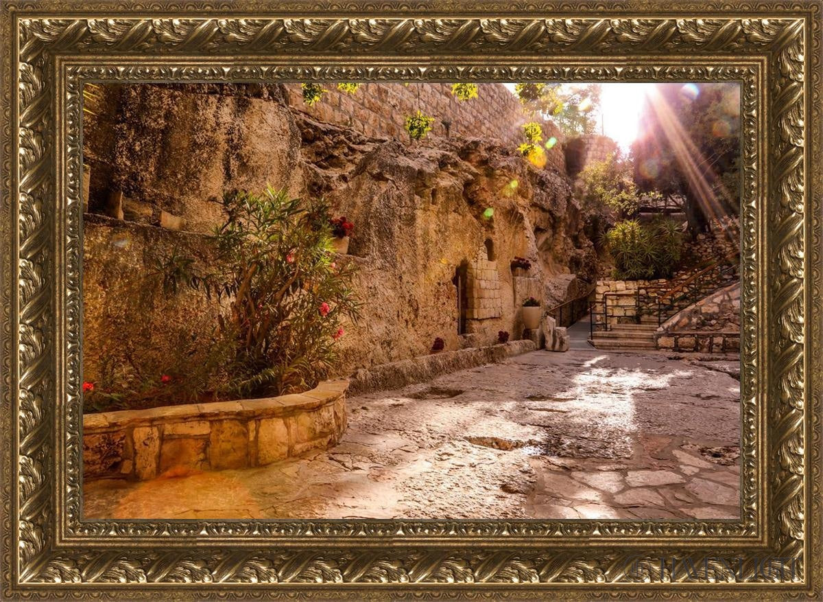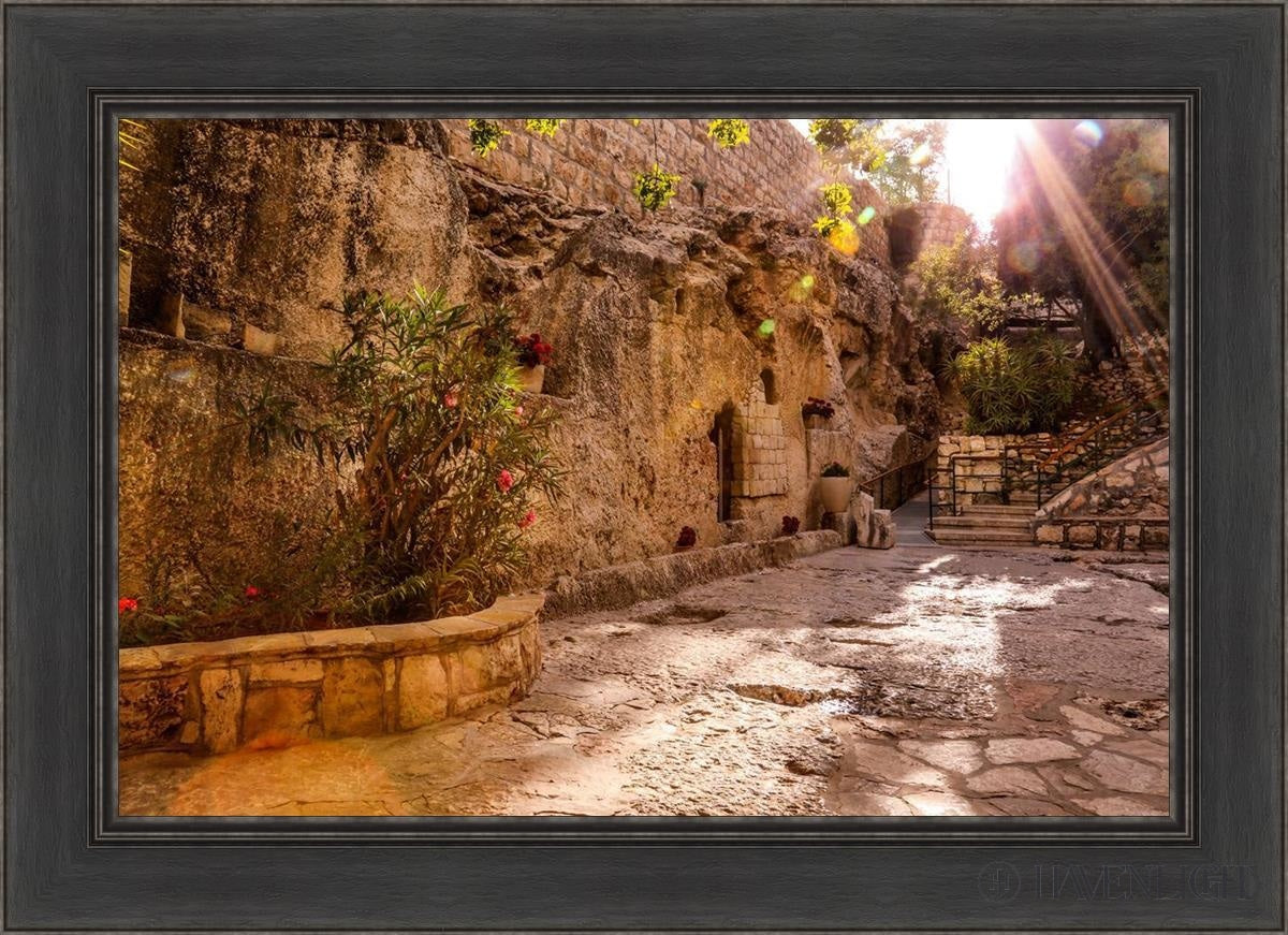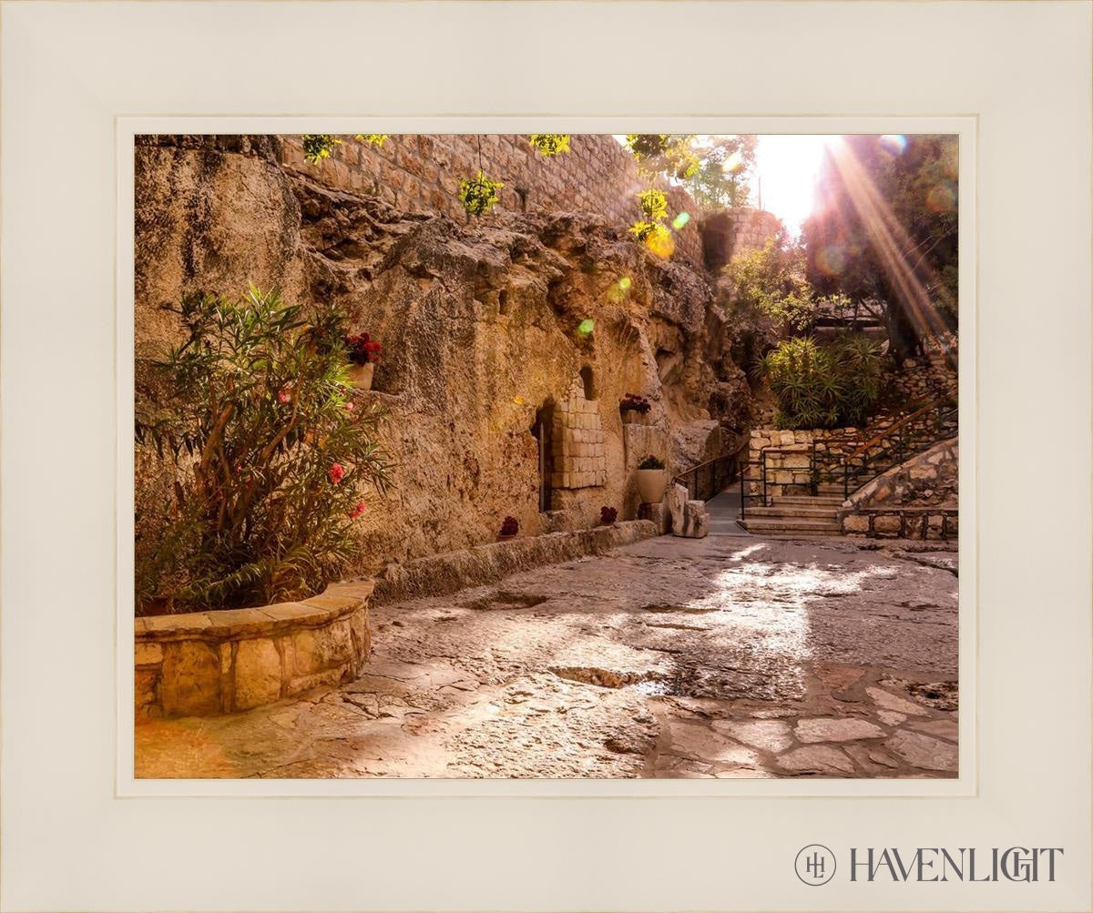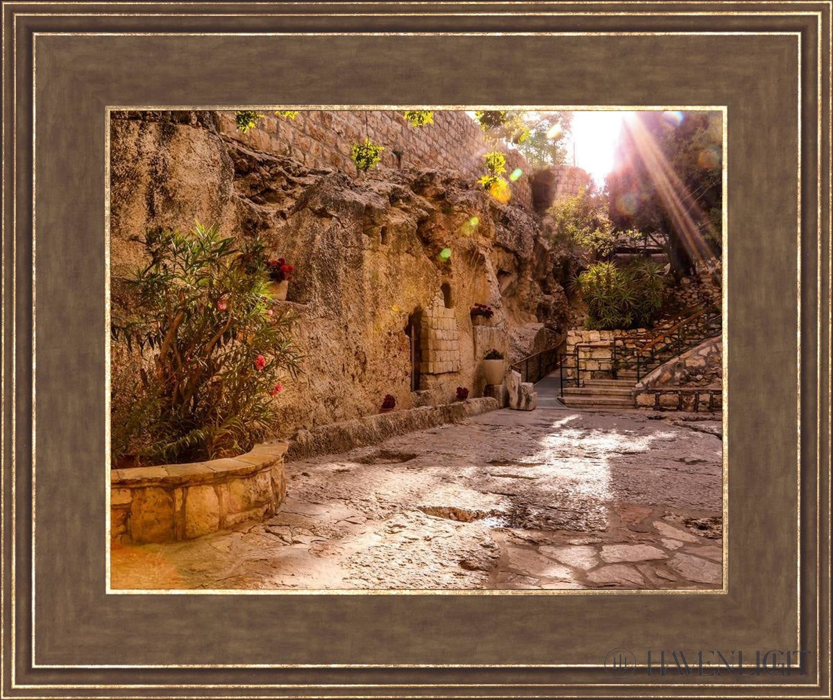 By special arrangements we were able to enter this sacred site long before sunrise one spring morning. It was amazing to carefully watch the early light as it began to change the colors and tones of the bedrock before us. I could not stop taking pictures. But then the morning rays began to filter through the trees as the sun rose from behind the Mount of Olives. It was within the first two minutes of that light this picture was captured.****