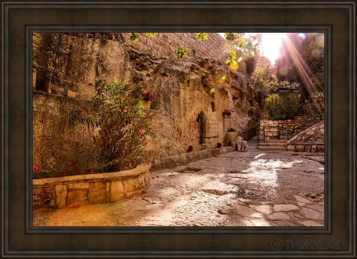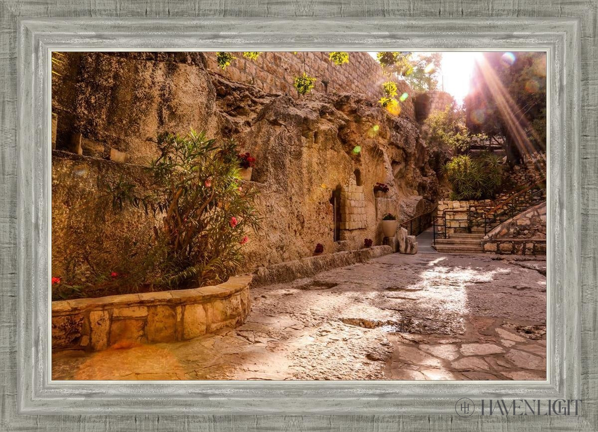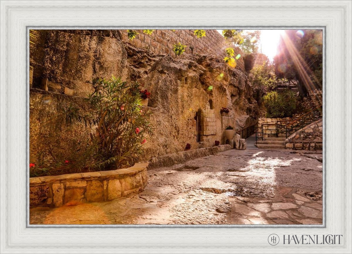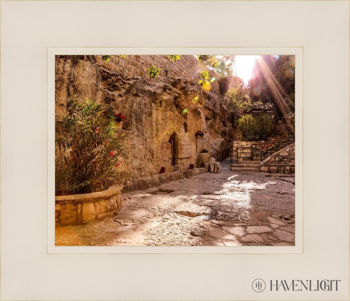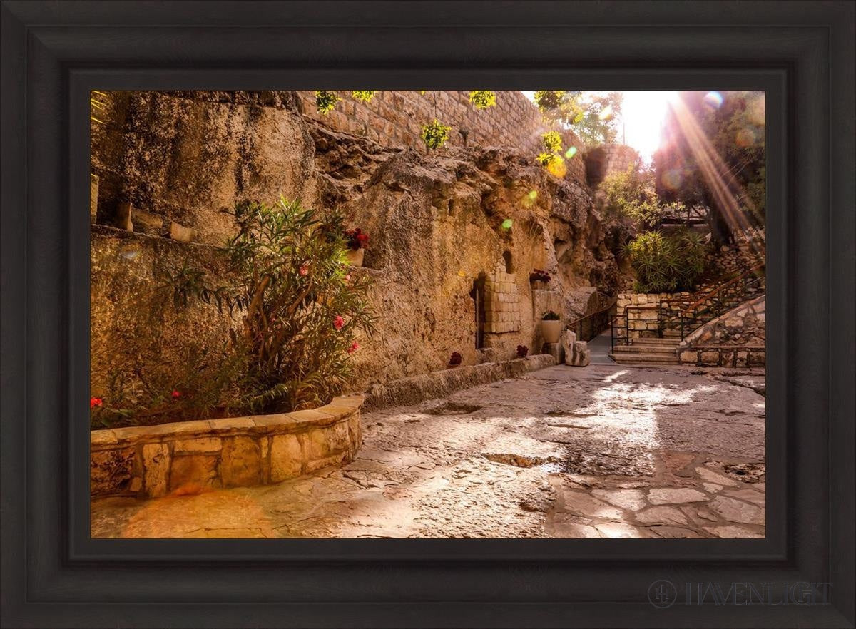 By special arrangements we were able to enter this sacred site long before sunrise one spring morning. It was amazing to carefully watch the early light as it began to change the colors and tones of the bedrock before us. I could not stop taking pictures. But then the morning rays began to filter through the trees as the sun rose from behind the Mount of Olives. It was within the first two minutes of that light this picture was captured.****