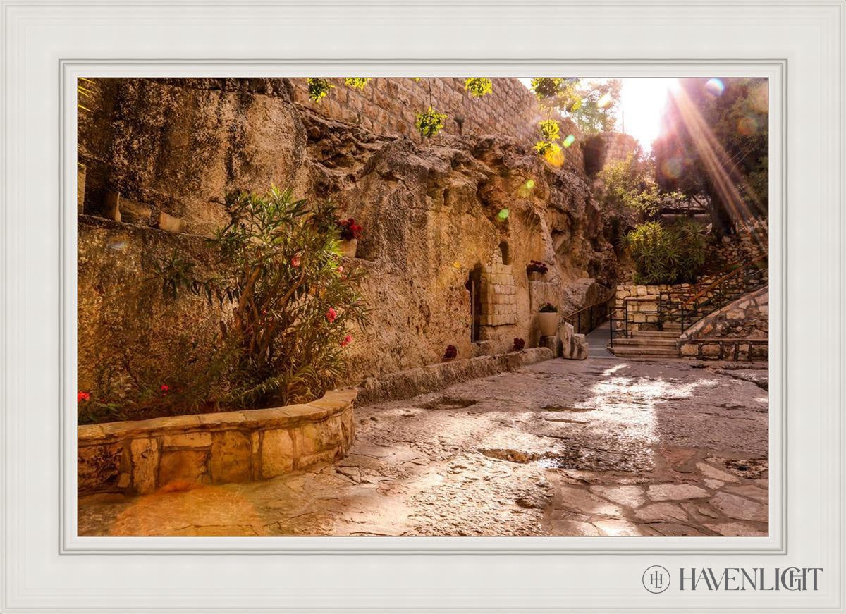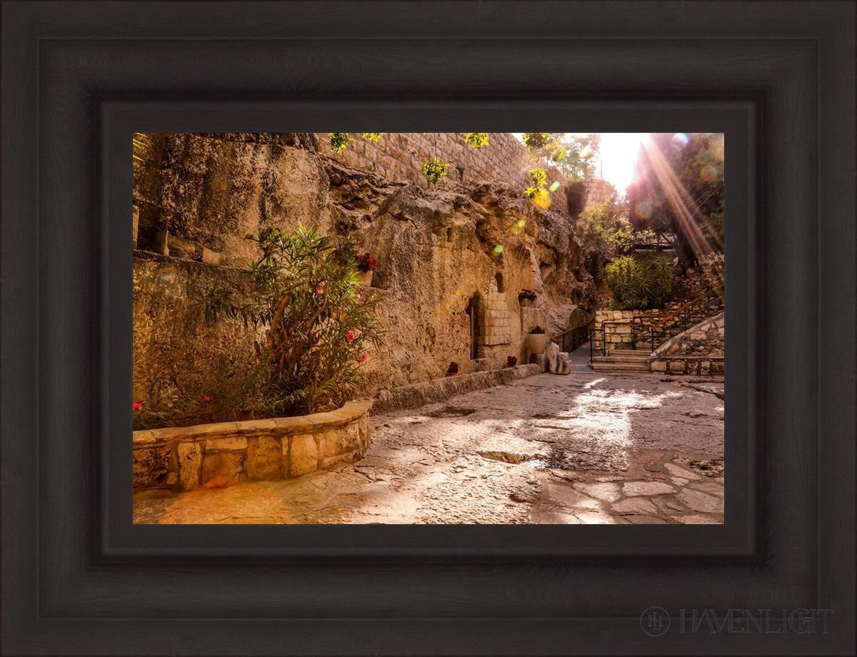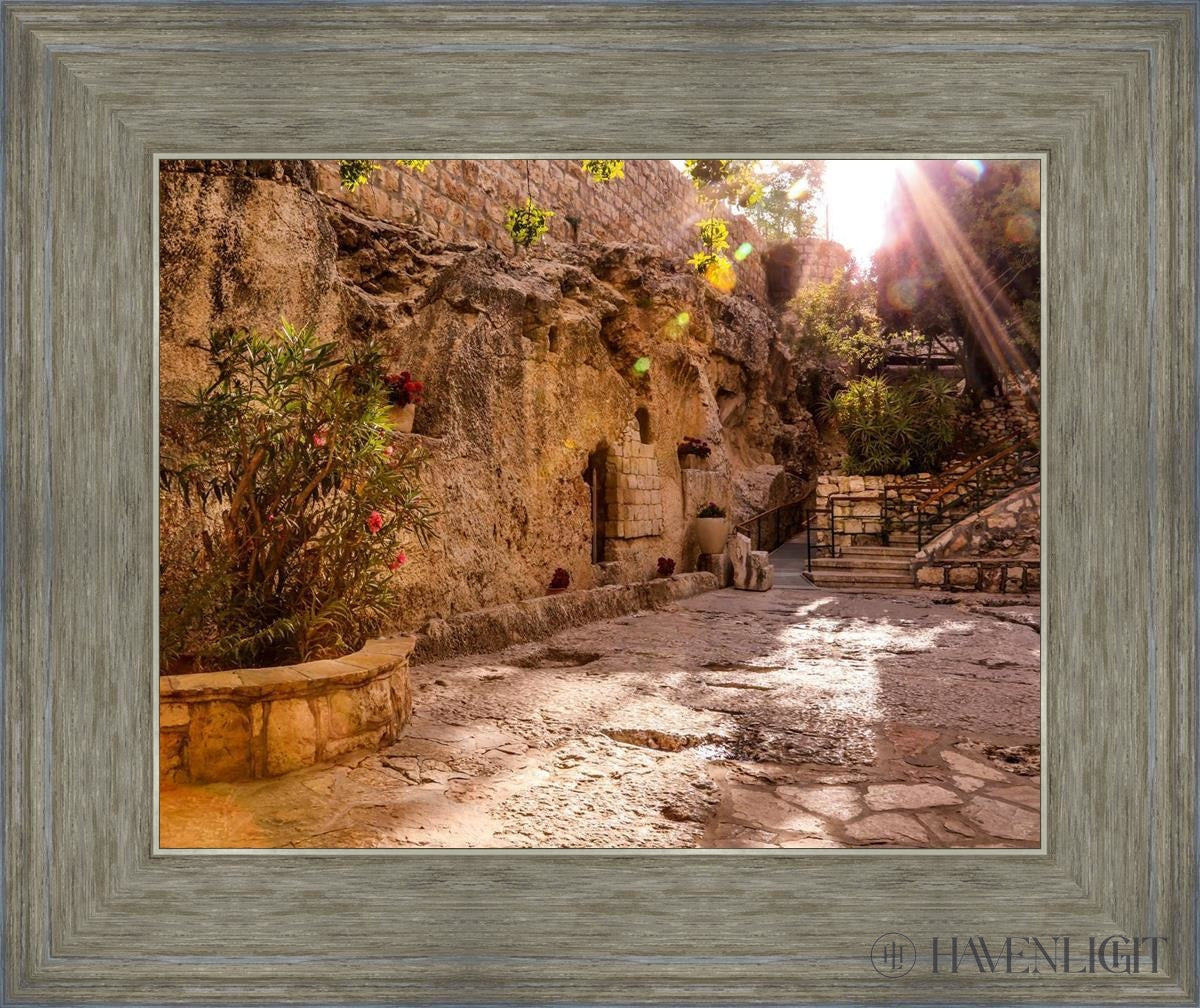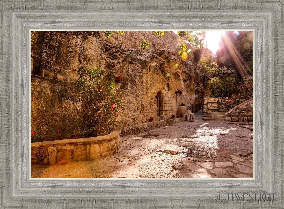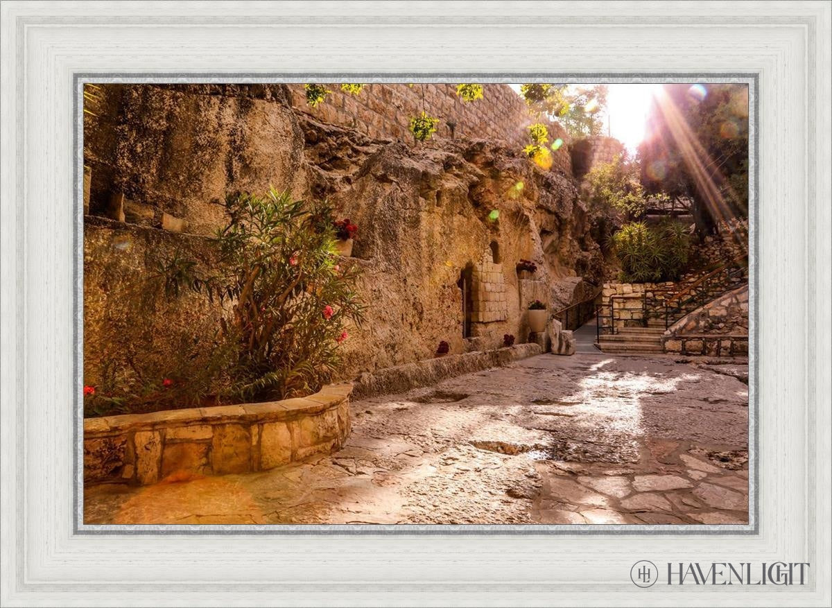 By special arrangements we were able to enter this sacred site long before sunrise one spring morning. It was amazing to carefully watch the early light as it began to change the colors and tones of the bedrock before us. I could not stop taking pictures. But then the morning rays began to filter through the trees as the sun rose from behind the Mount of Olives. It was within the first two minutes of that light this picture was captured.****