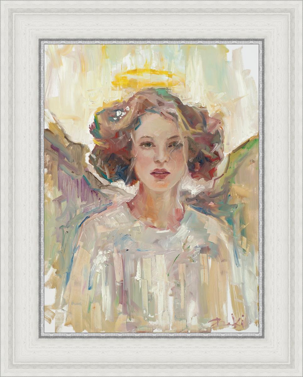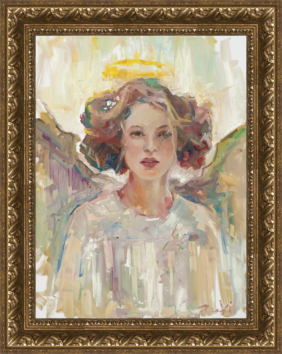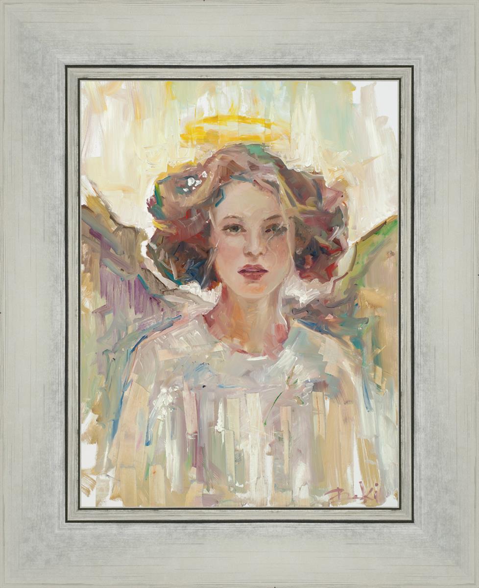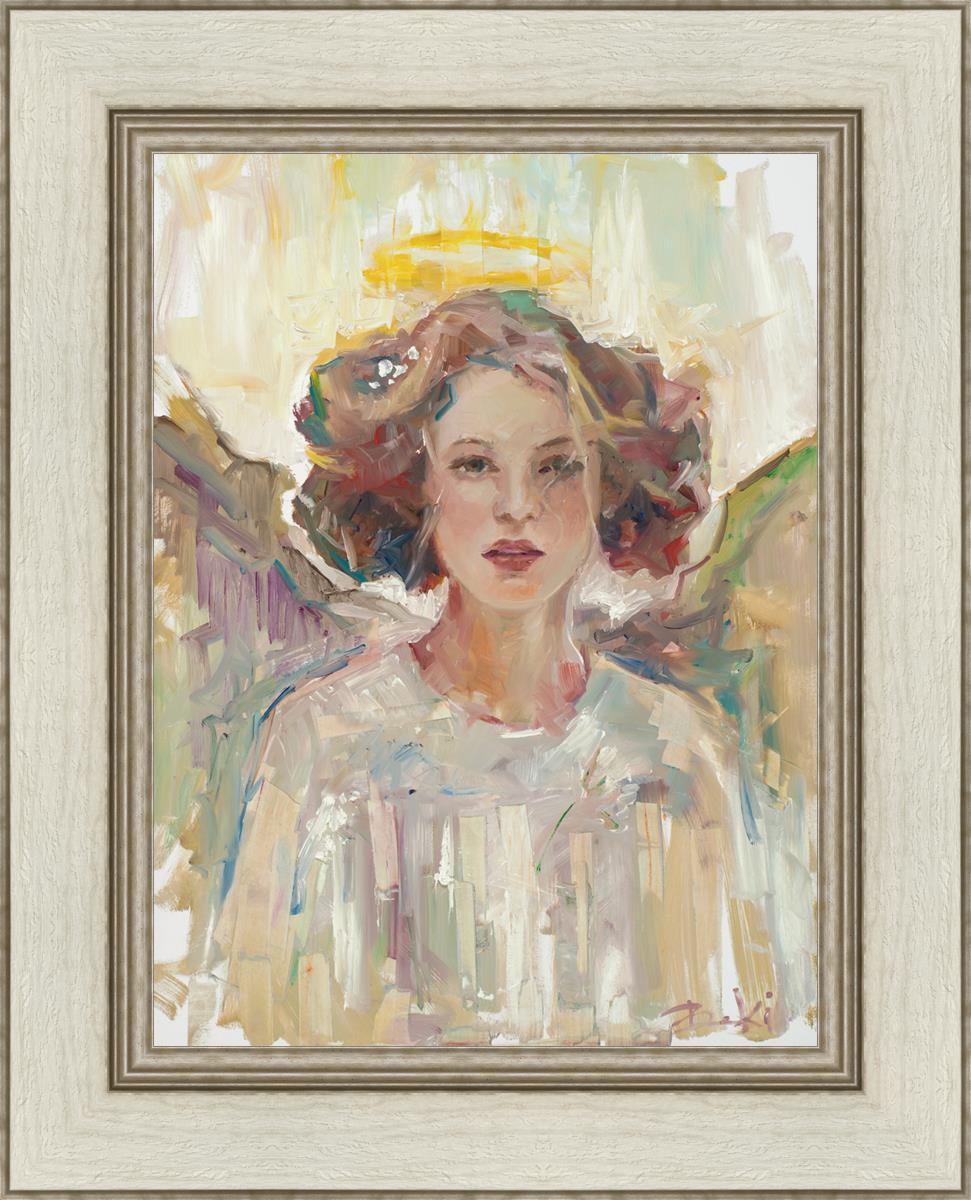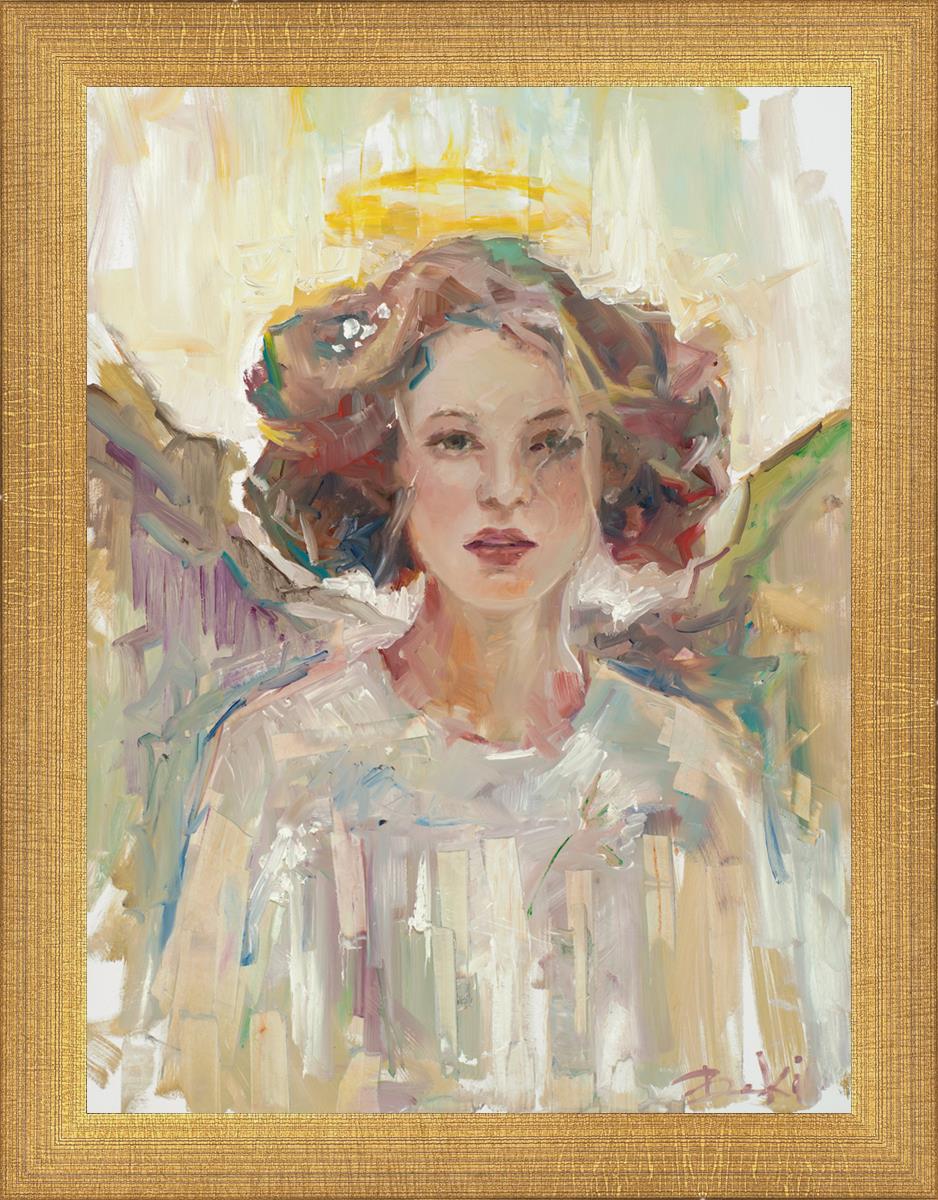 "Disheveled Guardian" is a playful depiction of the artist's vision of her guardian angel - a figure both beautiful and loving, yet slightly worn around the edges. The lively brush strokes suggest chaos and perpetual movement, reflecting the artist's perception of the environment she oversees. Despite the apparent disarray, there's a profound sense of devotion and tenderness in her gaze, highlighting her unwavering commitment to her charge. While she may not find much peace amidst the lively brood of children she watches over, her presence remains a steadfast source of comfort, protection, and unconditional love.