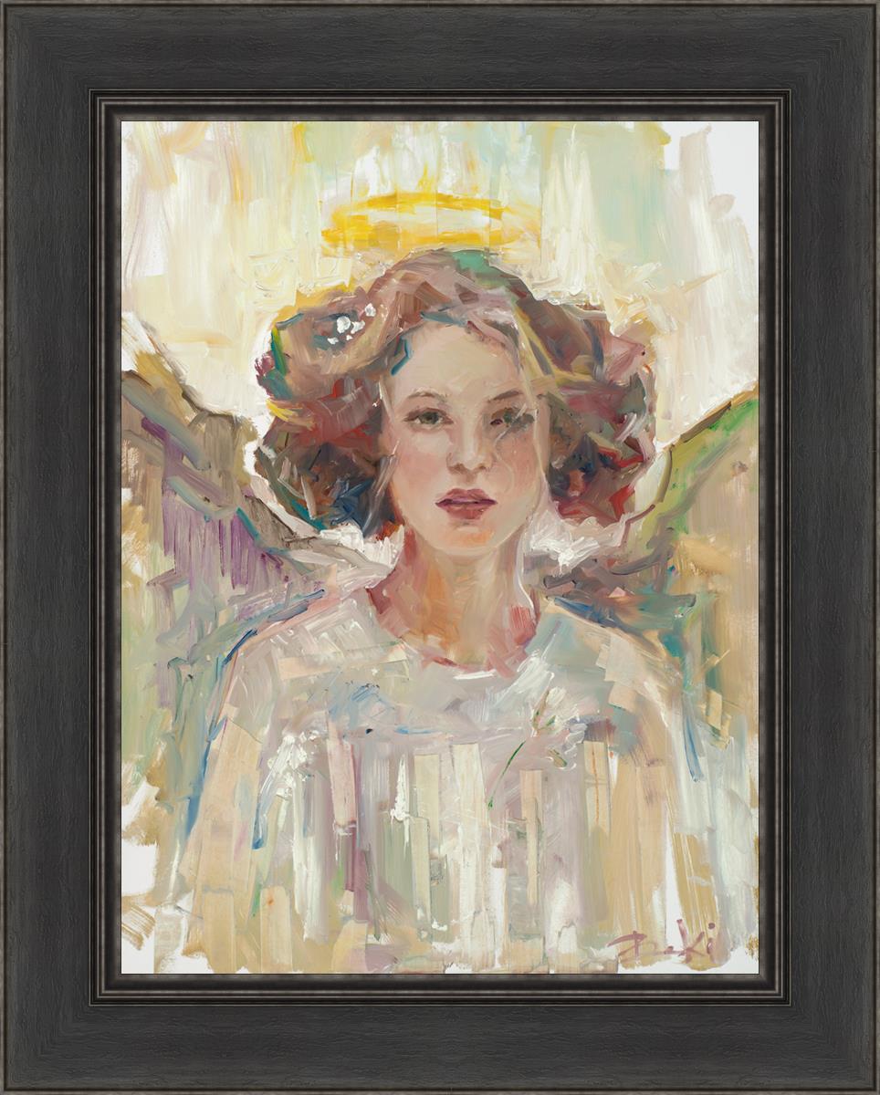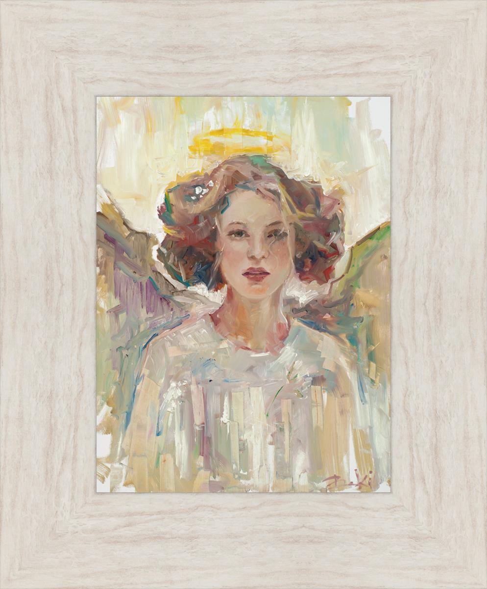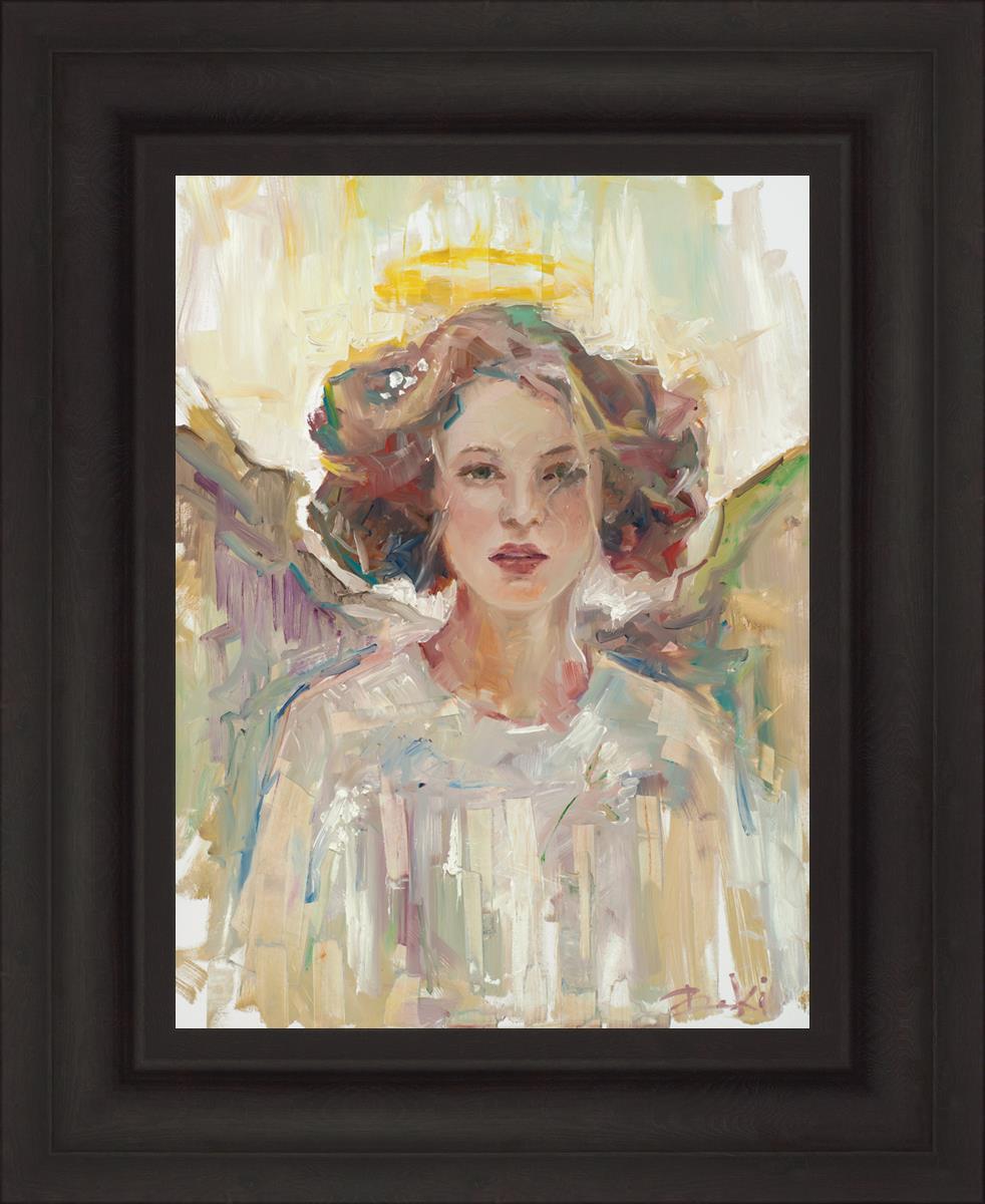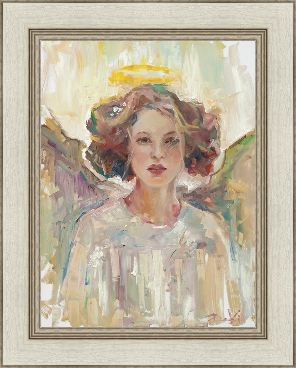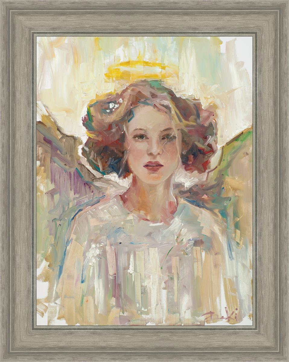 "Disheveled Guardian" is a playful depiction of the artist's vision of her guardian angel - a figure both beautiful and loving, yet slightly worn around the edges. The lively brush strokes suggest chaos and perpetual movement, reflecting the artist's perception of the environment she oversees. Despite the apparent disarray, there's a profound sense of devotion and tenderness in her gaze, highlighting her unwavering commitment to her charge. While she may not find much peace amidst the lively brood of children she watches over, her presence remains a steadfast source of comfort, protection, and unconditional love.