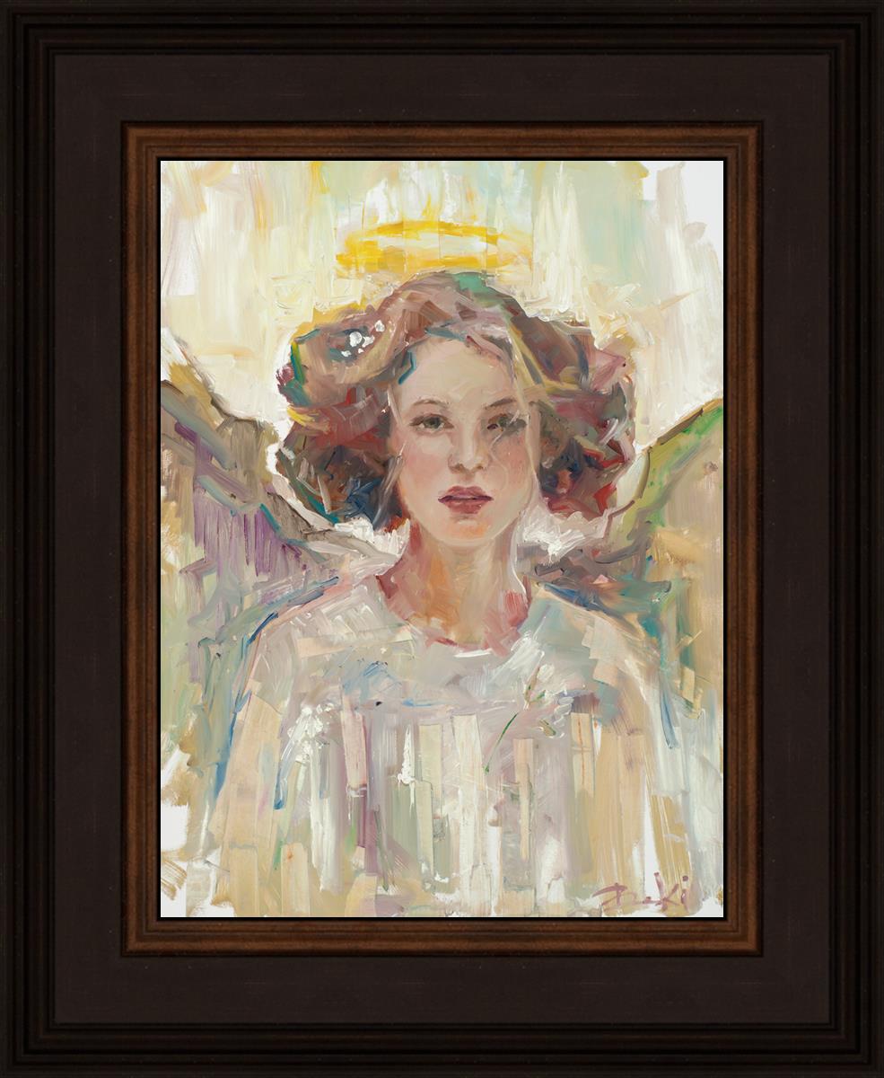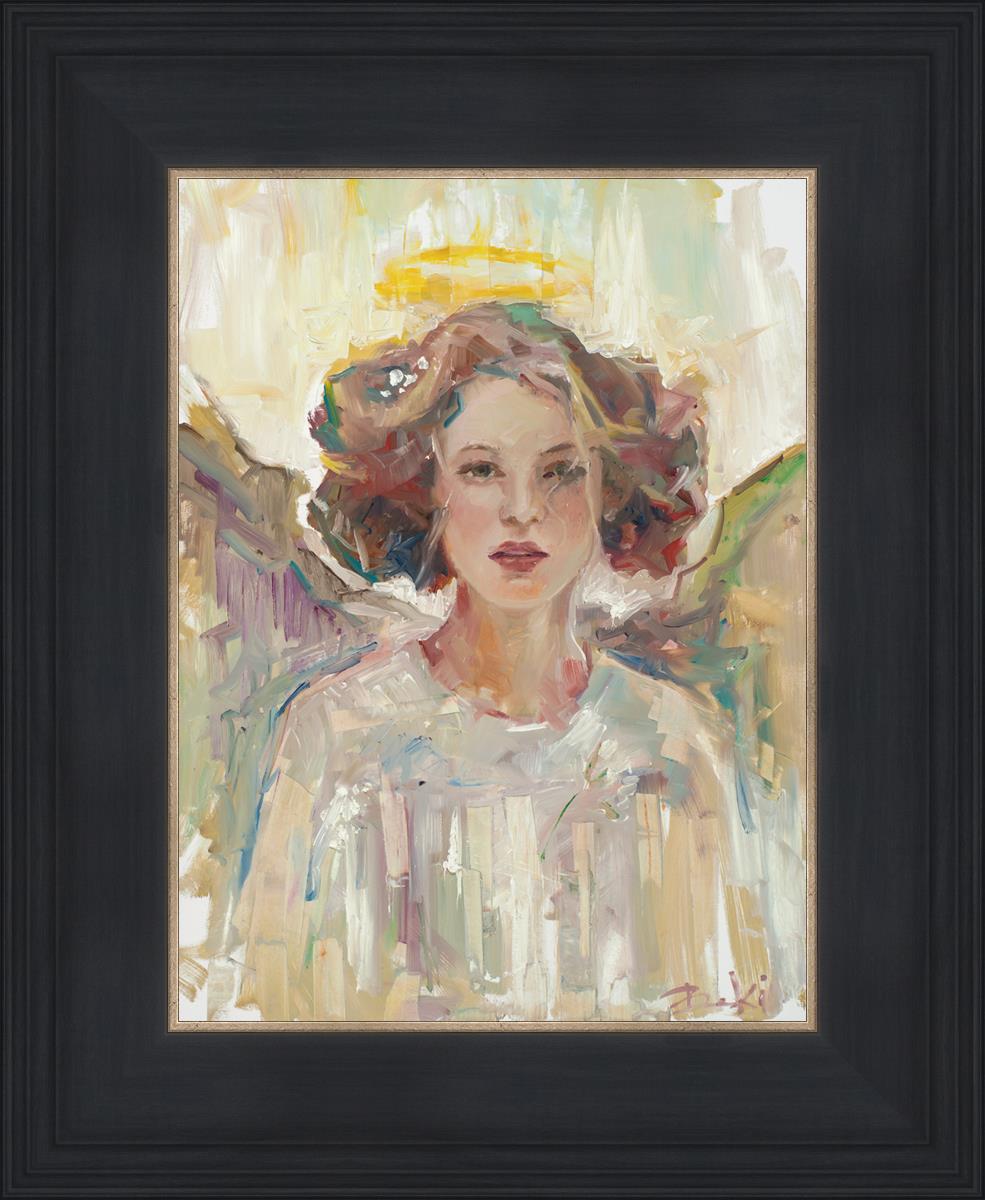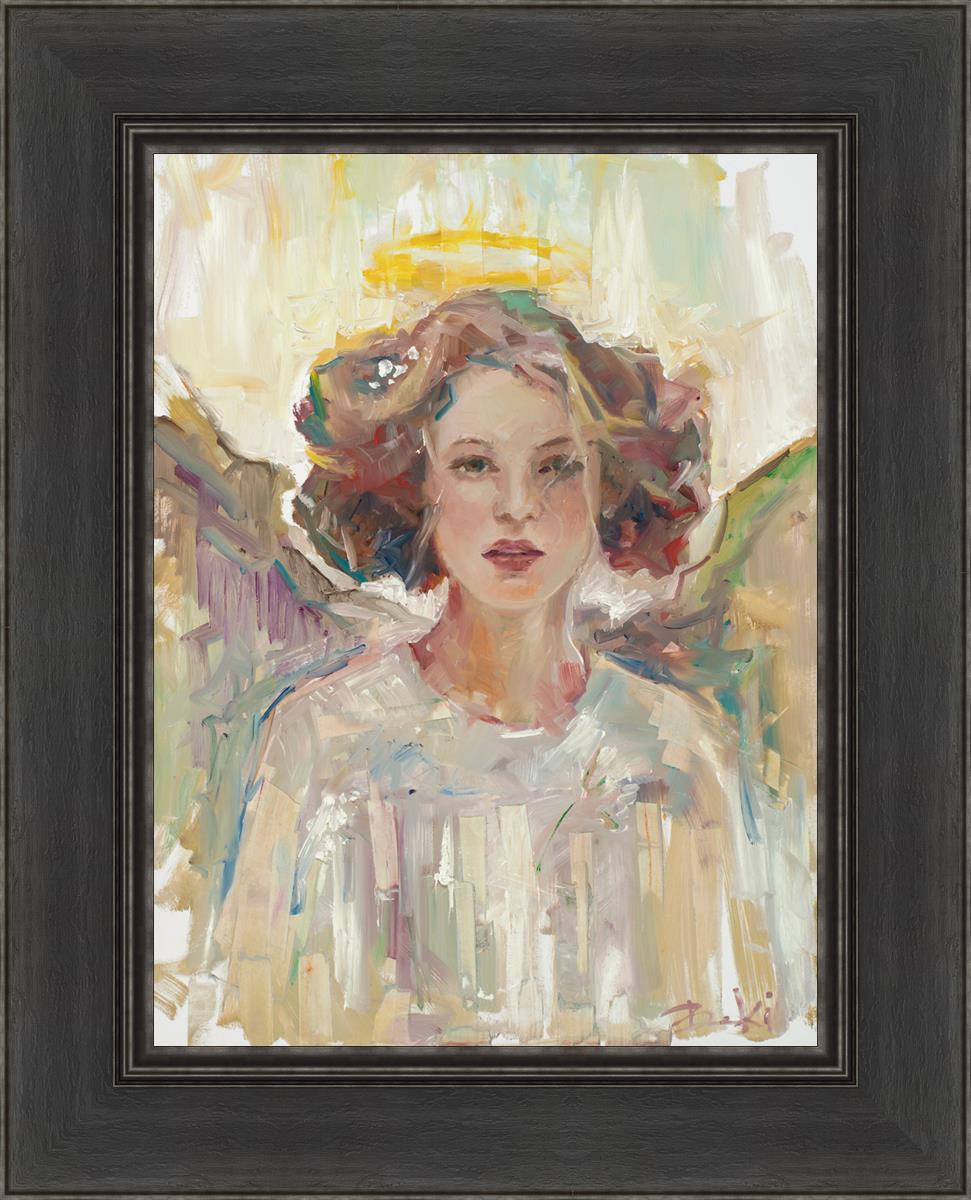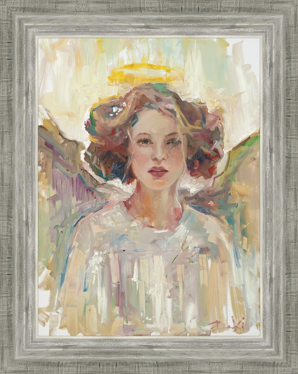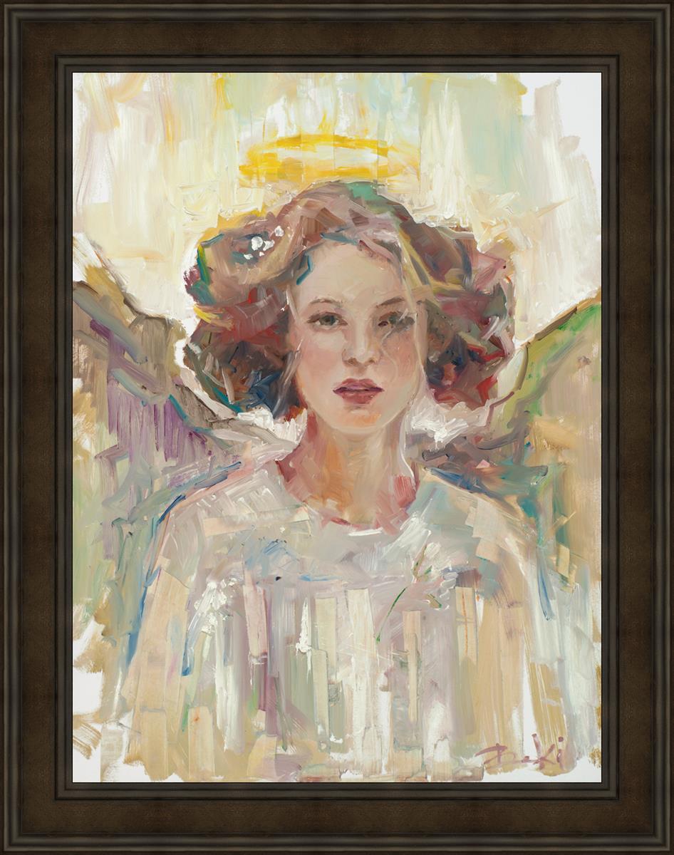 "Disheveled Guardian" is a playful depiction of the artist's vision of her guardian angel - a figure both beautiful and loving, yet slightly worn around the edges. The lively brush strokes suggest chaos and perpetual movement, reflecting the artist's perception of the environment she oversees. Despite the apparent disarray, there's a profound sense of devotion and tenderness in her gaze, highlighting her unwavering commitment to her charge. While she may not find much peace amidst the lively brood of children she watches over, her presence remains a steadfast source of comfort, protection, and unconditional love.