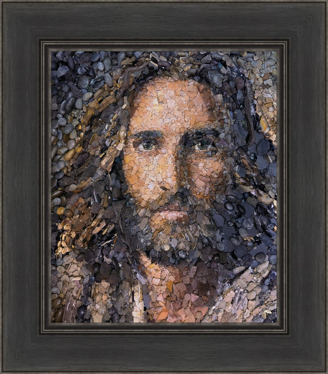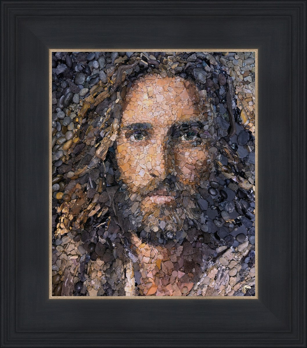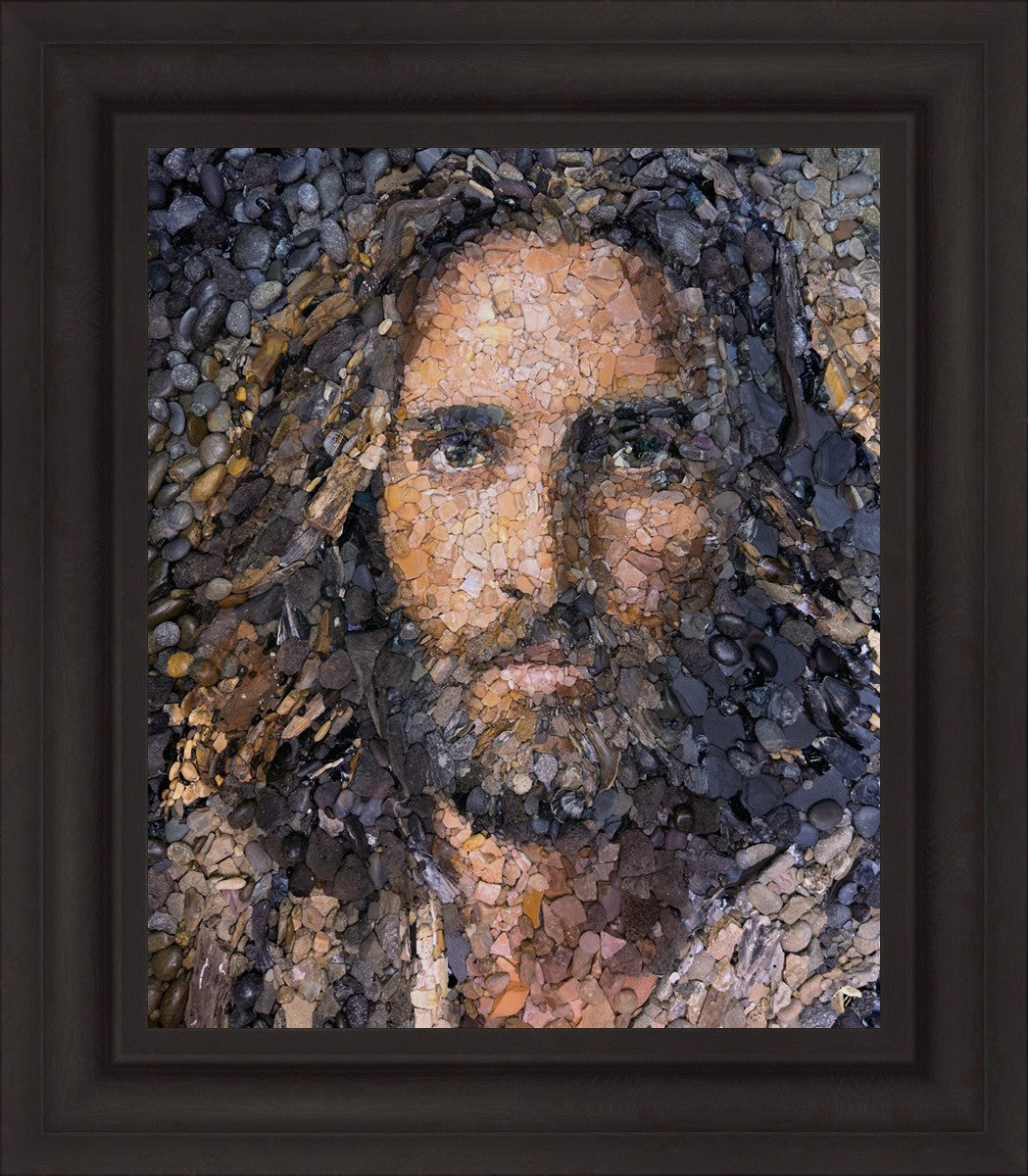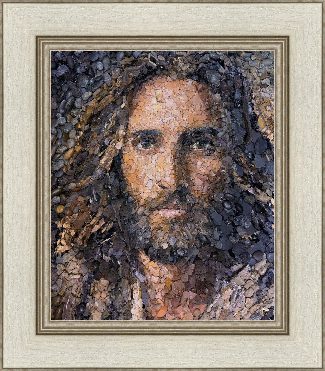 "A Sure Foundation" by Shelby Stroud is a remarkable portrait of Jesus created from a collage of stones, wood, and other earth elements, symbolizing strength and steadfastness. This unique artwork by Shelby Stroud is perfect for Christian homes and spaces, offering a powerful visual representation of faith and resilience.