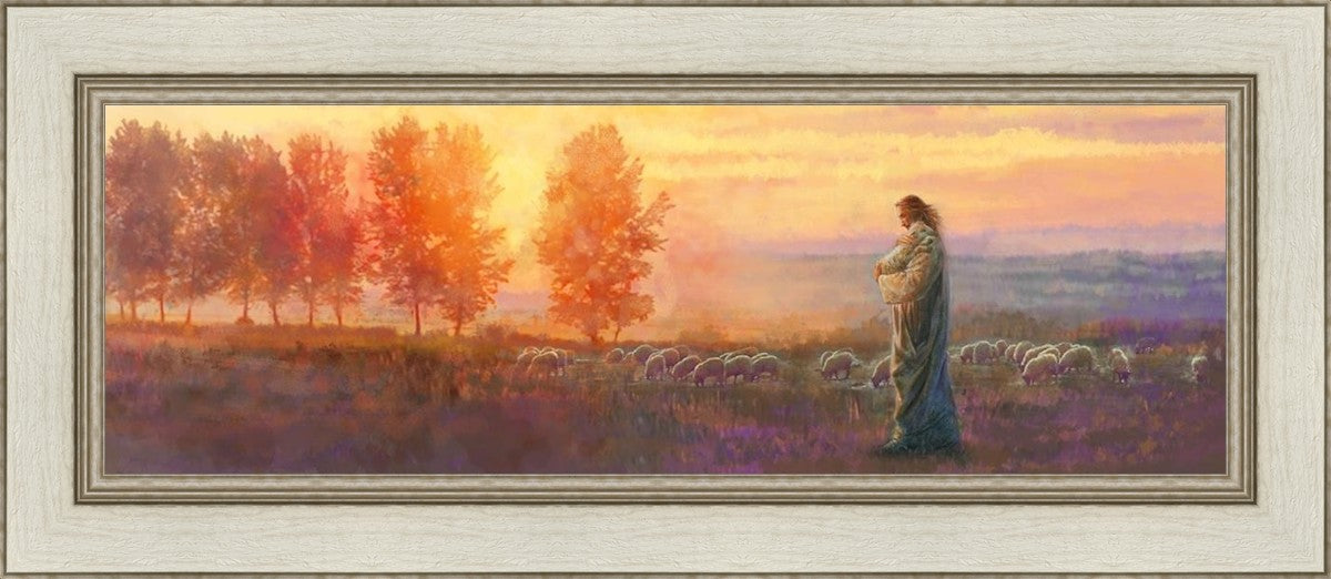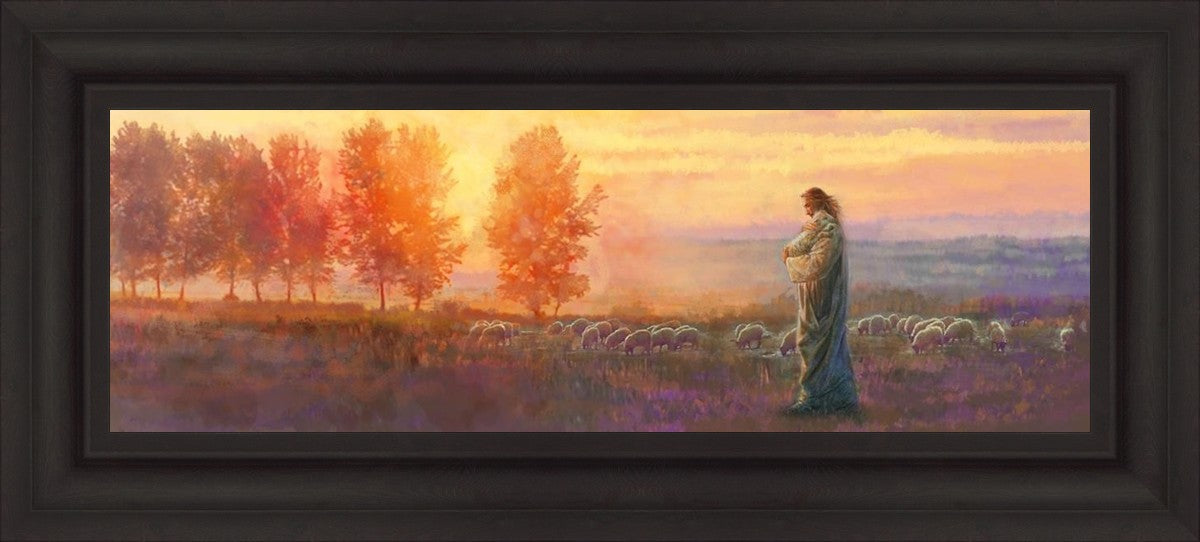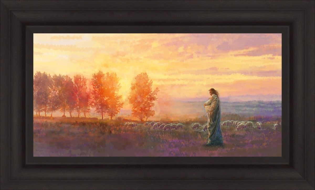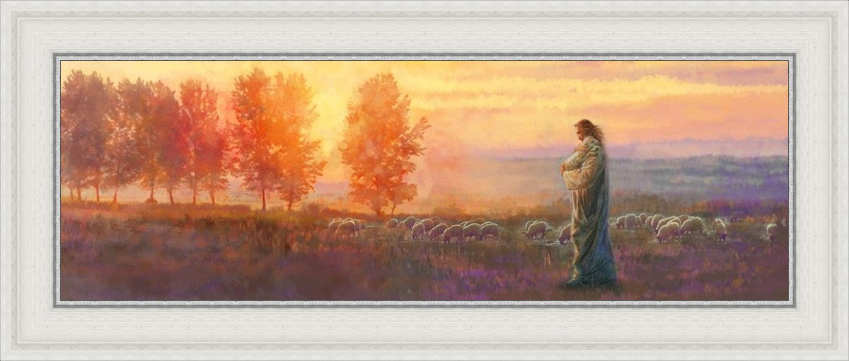 Eventide is a painting by Yongsung Kim. This painting depicts Jesus Christ watching over His flock.