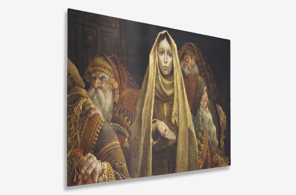 This Widow’s Mite Infinity Edition is the same size as Christensen’s original painting and designed to be displayed either unframed or framed. A special hanging apparatus can be affixed to the rear of the panel for unframed “Infinity” display. Or, a distinctly contemporary frame suits the work as well. Both options are available for The Widow’s Mite.