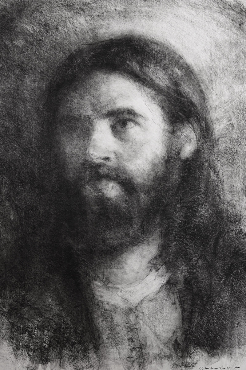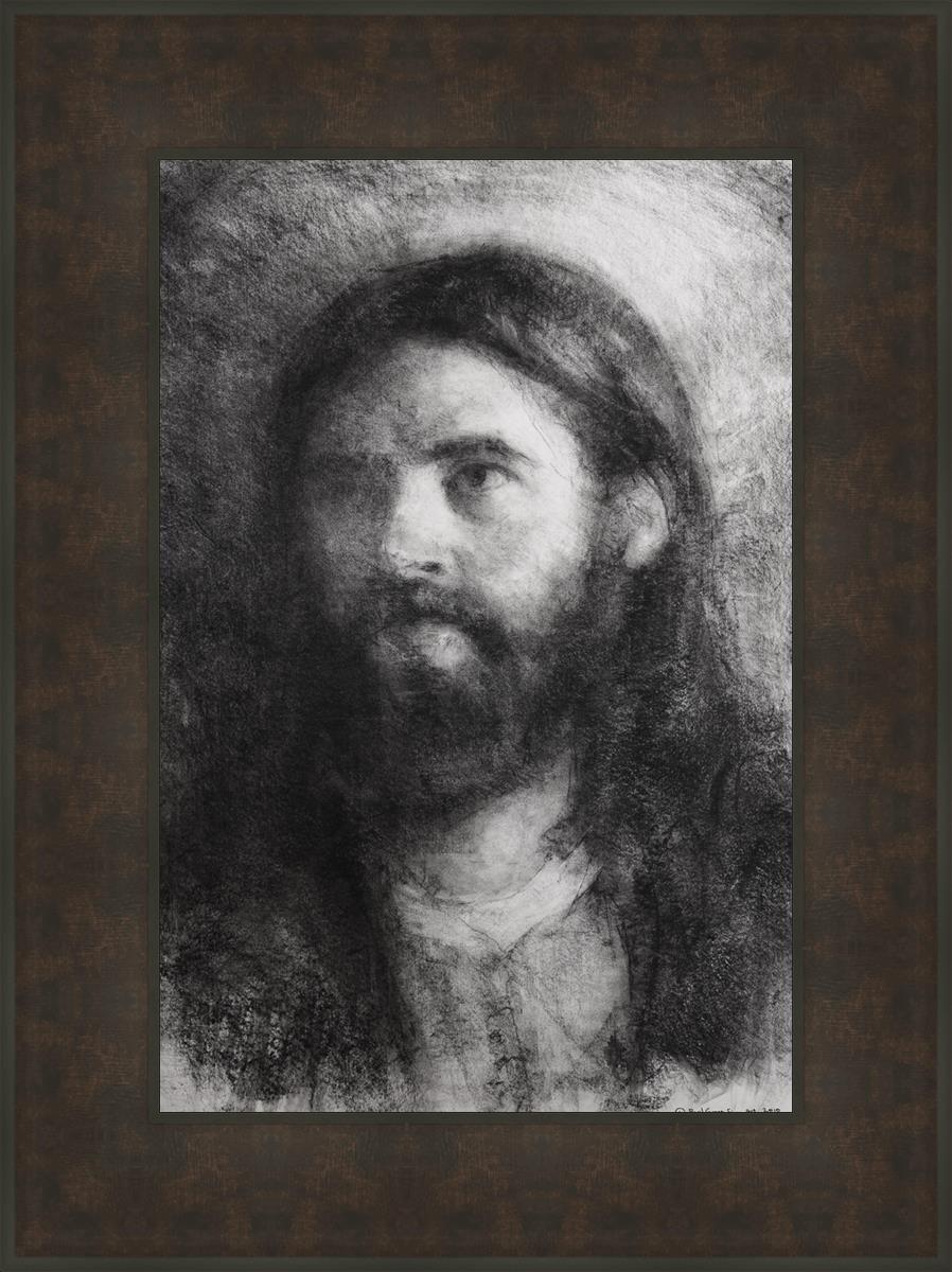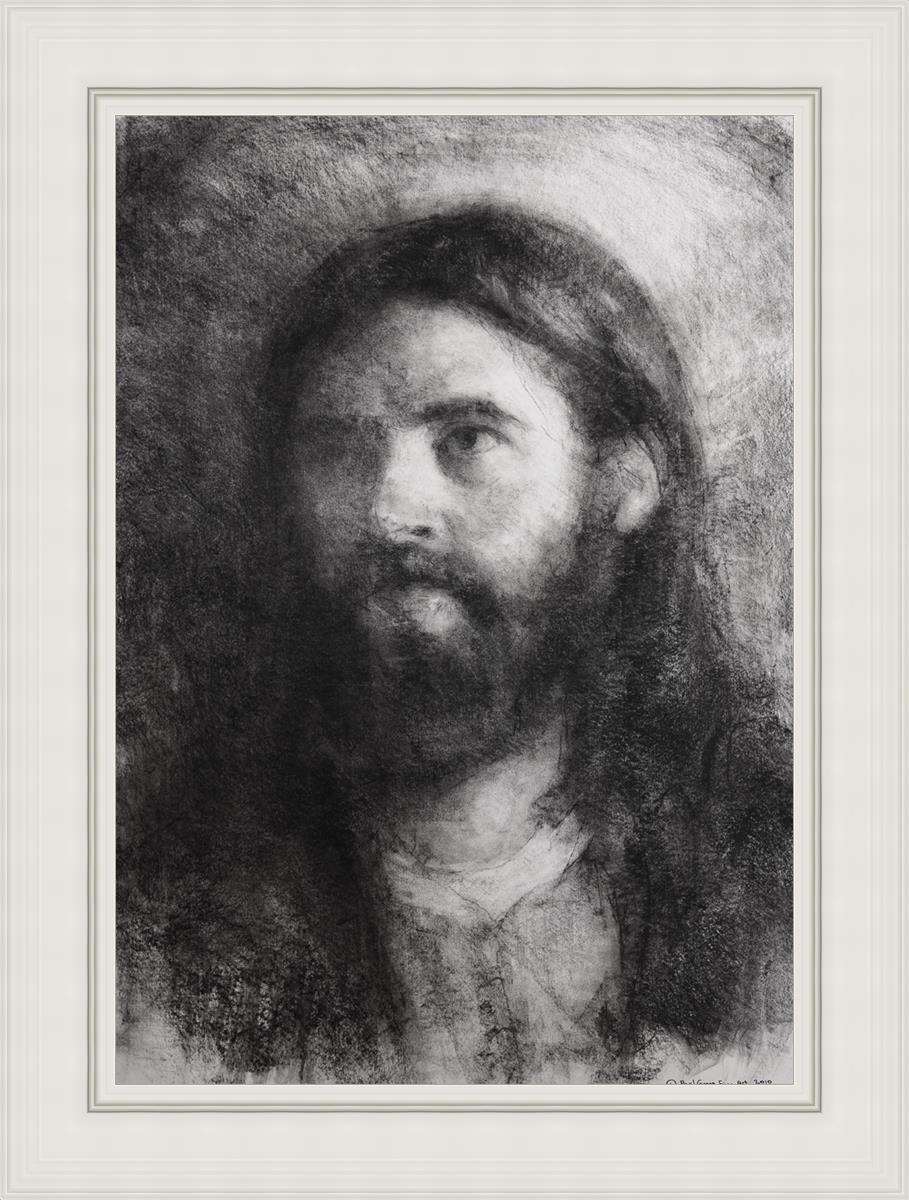 Isaiah 53: 2-3 teaches us that the Savior has no worldly beauty that we would desire him. That he is a Man of Sorrows “acquainted with grief." The blending of these two elements were very important while I was rendering this charcoal image.