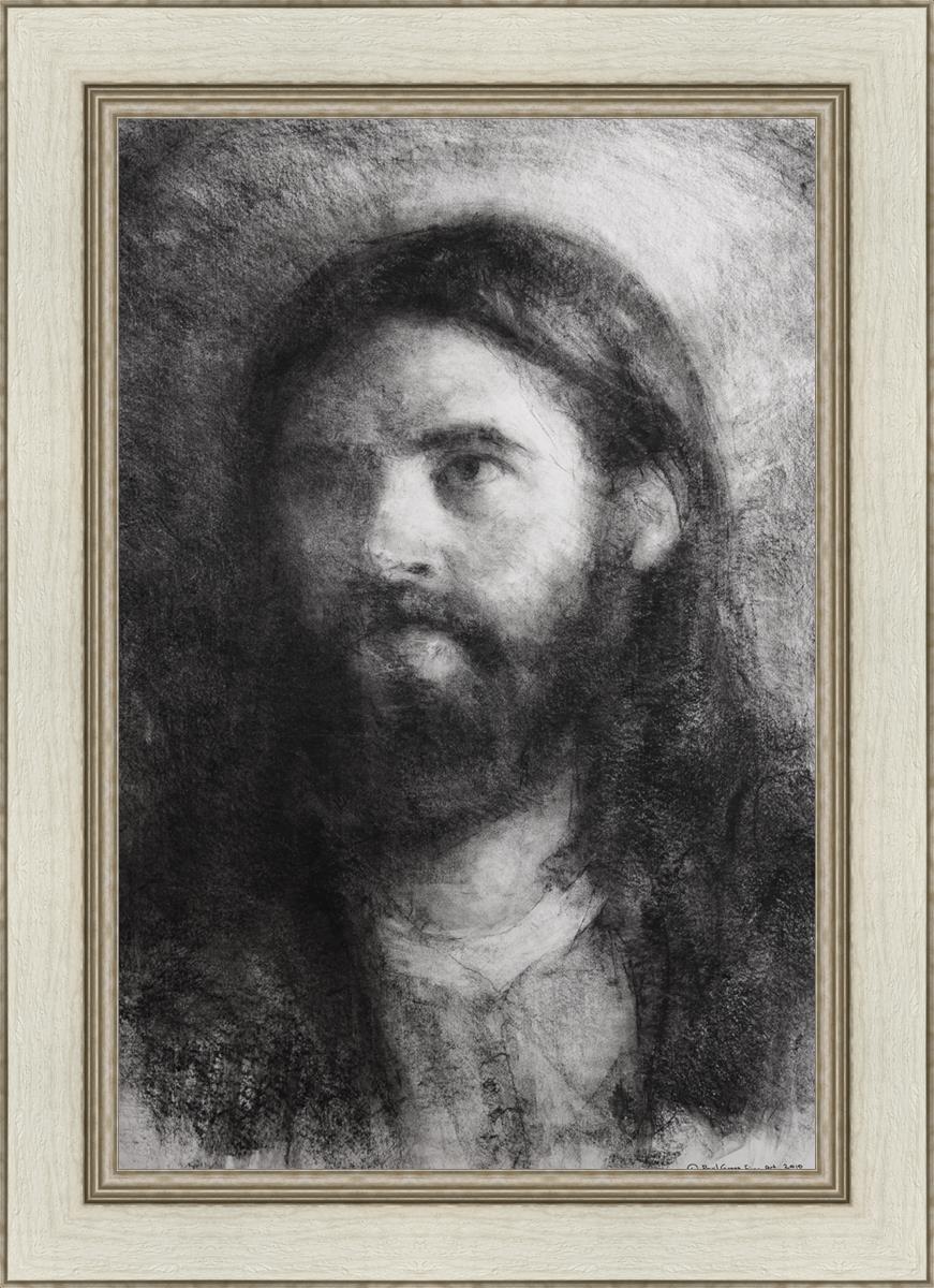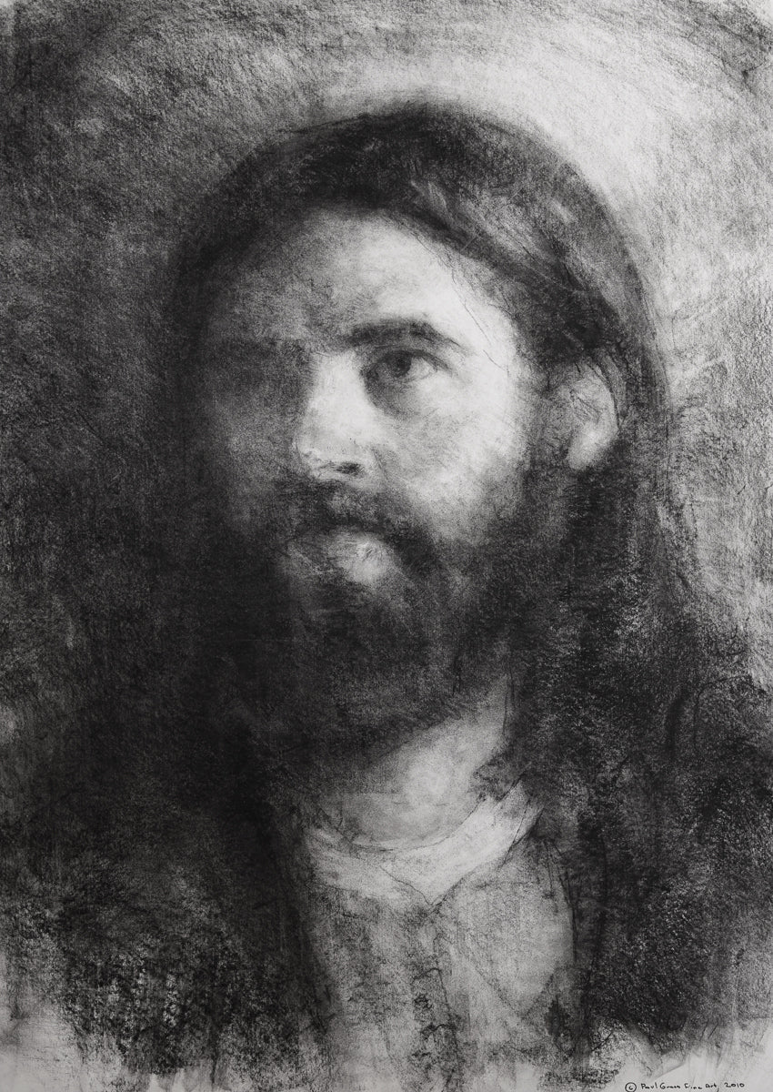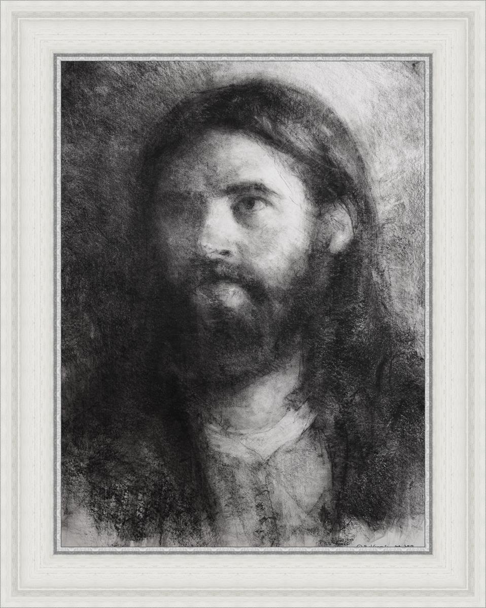 Isaiah 53: 2-3 teaches us that the Savior has no worldly beauty that we would desire him. That he is a Man of Sorrows “acquainted with grief." The blending of these two elements were very important while I was rendering this charcoal image.