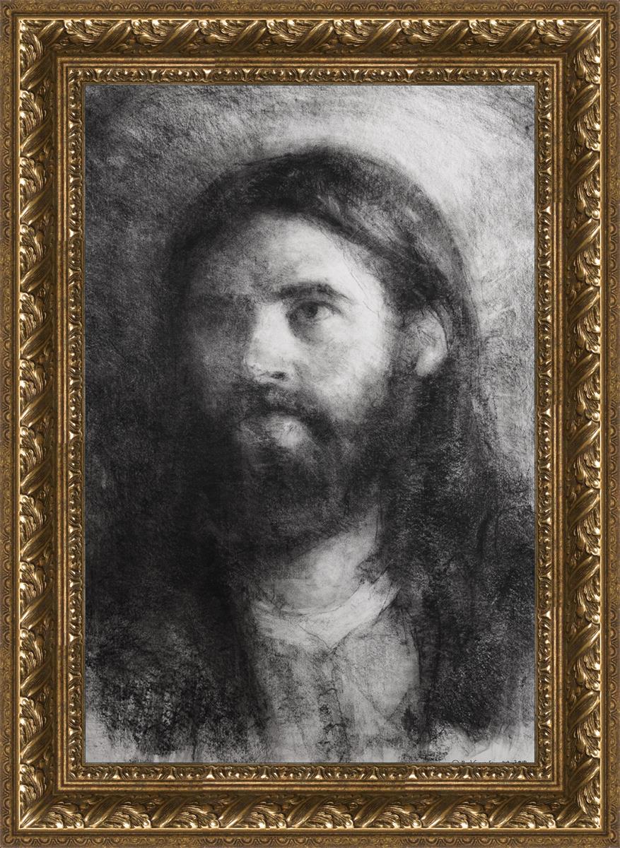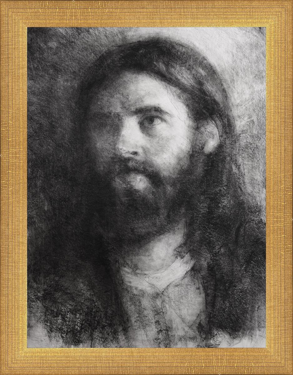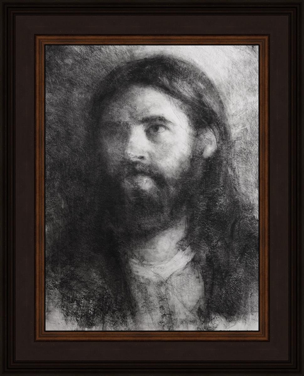 I meddled this with an eye that wasn't completely finished and other features to allow the viewer to complete the drawing in their mind's eye. Using this approach, the viewer is able to behold parts of his face and features that we may look over, features that might be less apparent than when He's performing a mighty act or offering a monumental sermon.