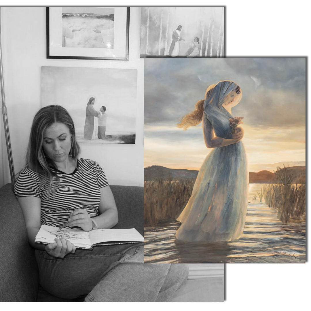 Emily describes this painting as capturing “the tender strength and boundless hope embodied by the divine feminine—our Heavenly Mother.” Through the interplay of light and water, she invites us to see that hope is not passive, but alive—gentle yet unstoppable, sustaining us when we feel most fragile.