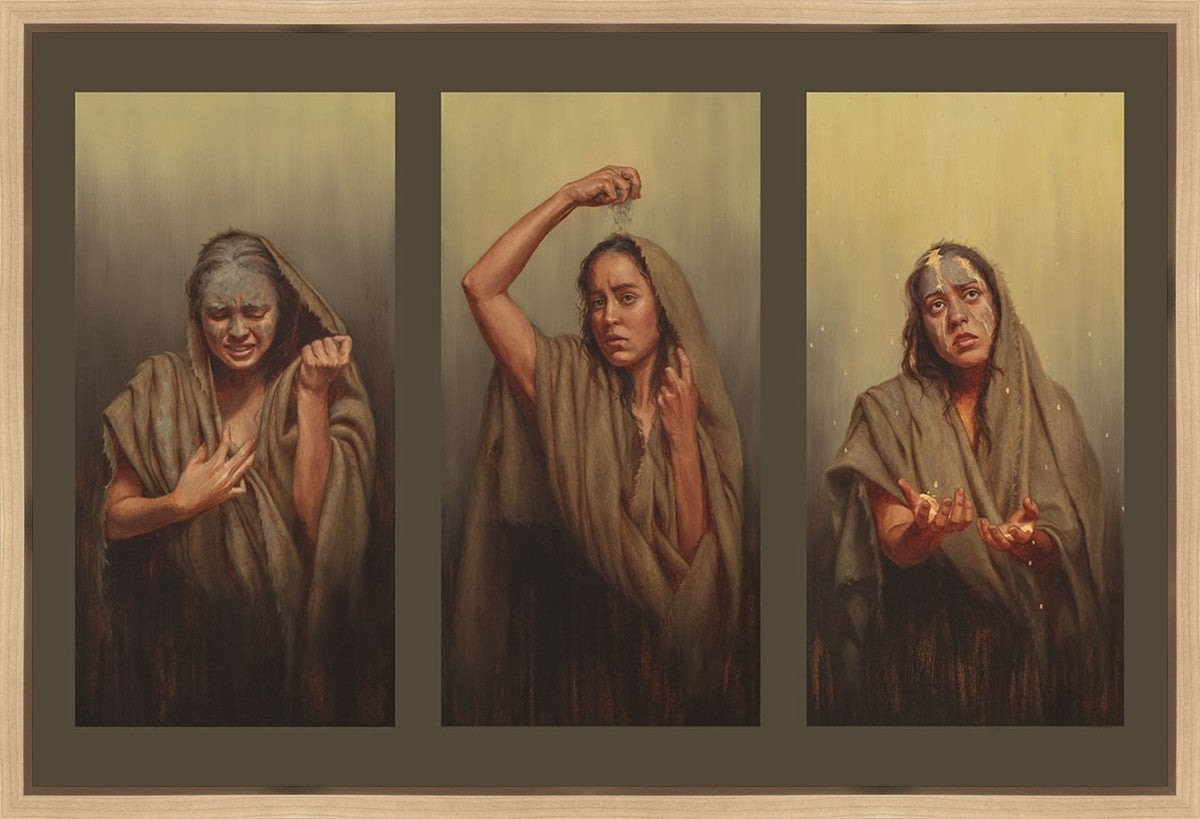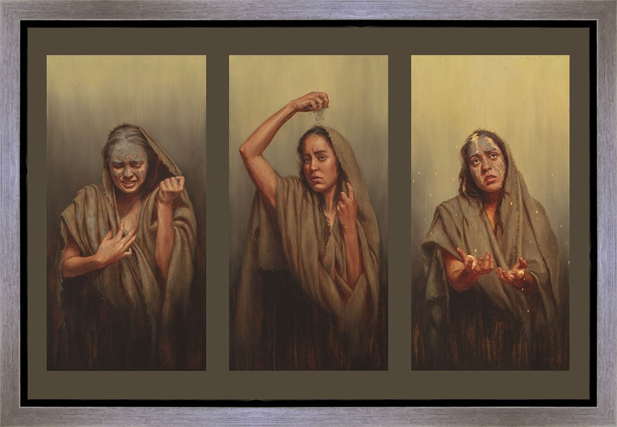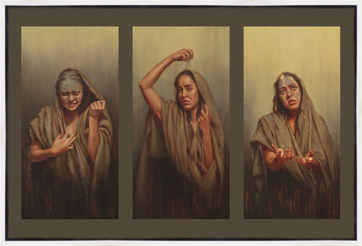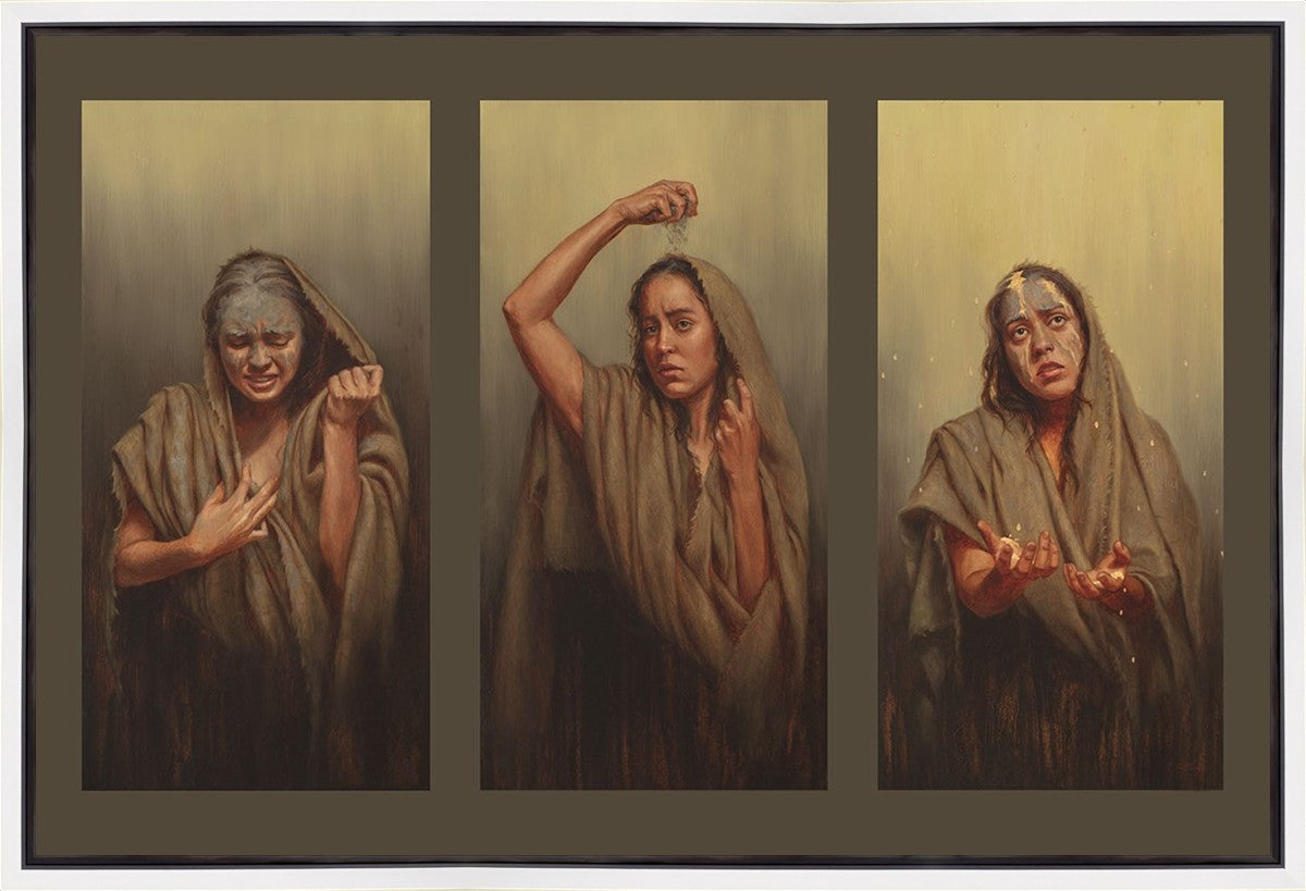 Esther Hi’ilani Candari is primarily a figurative artist who explores concepts such as multiracial identity, gender and the female gaze in the context of religion, and the connections between ecology, culture, and sense of place. Much of her work draws upon her experiences growing up in Hawai’i in an Asian American mixed-race household. She has a BFA from BYU-H, an MFA from Liberty University, and has studied at the New York Academy of Art. In addition to her studio work, she owns and directs The Compass Gallery, serves as the art editor for Wayfare magazine, and serves on the Advisory Board for The Faith Matters Foundation. She lives in Utah County with her husband, two rescue dogs, and an ever-growing collection of houseplants.