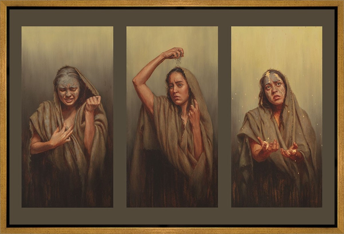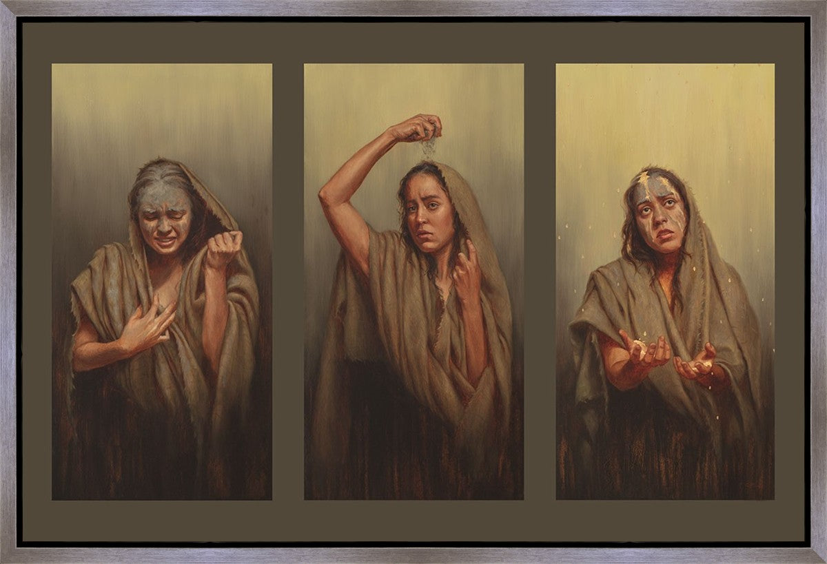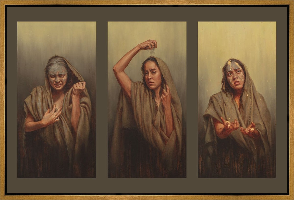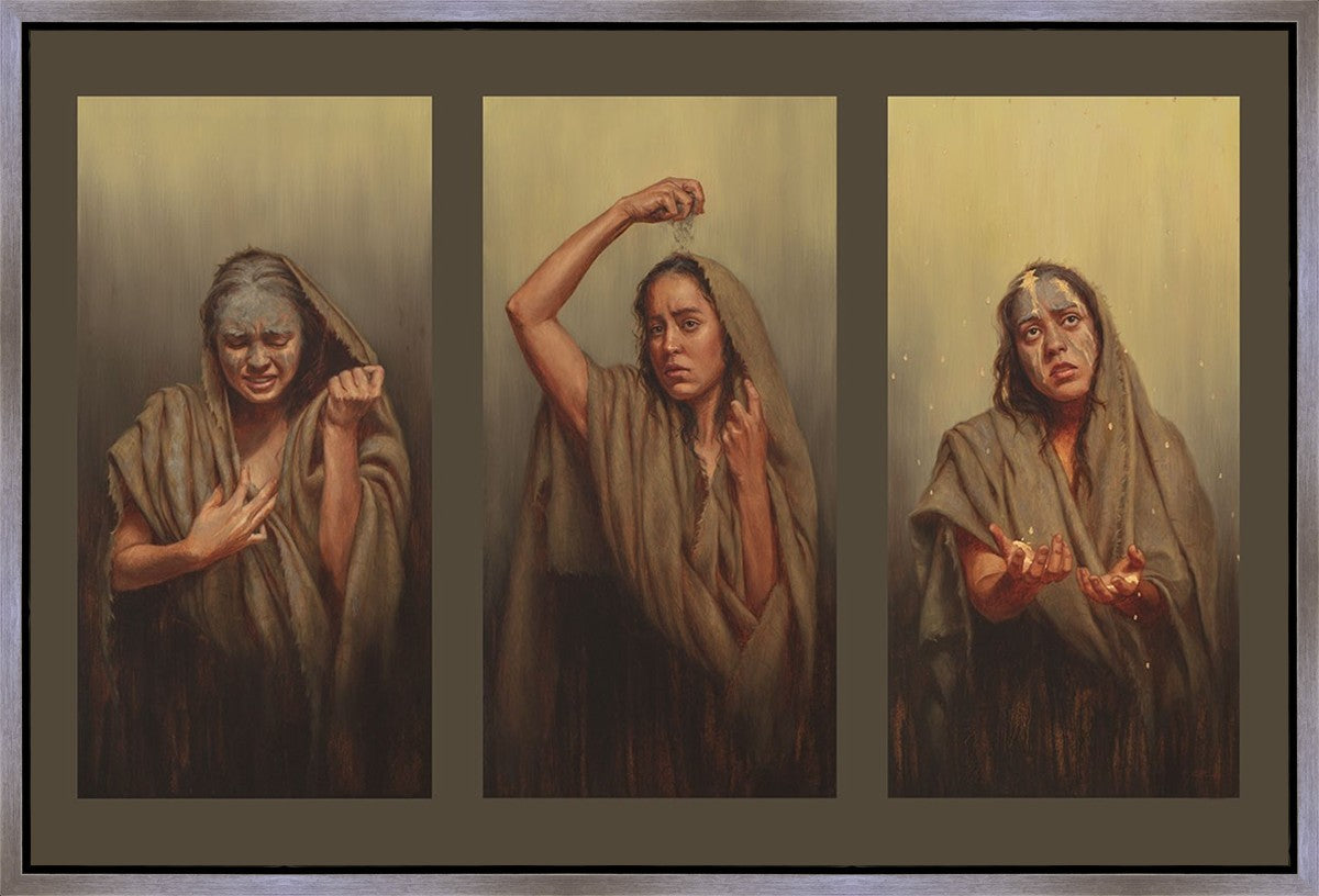 Esther Hi’ilani Candari is primarily a figurative artist who explores concepts such as multiracial identity, gender and the female gaze in the context of religion, and the connections between ecology, culture, and sense of place. Much of her work draws upon her experiences growing up in Hawai’i in an Asian American mixed-race household. She has a BFA from BYU-H, an MFA from Liberty University, and has studied at the New York Academy of Art. In addition to her studio work, she owns and directs The Compass Gallery, serves as the art editor for Wayfare magazine, and serves on the Advisory Board for The Faith Matters Foundation. She lives in Utah County with her husband, two rescue dogs, and an ever-growing collection of houseplants.