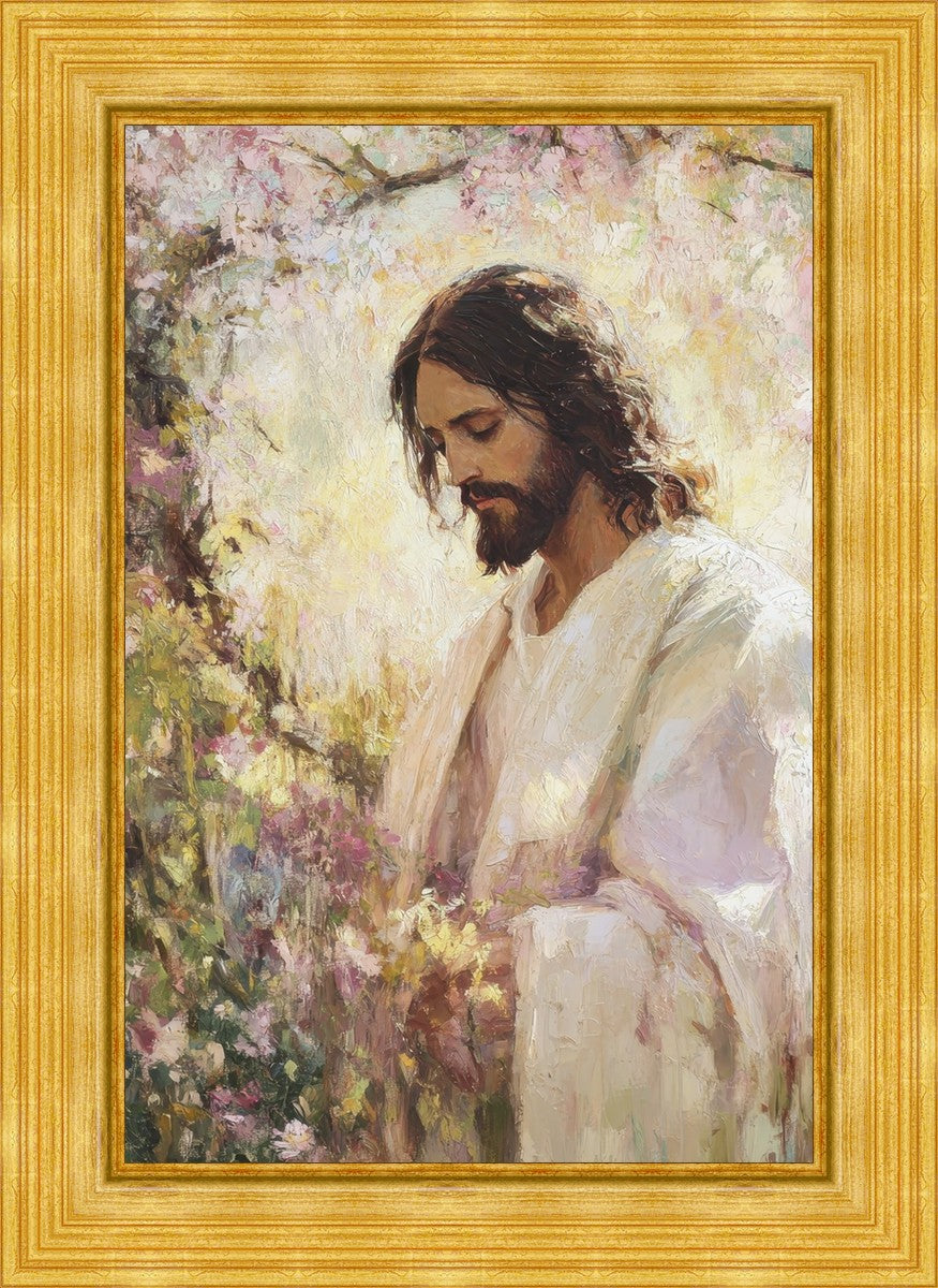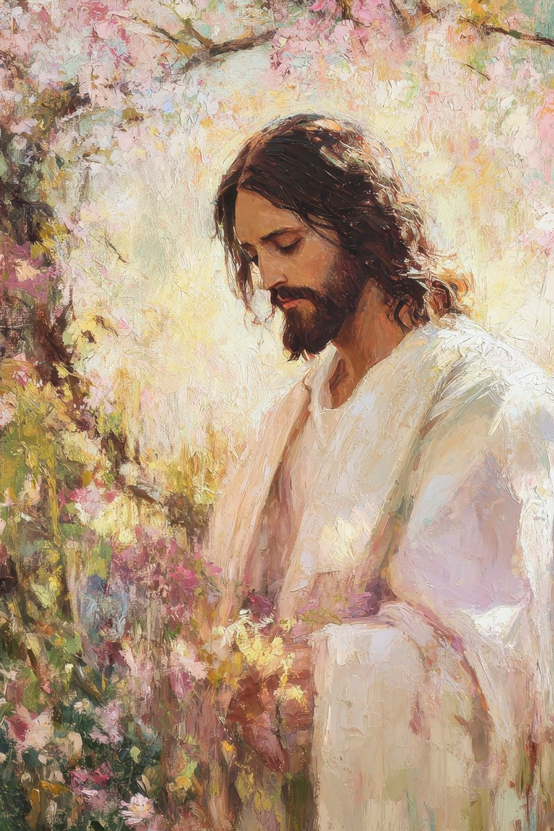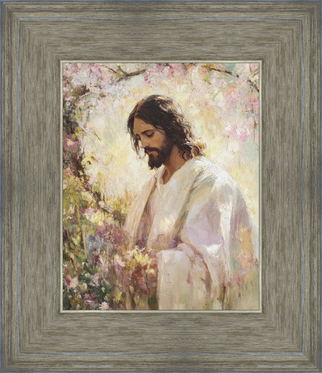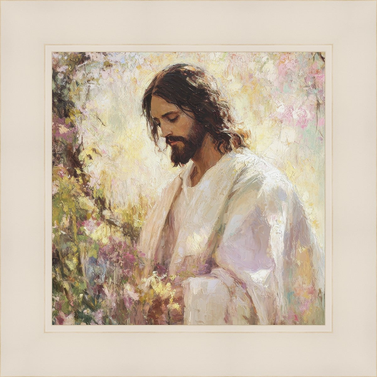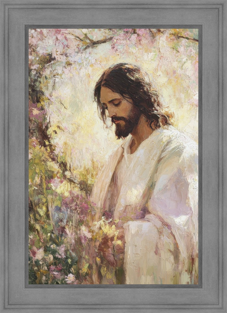 We wanted to capture the simple yet profound truth that we are all divinely created with love and purpose. Jesus stands among delicate flower blossoms, a reminder that just as God carefully forms each petal. He has created each of us with the same beauty and intention. This piece is a quiet nod to His infinite care—not just for the world around us, but for every soul.