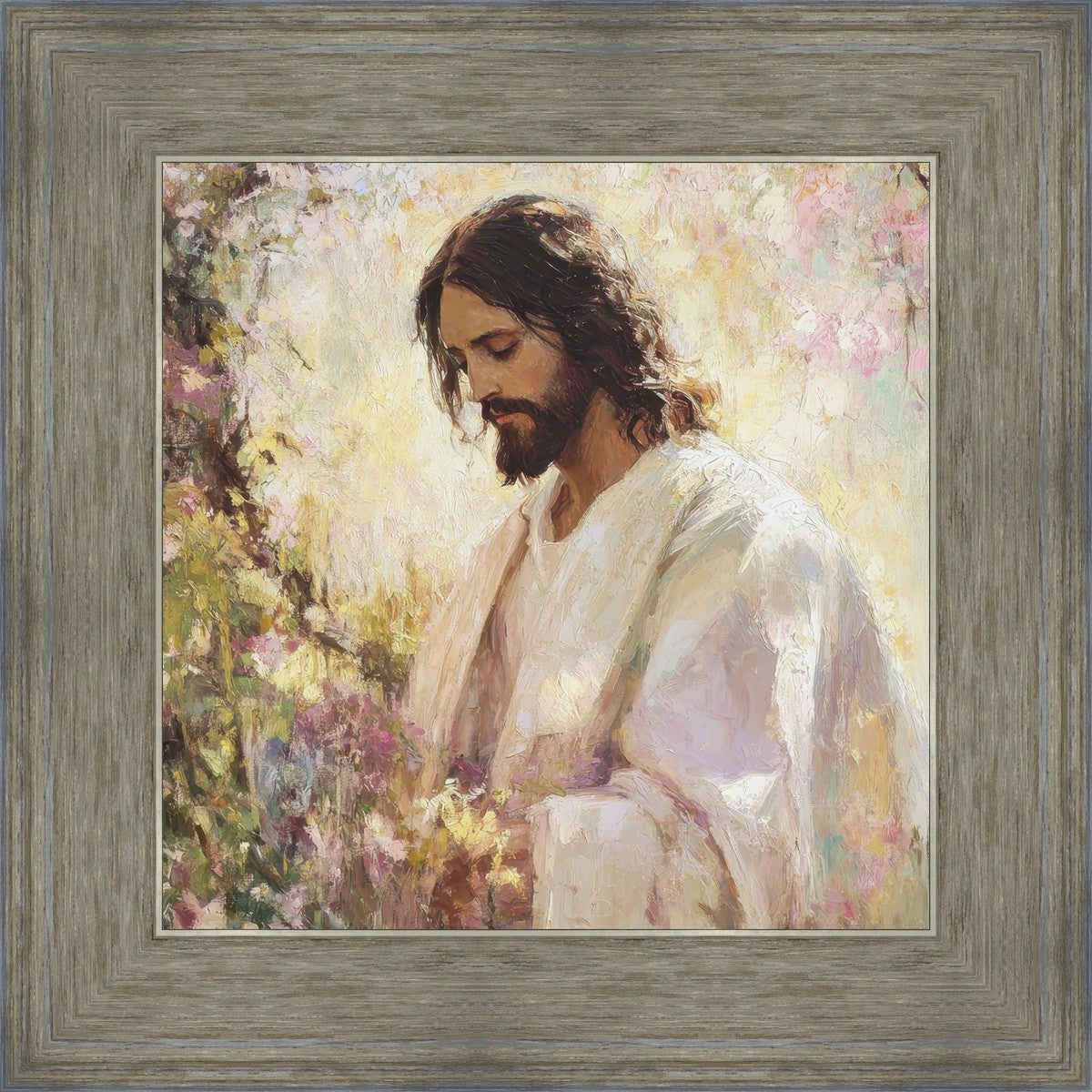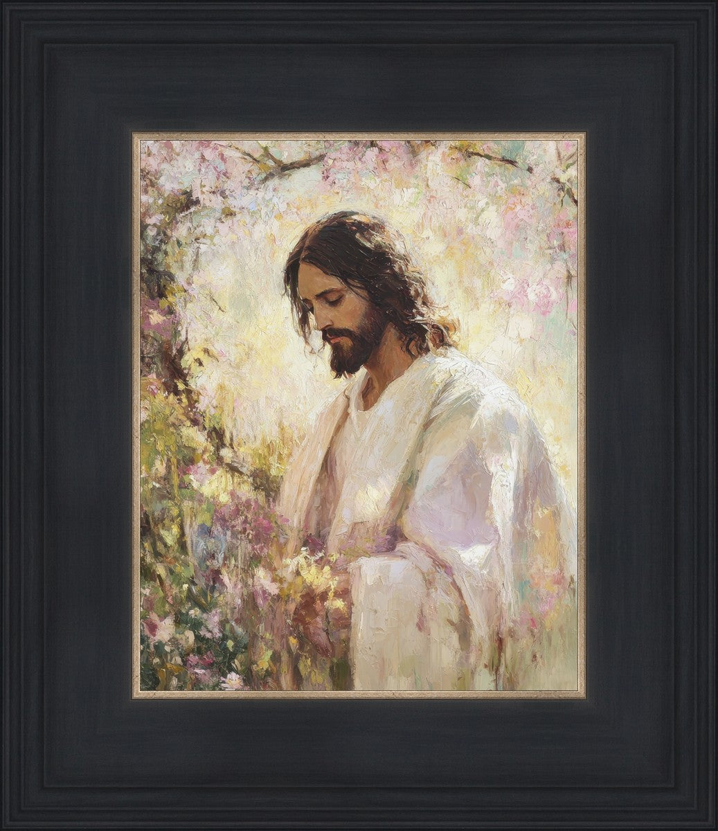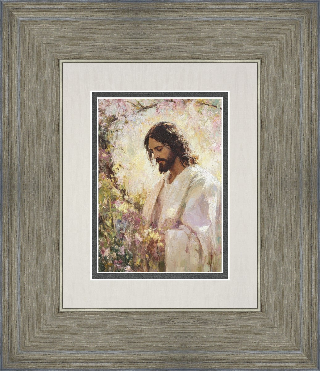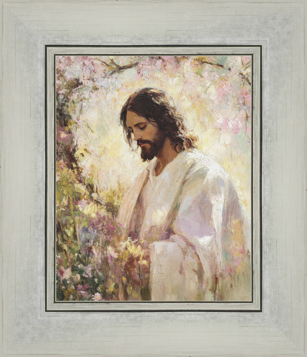 We wanted to capture the simple yet profound truth that we are all divinely created with love and purpose. Jesus stands among delicate flower blossoms, a reminder that just as God carefully forms each petal. He has created each of us with the same beauty and intention. This piece is a quiet nod to His infinite care—not just for the world around us, but for every soul.