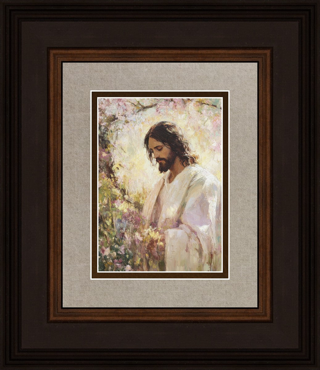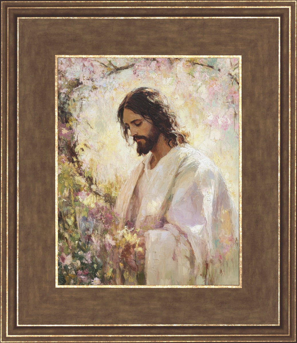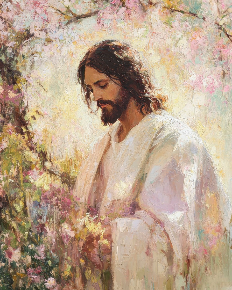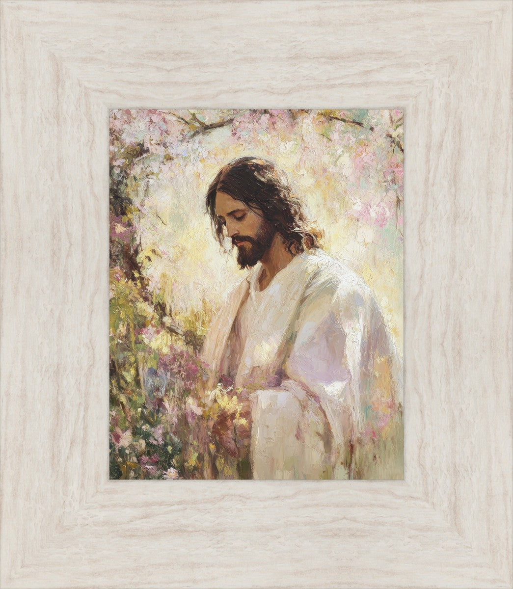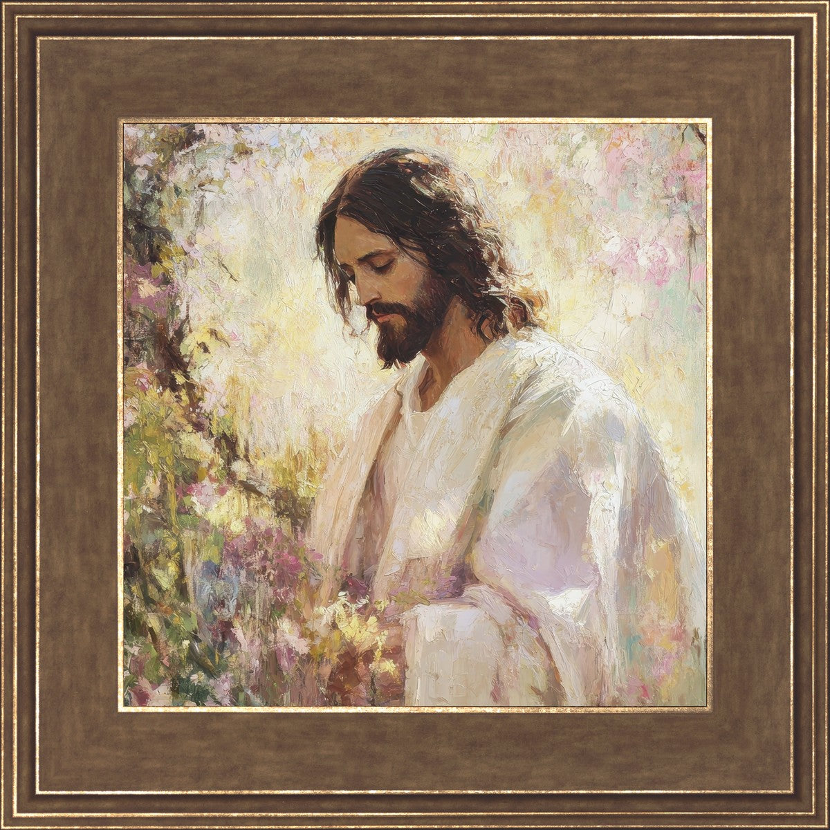 We wanted to capture the simple yet profound truth that we are all divinely created with love and purpose. Jesus stands among delicate flower blossoms, a reminder that just as God carefully forms each petal. He has created each of us with the same beauty and intention. This piece is a quiet nod to His infinite care—not just for the world around us, but for every soul.