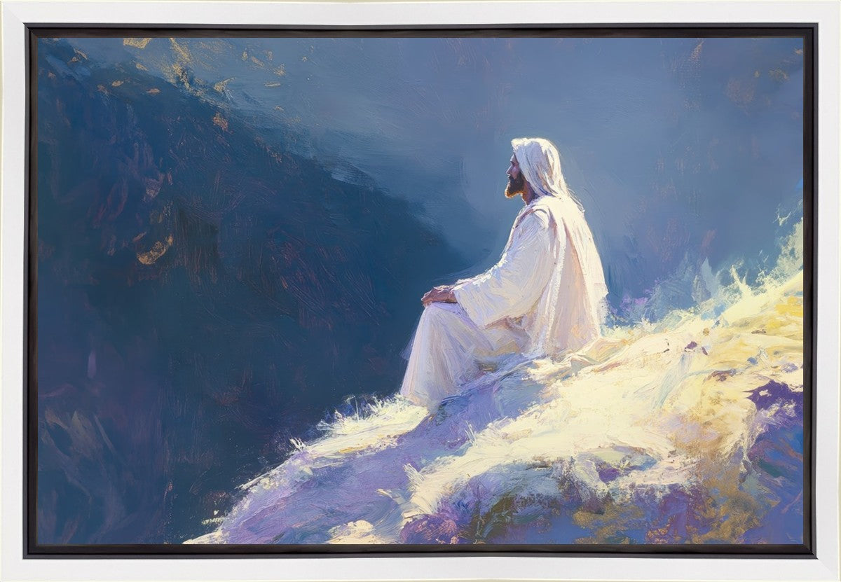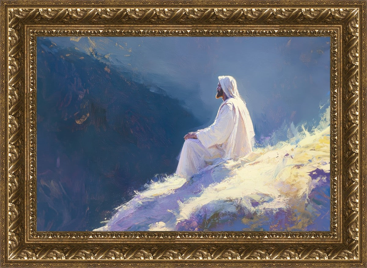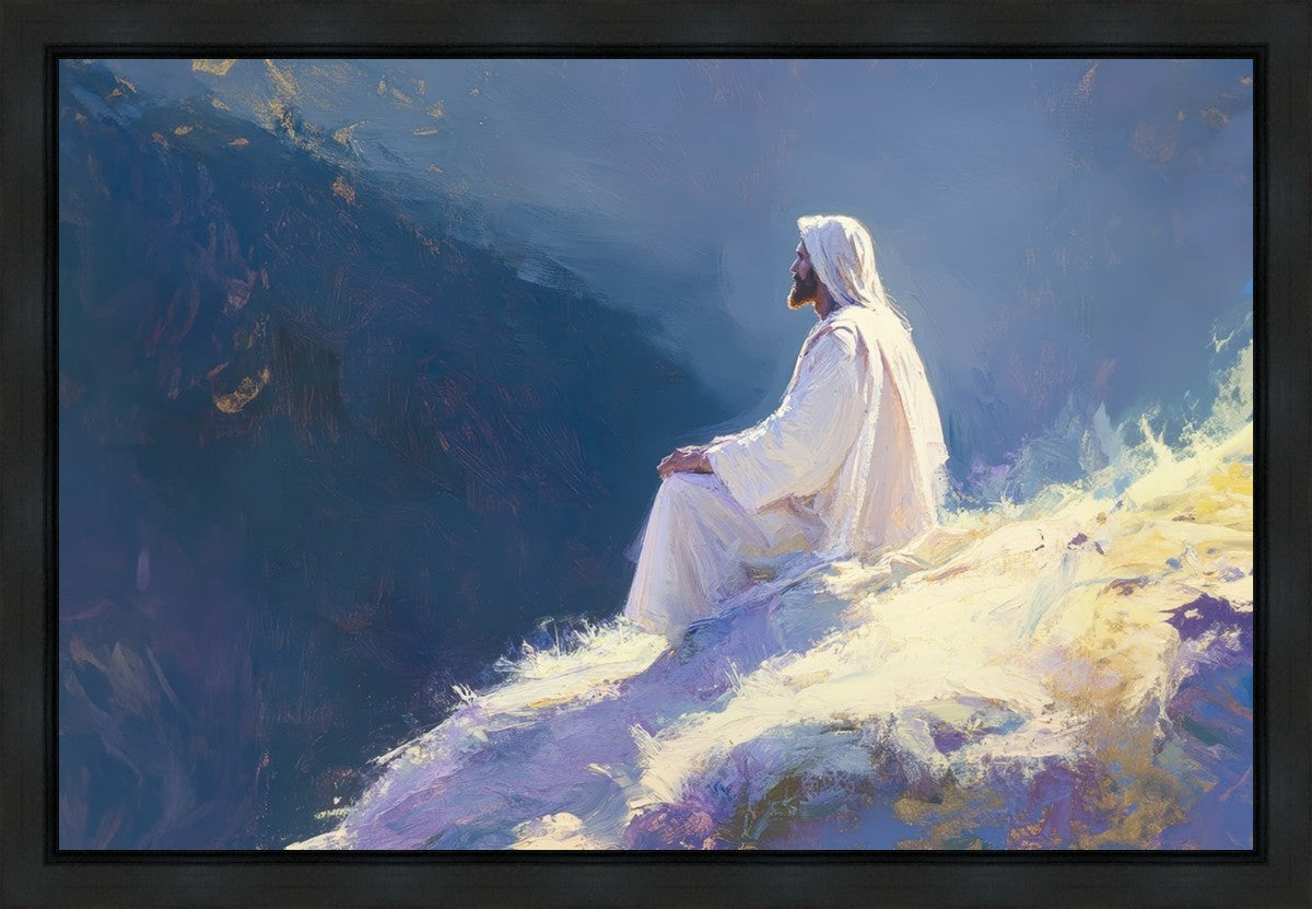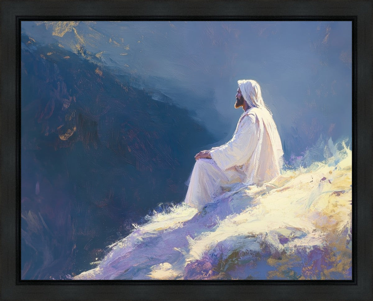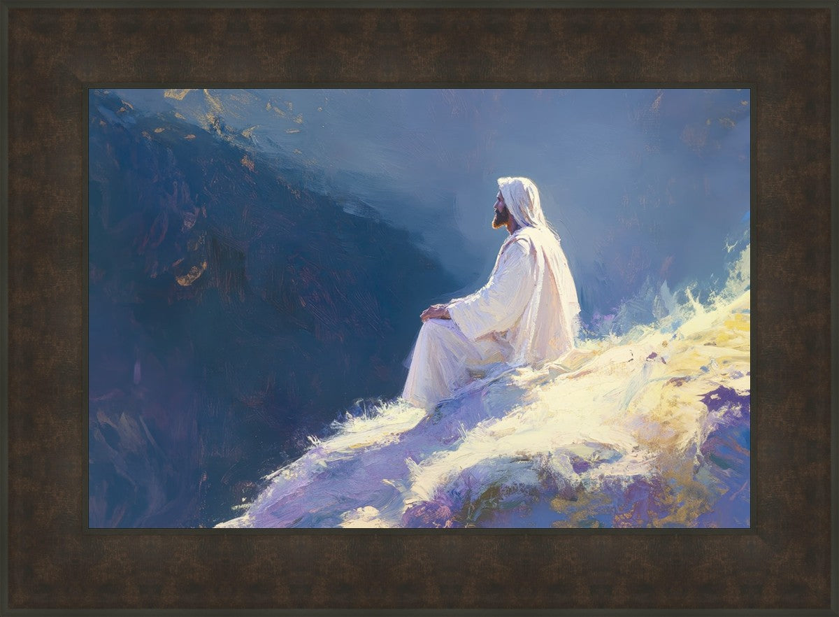 In "Contemplation," we sought to portray a moment of Jesus in quiet reflection, perched on a sunlit ridge. The vibrant colors and ethereal light reflect our desire to capture His peace and spiritual strength. Our simple message is one of hope and stillness, inviting viewers to find solace in His presence amidst life's vastness.