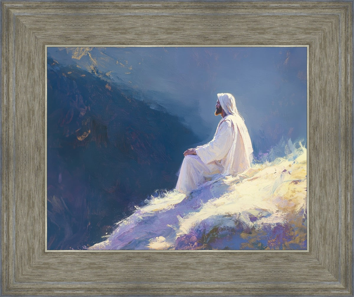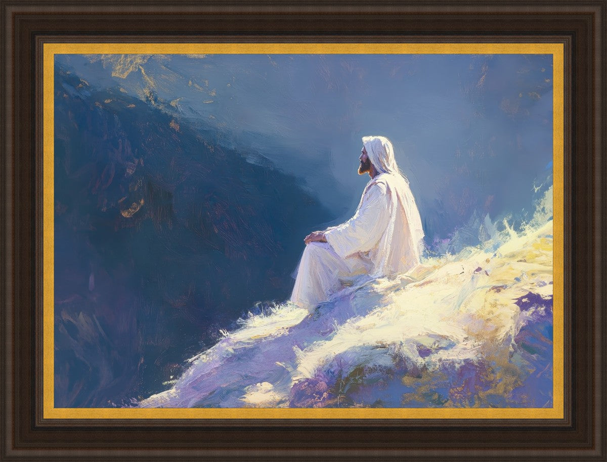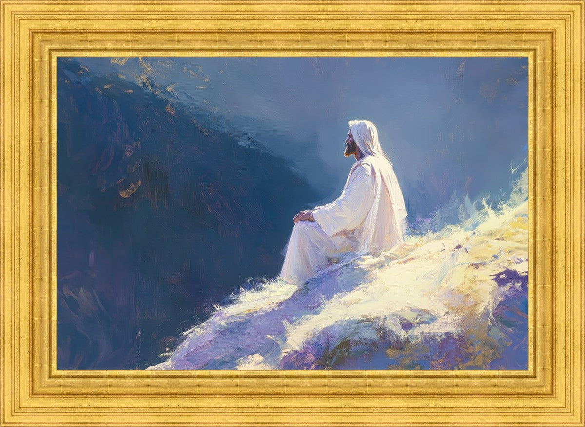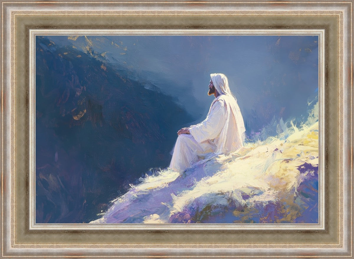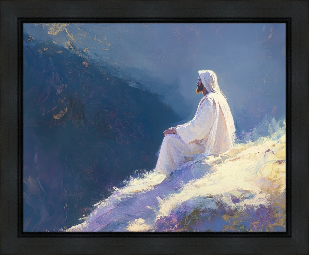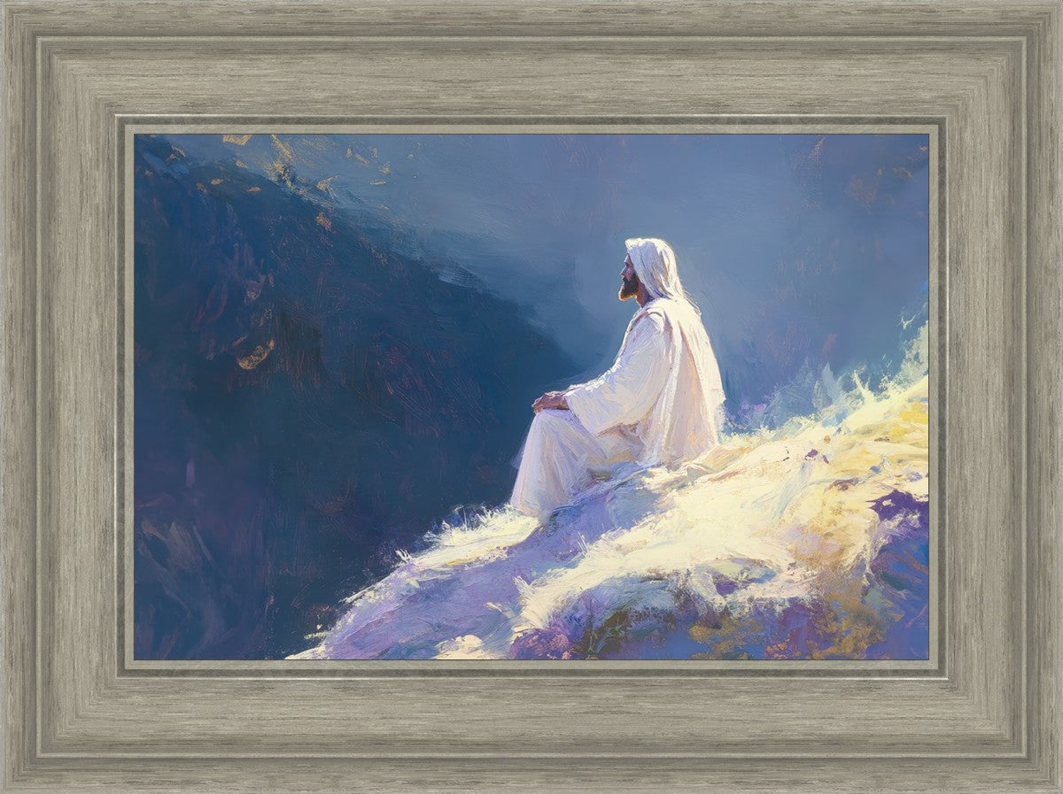 In "Contemplation," we sought to portray a moment of Jesus in quiet reflection, perched on a sunlit ridge. The vibrant colors and ethereal light reflect our desire to capture His peace and spiritual strength. Our simple message is one of hope and stillness, inviting viewers to find solace in His presence amidst life's vastness.