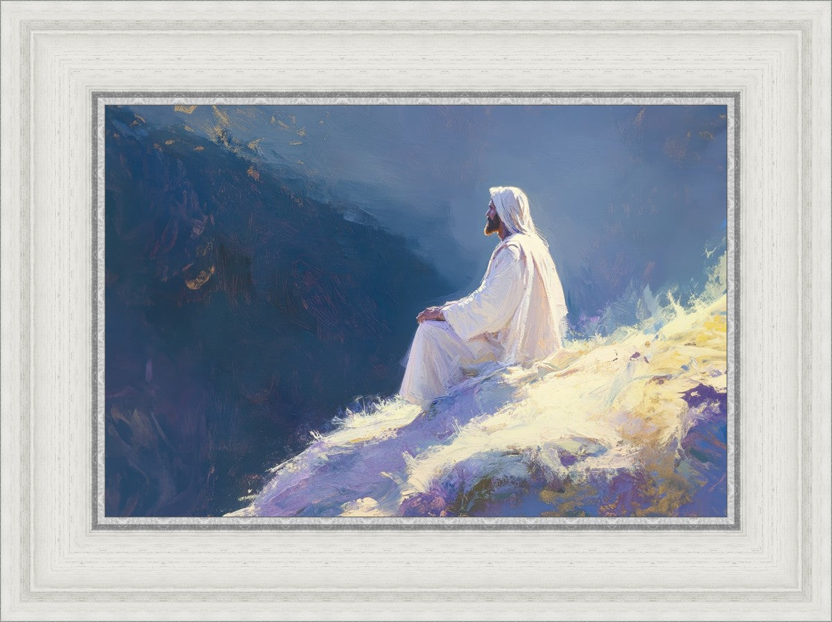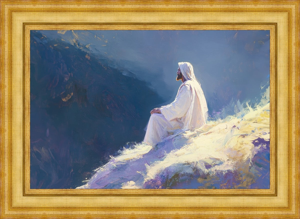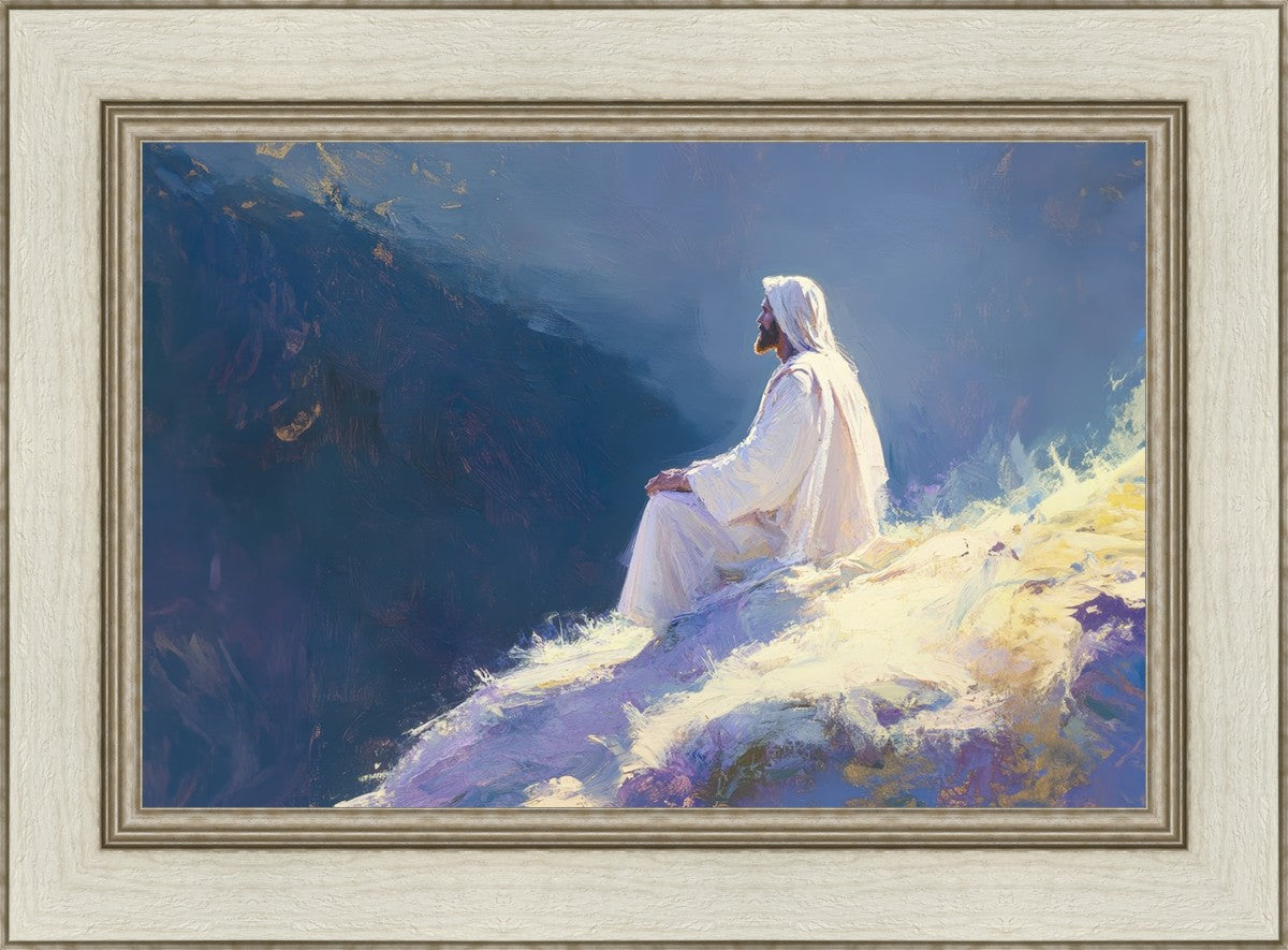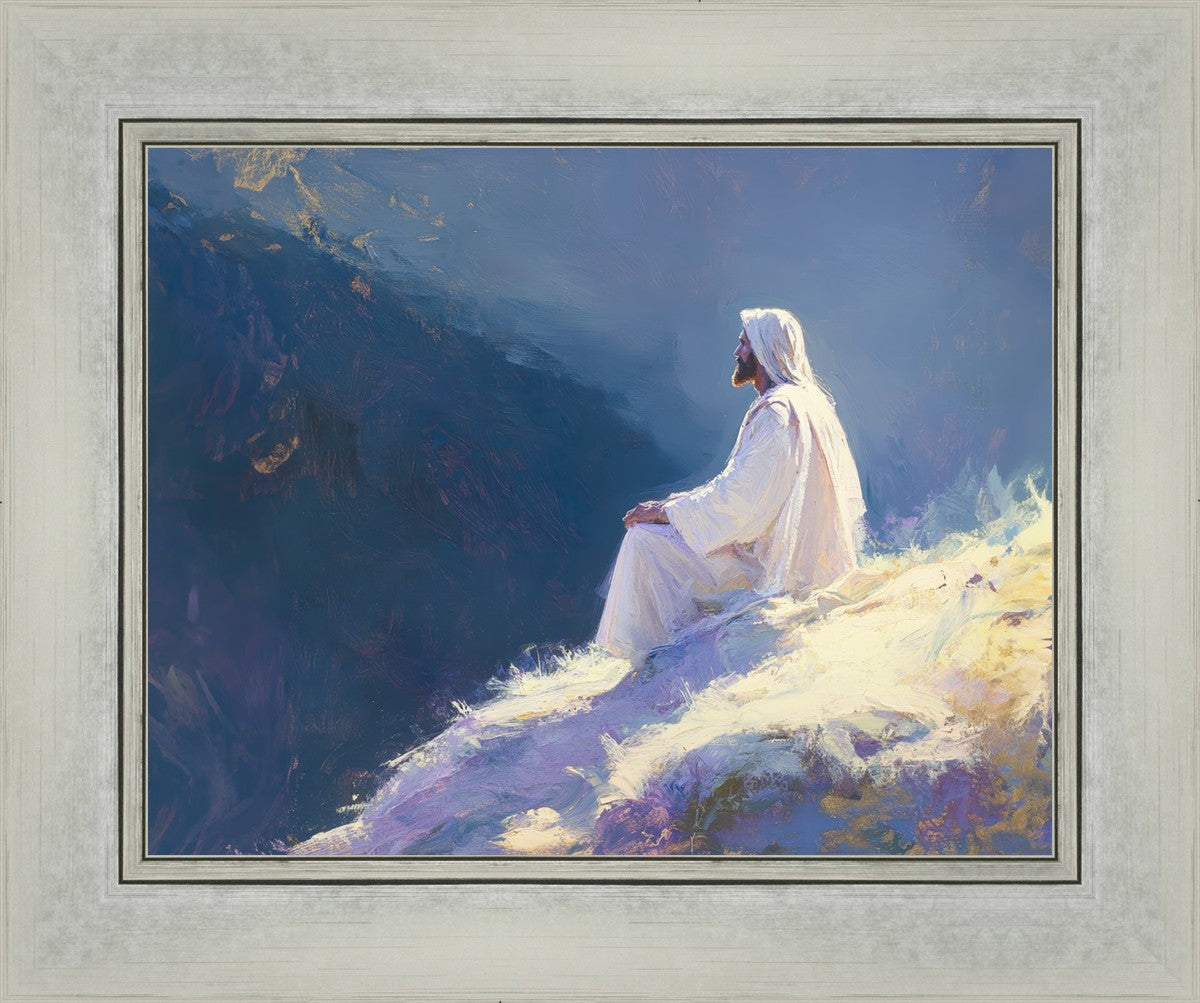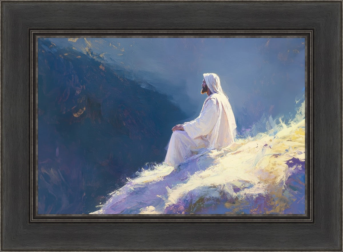 In "Contemplation," we sought to portray a moment of Jesus in quiet reflection, perched on a sunlit ridge. The vibrant colors and ethereal light reflect our desire to capture His peace and spiritual strength. Our simple message is one of hope and stillness, inviting viewers to find solace in His presence amidst life's vastness.