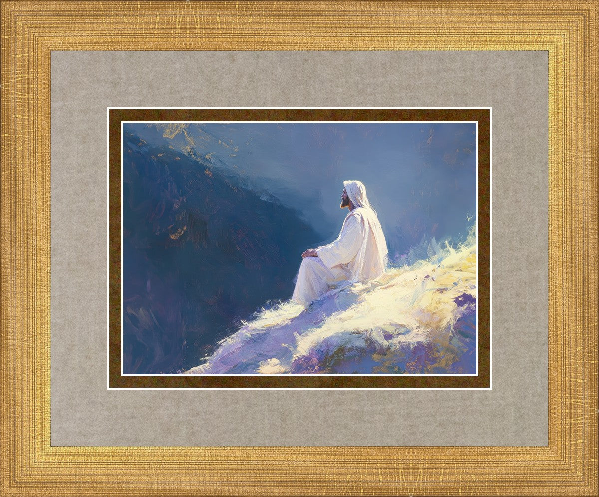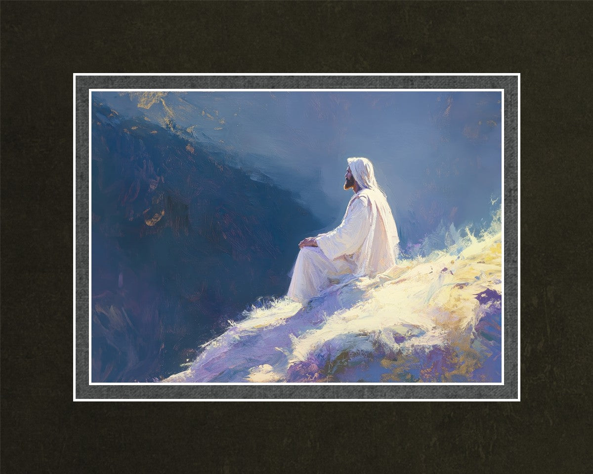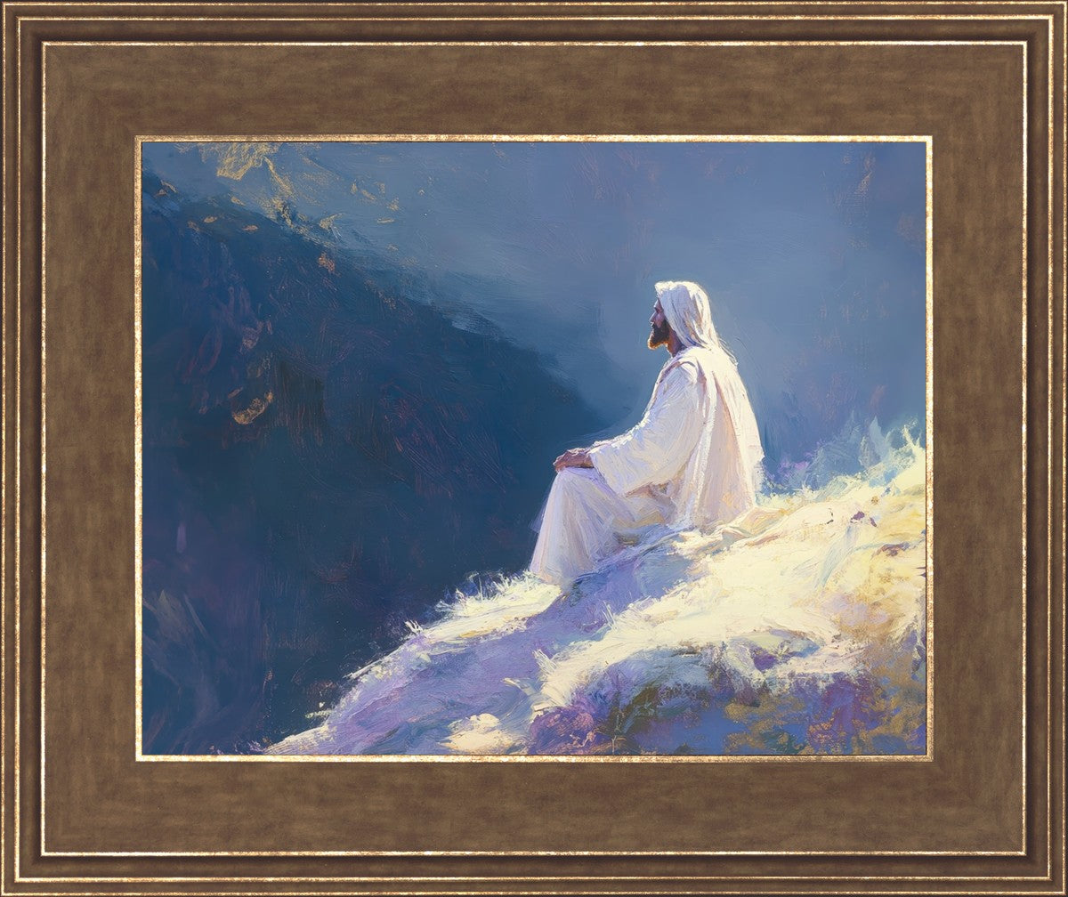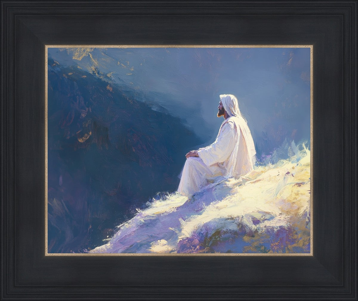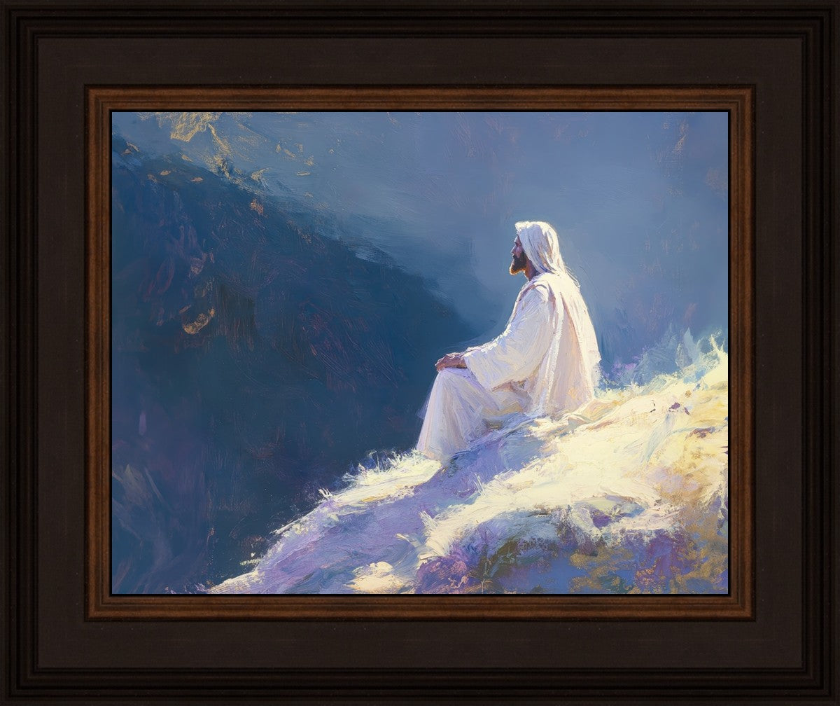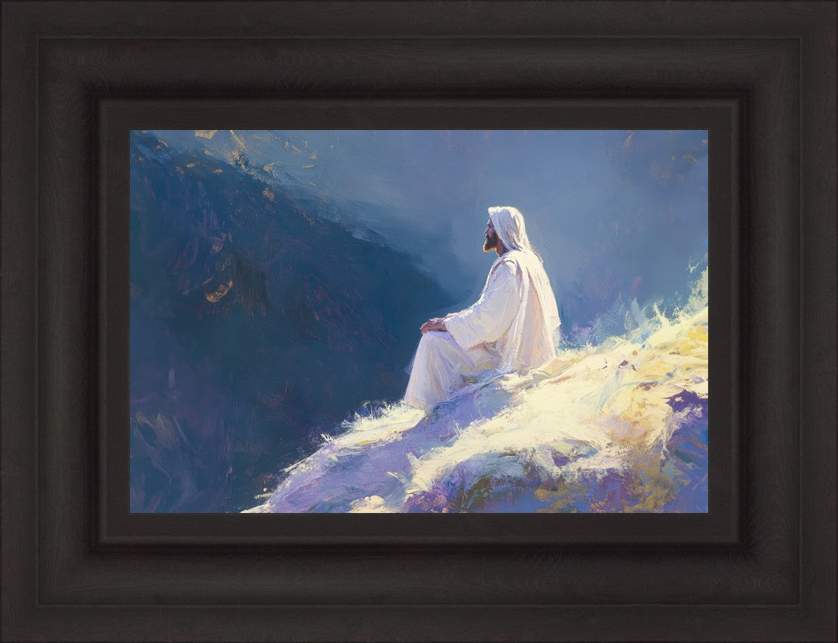 In "Contemplation," we sought to portray a moment of Jesus in quiet reflection, perched on a sunlit ridge. The vibrant colors and ethereal light reflect our desire to capture His peace and spiritual strength. Our simple message is one of hope and stillness, inviting viewers to find solace in His presence amidst life's vastness.