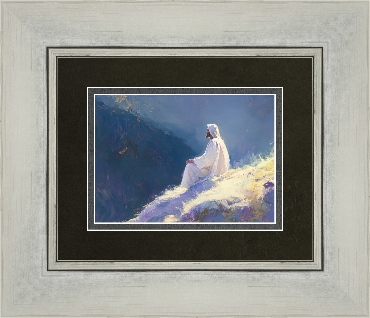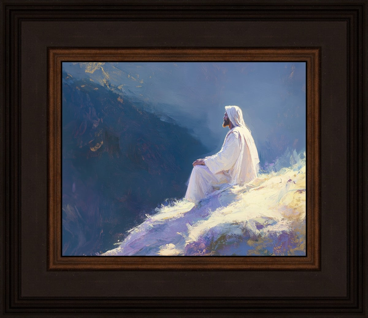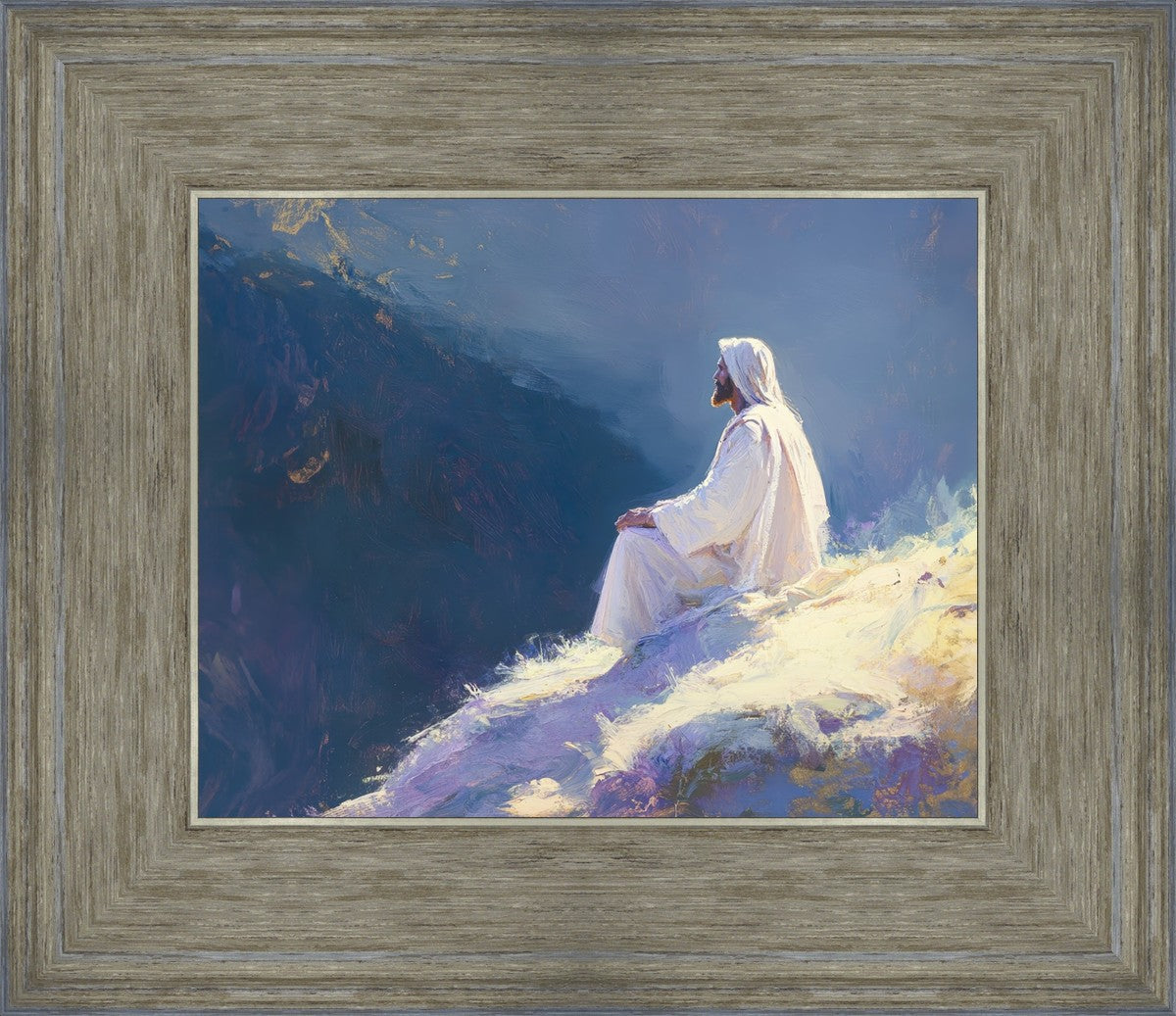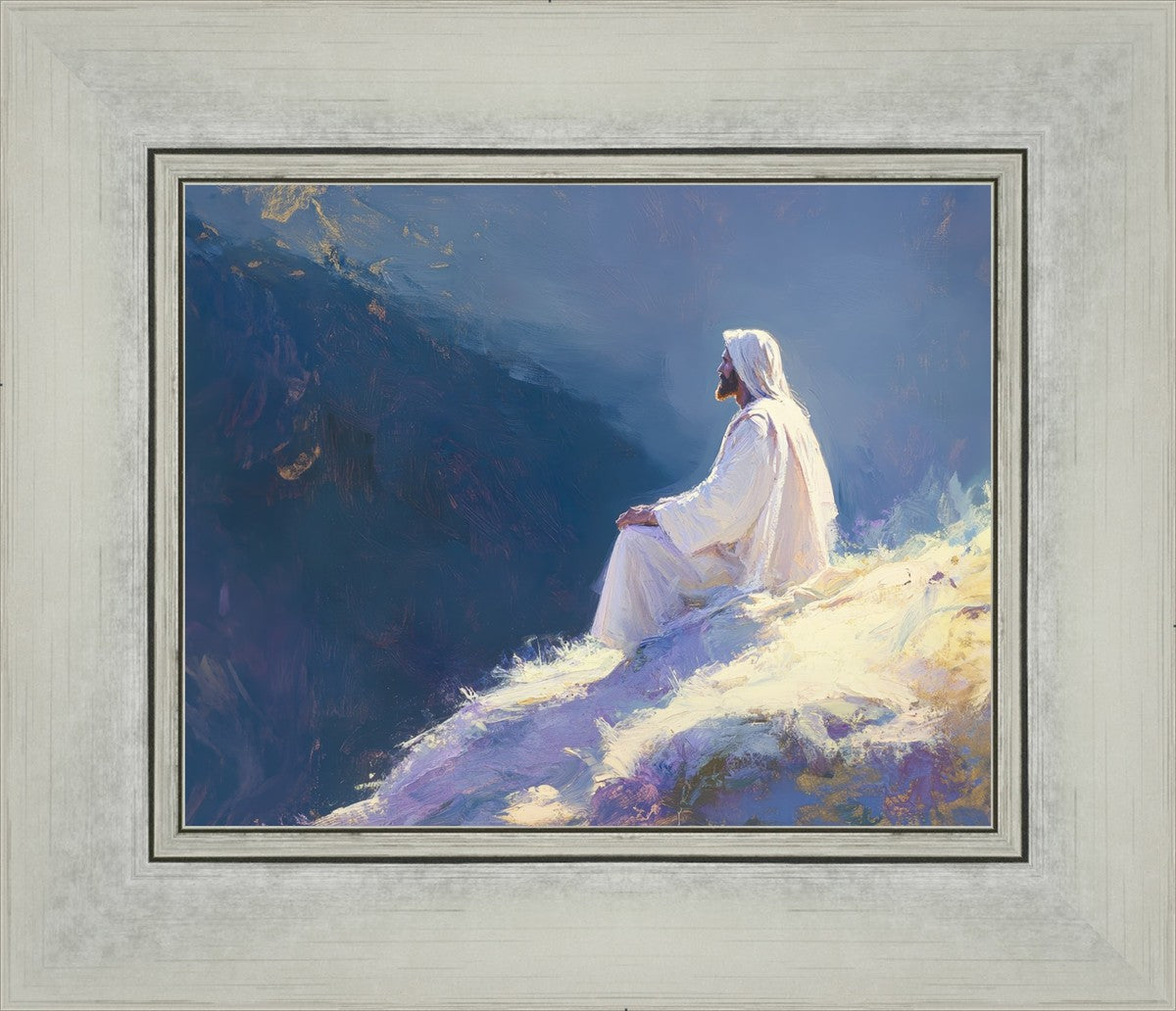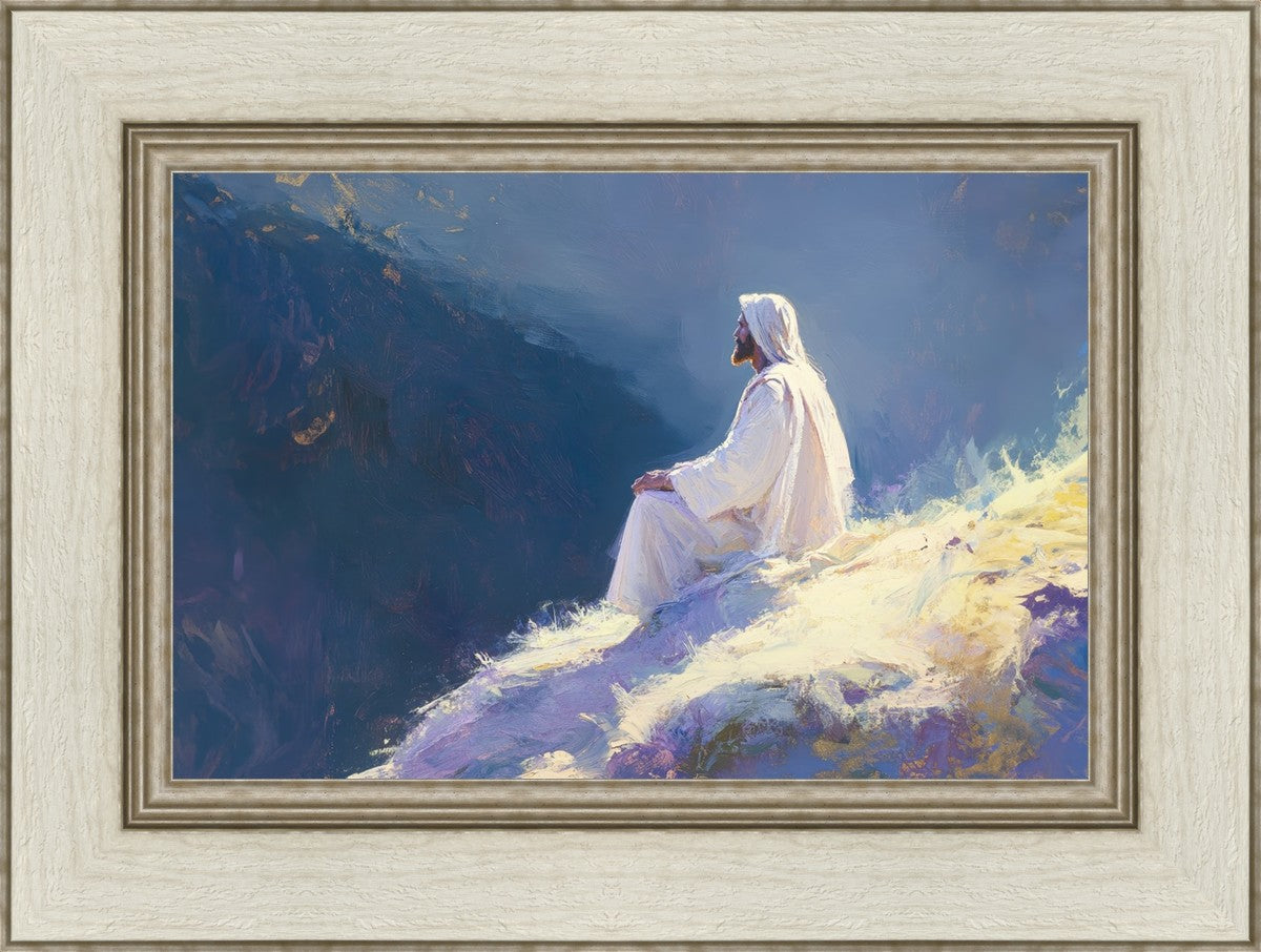 In "Contemplation," we sought to portray a moment of Jesus in quiet reflection, perched on a sunlit ridge. The vibrant colors and ethereal light reflect our desire to capture His peace and spiritual strength. Our simple message is one of hope and stillness, inviting viewers to find solace in His presence amidst life's vastness.