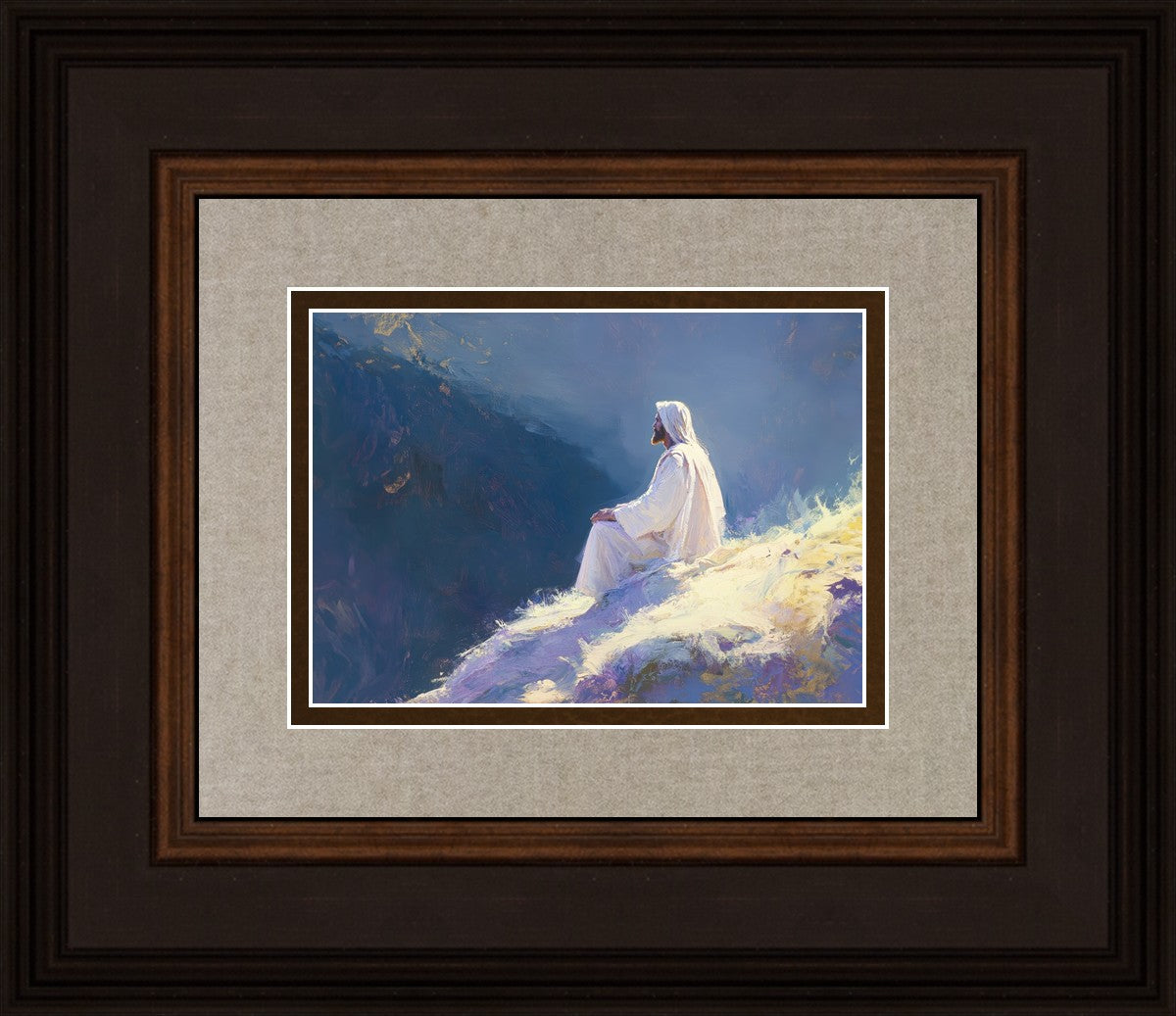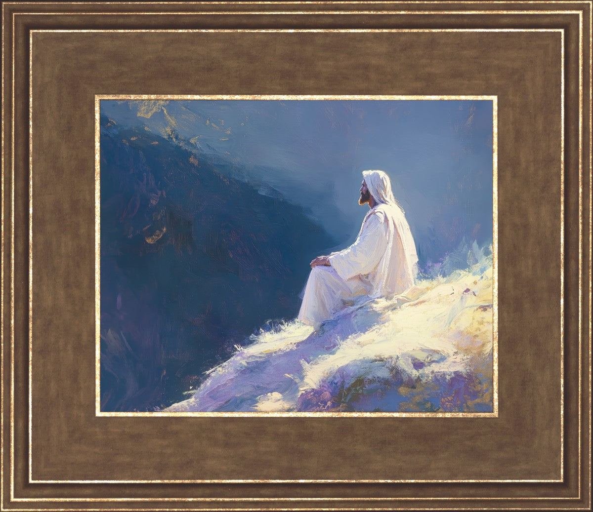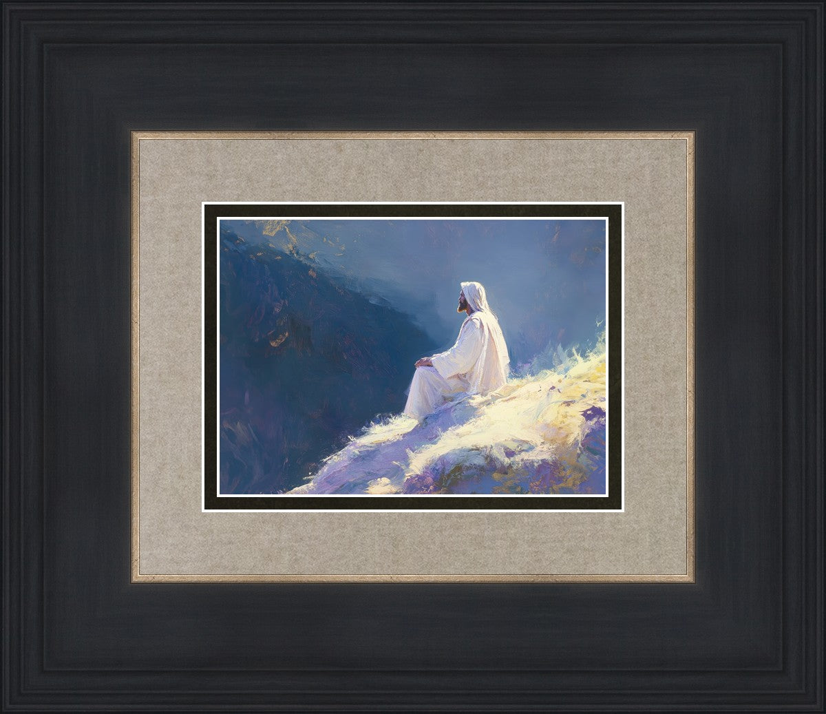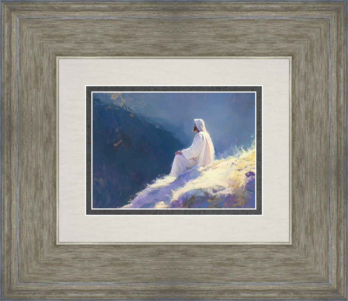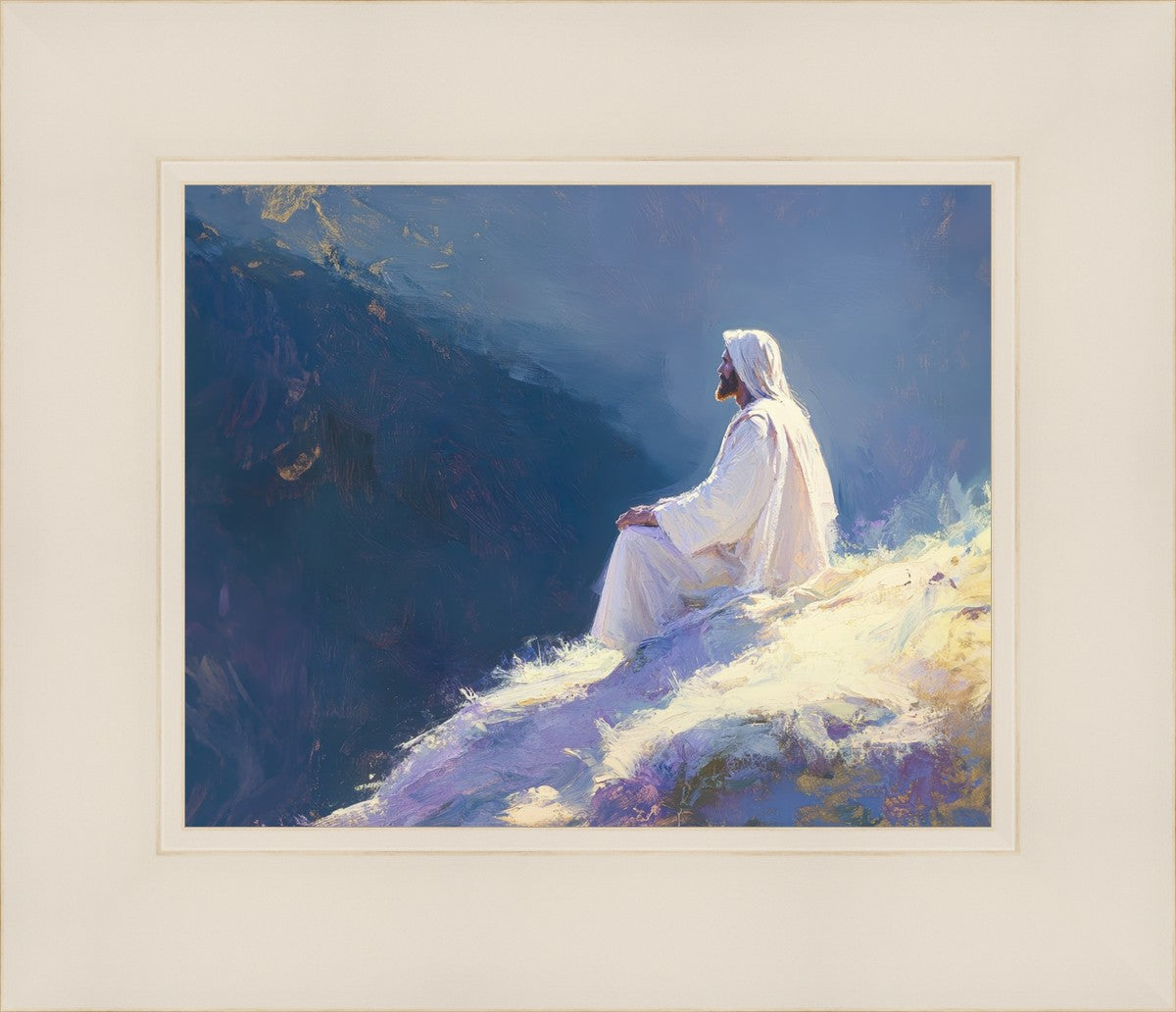 In "Contemplation," we sought to portray a moment of Jesus in quiet reflection, perched on a sunlit ridge. The vibrant colors and ethereal light reflect our desire to capture His peace and spiritual strength. Our simple message is one of hope and stillness, inviting viewers to find solace in His presence amidst life's vastness.