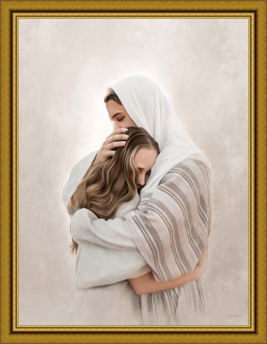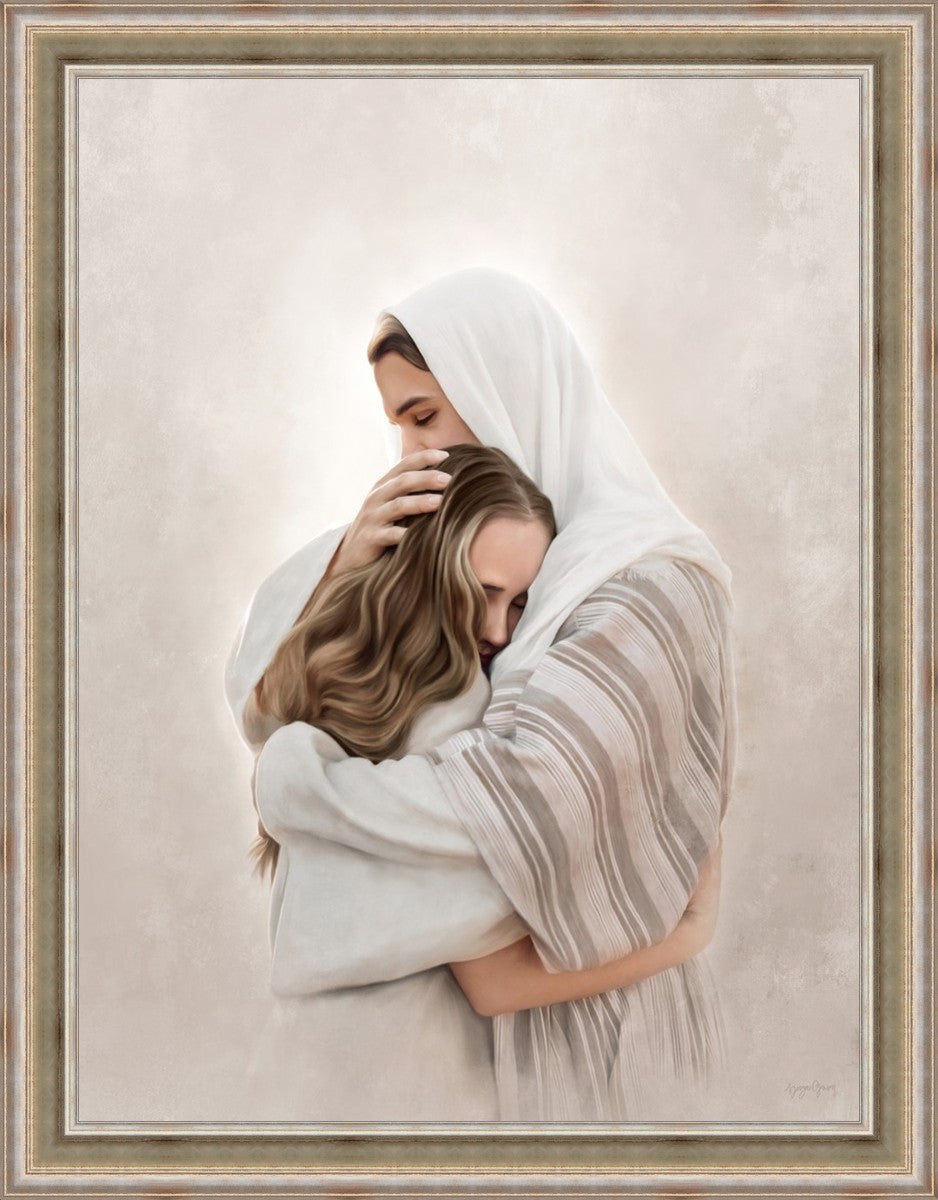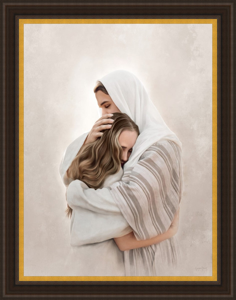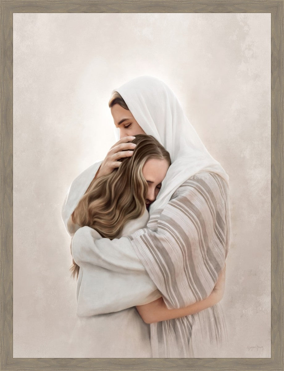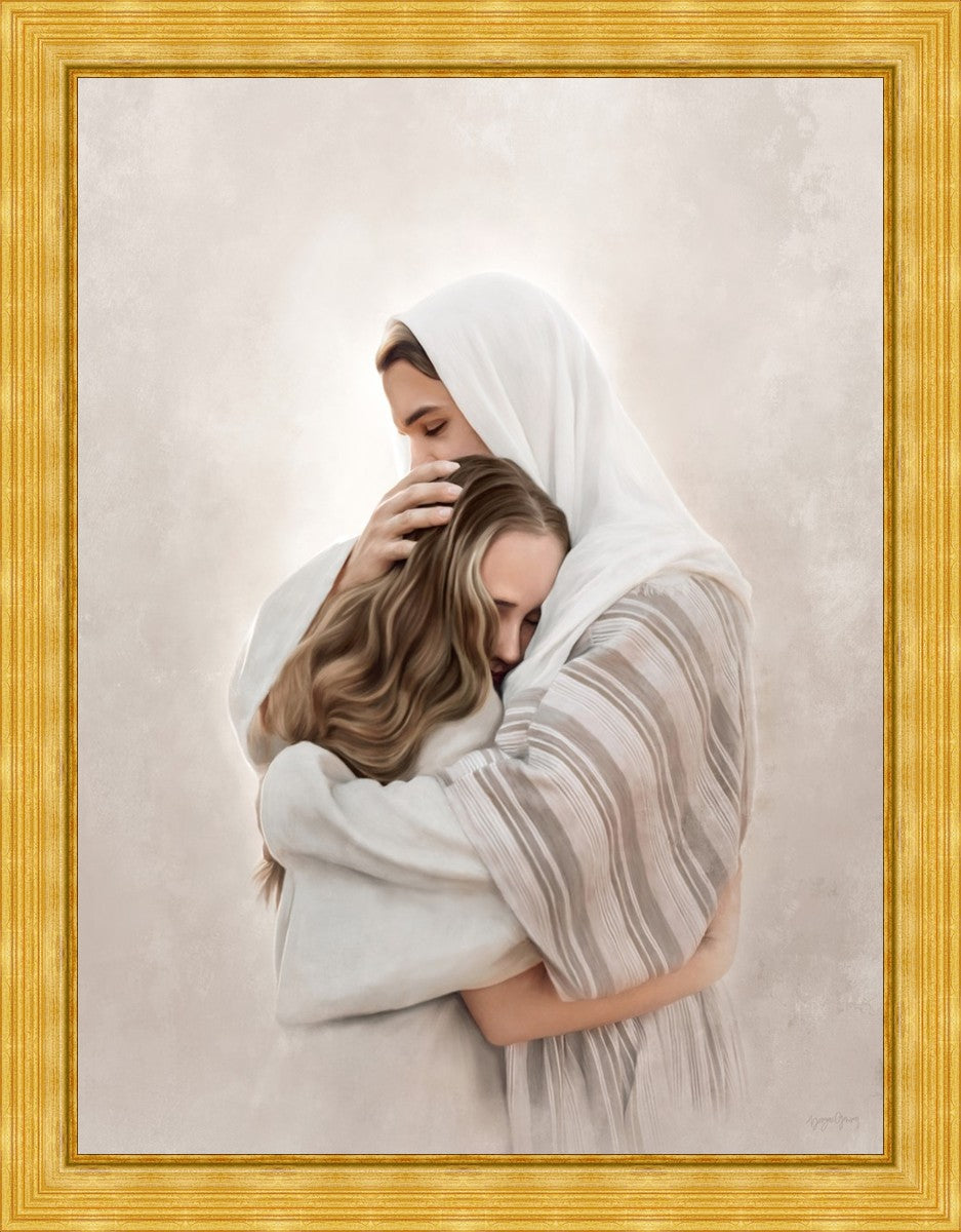 A beautiful painted portrait of the Savior embracing you or I in love.