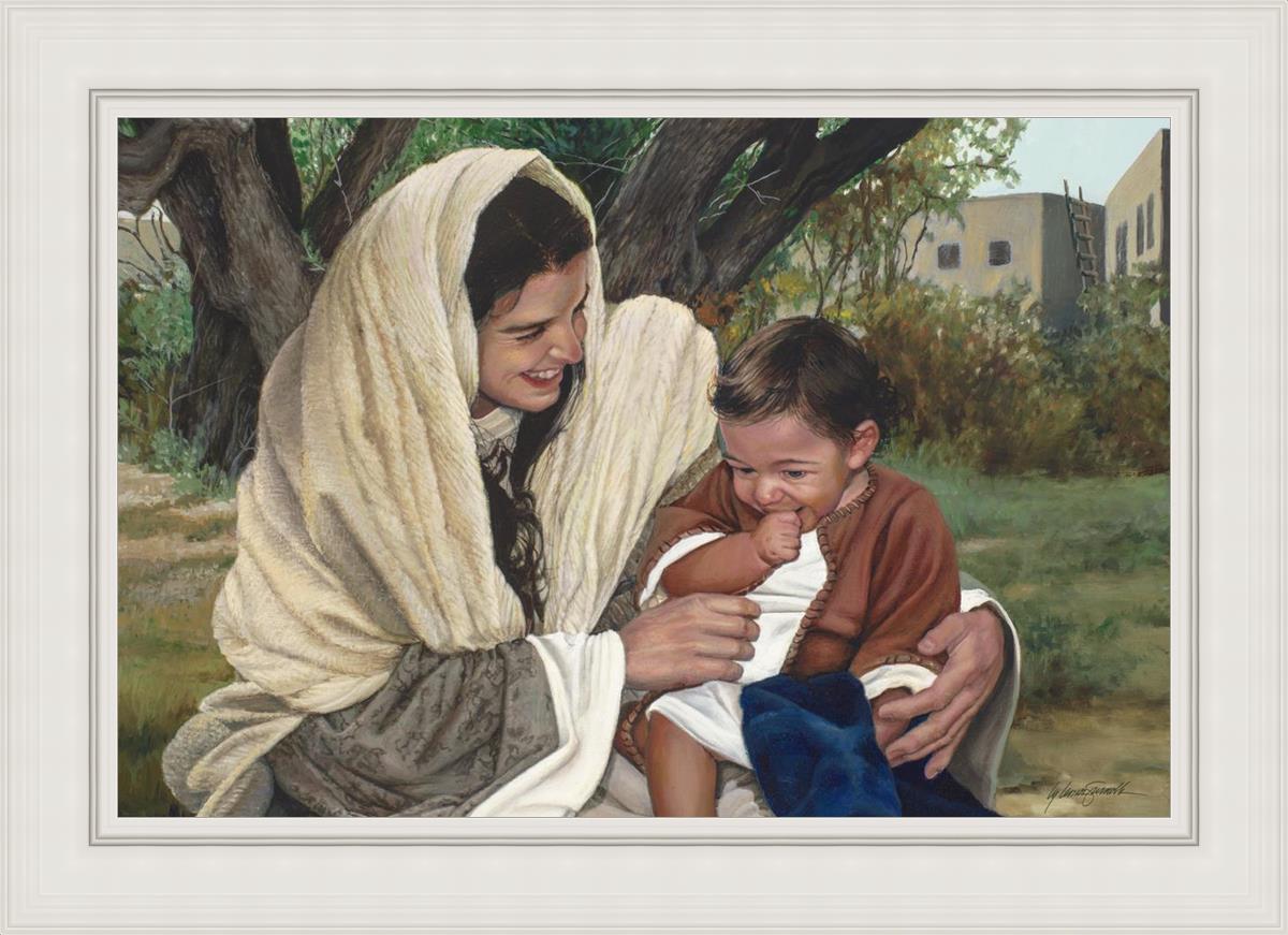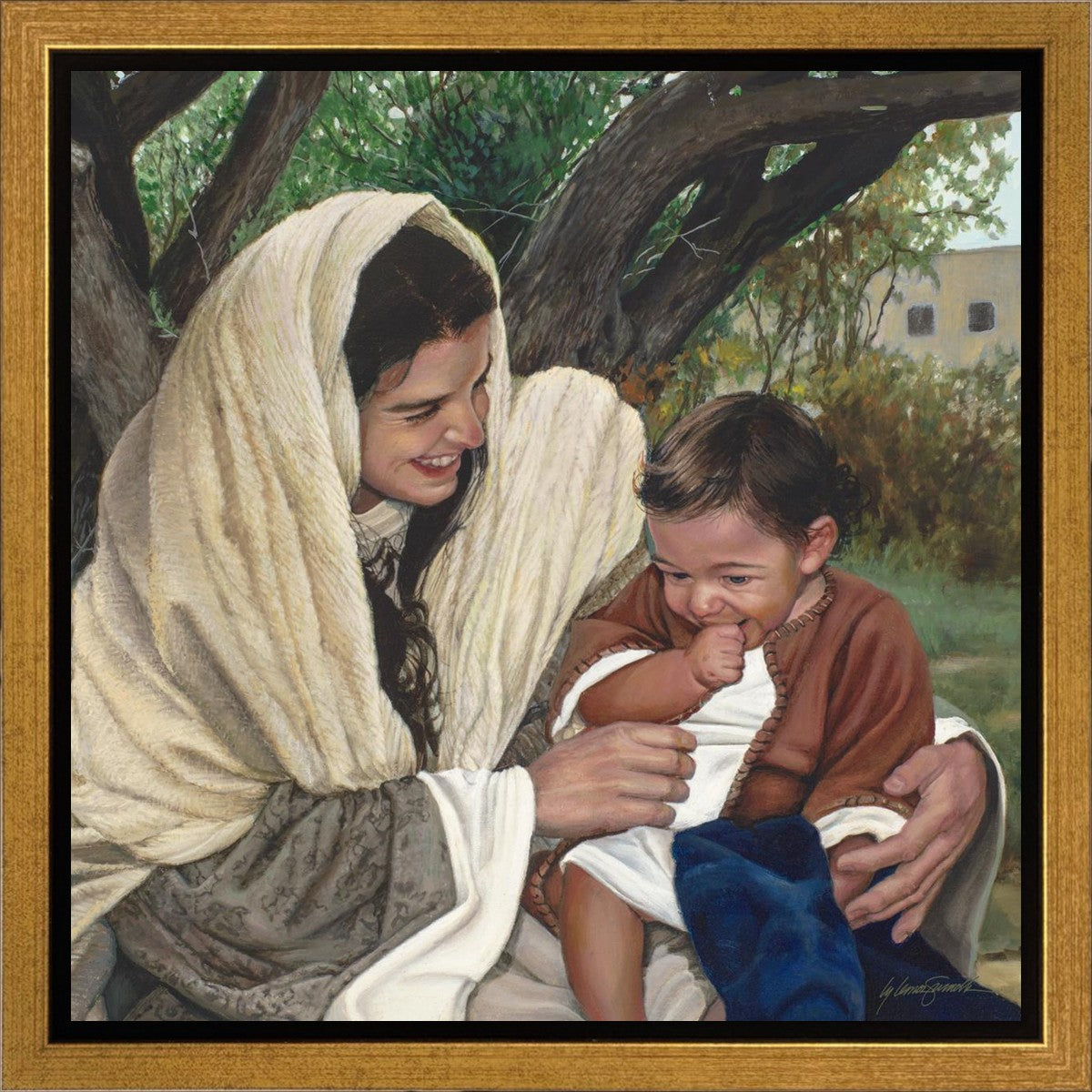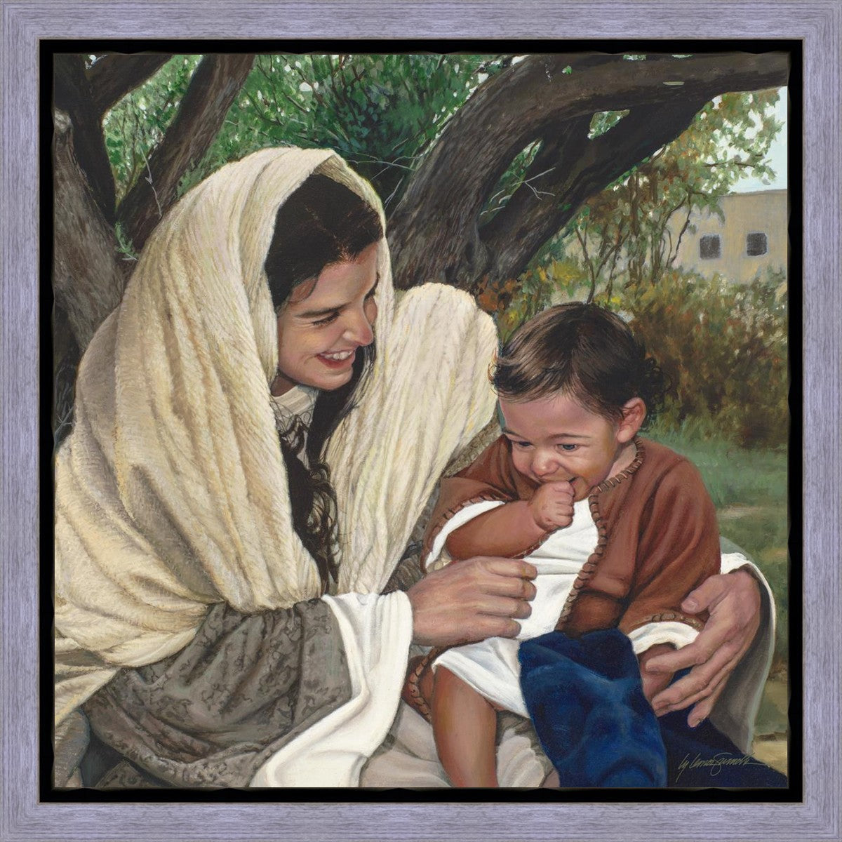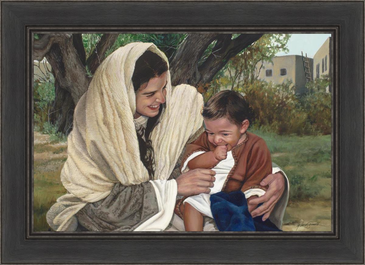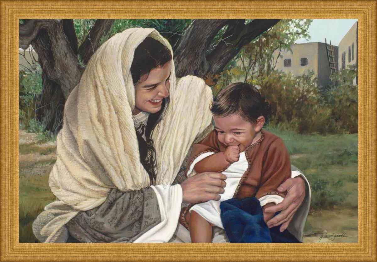 For All Small Moment is a painting by Liz Lemon Swindle. This painting depicts Mary with young Jesus sitting in front of a tree.
