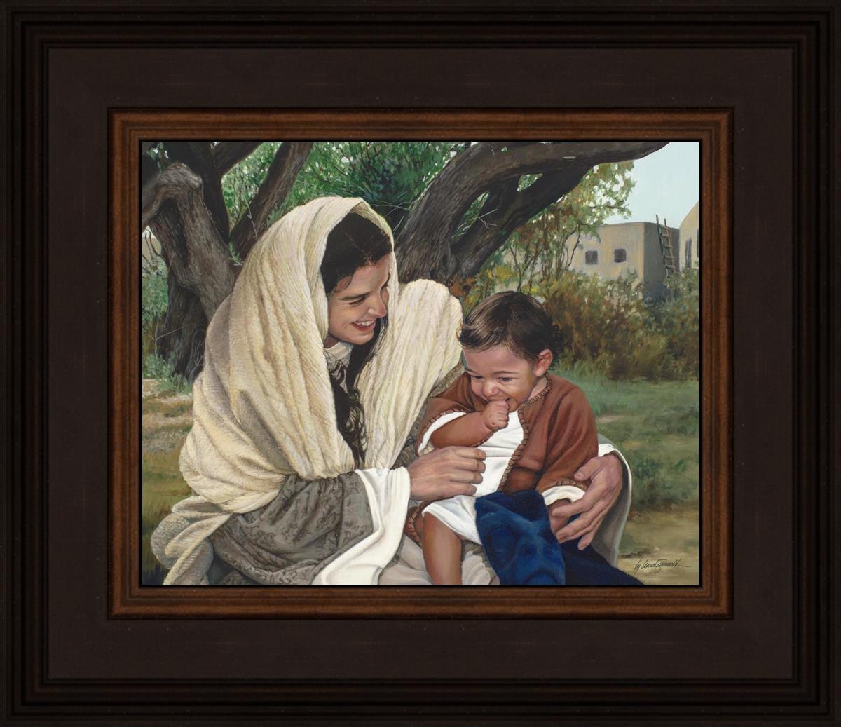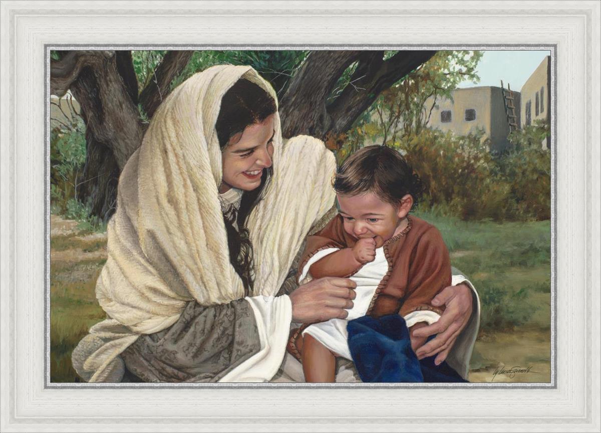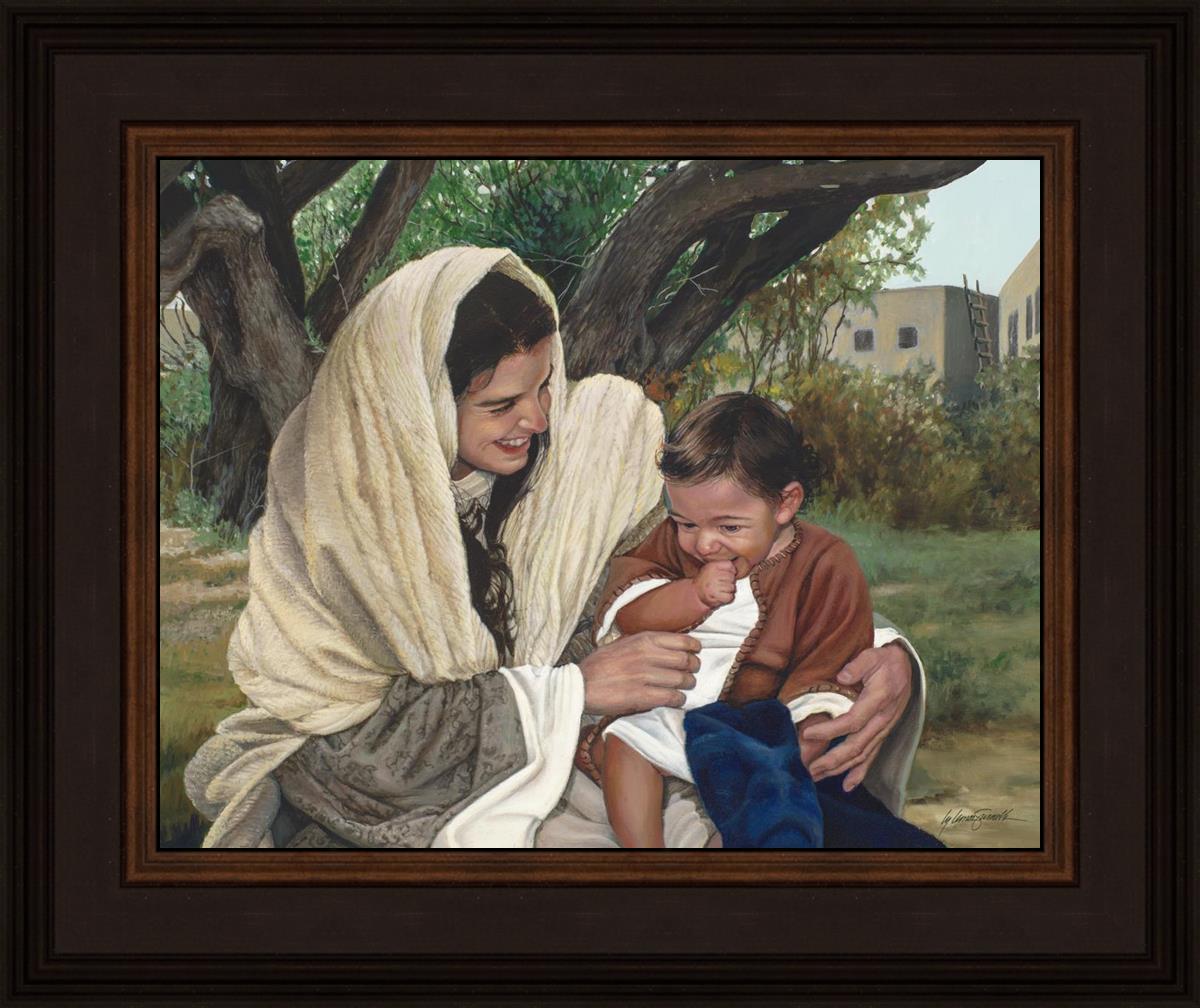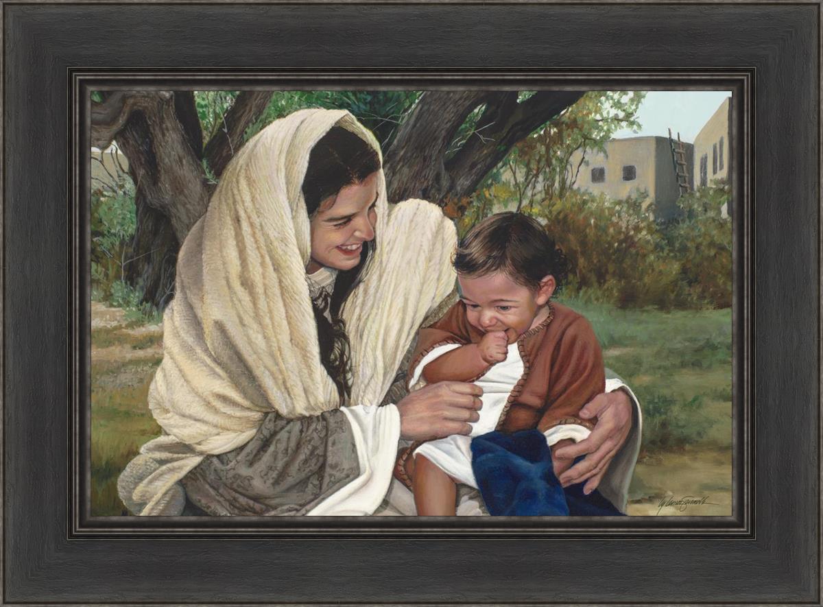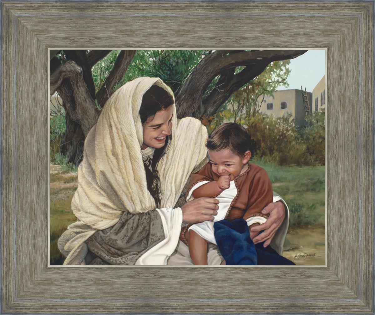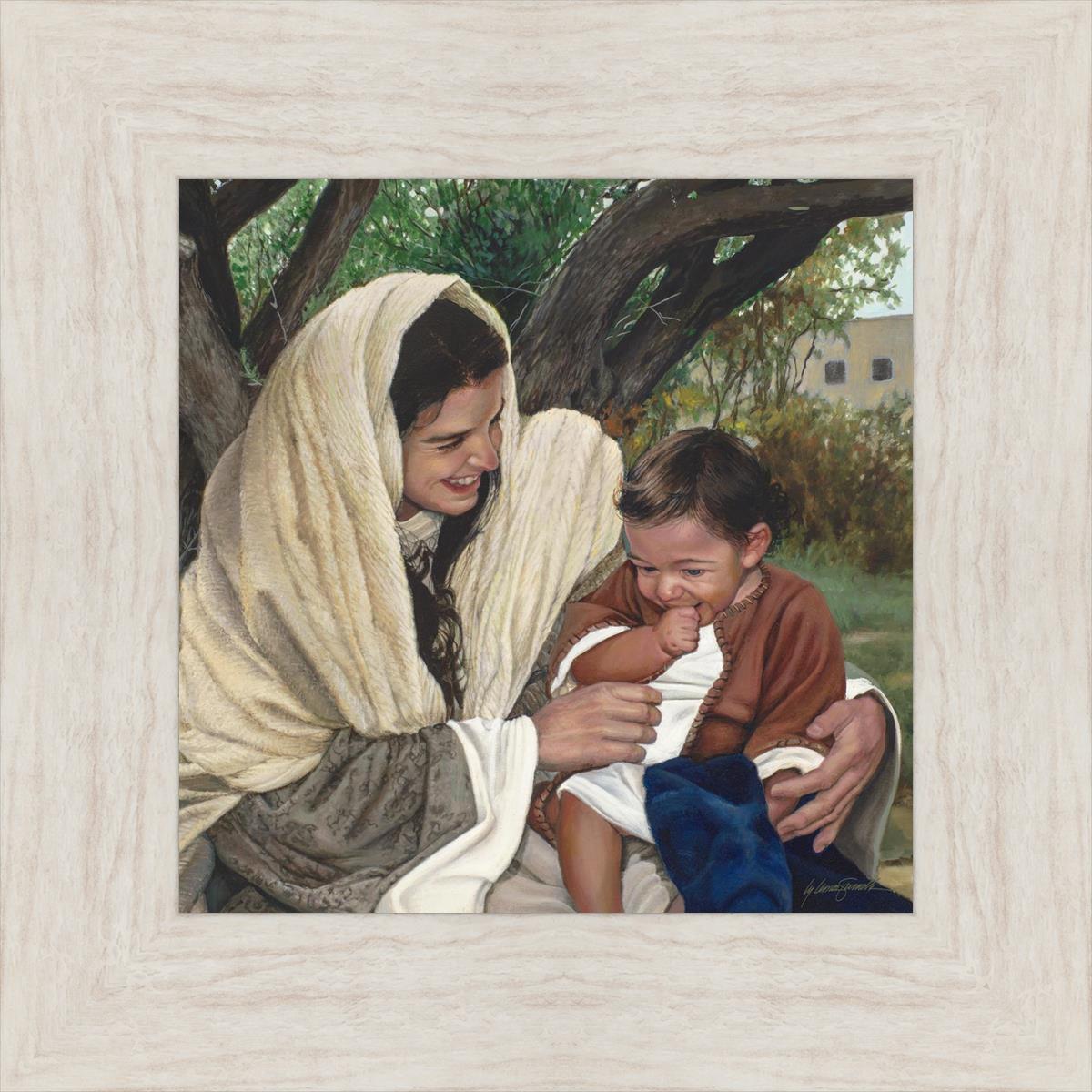 For All Small Moment is a painting by Liz Lemon Swindle. This painting depicts Mary with young Jesus sitting in front of a tree.