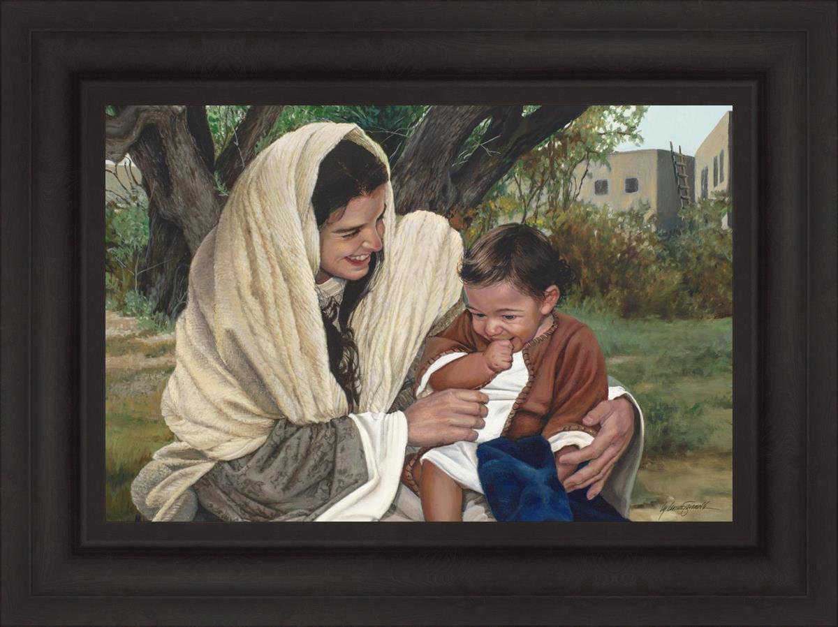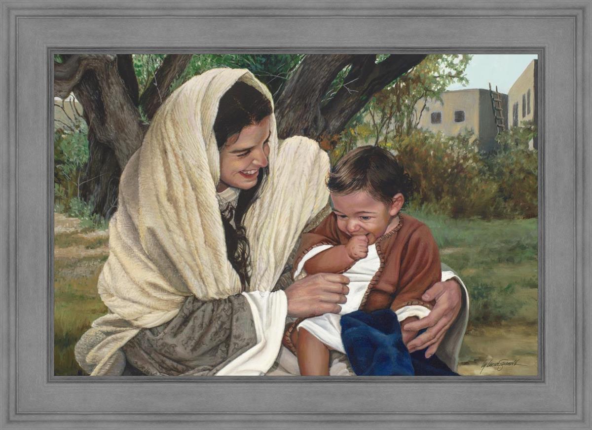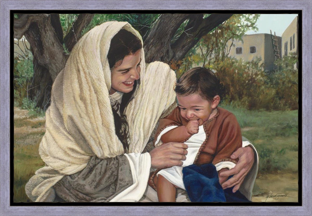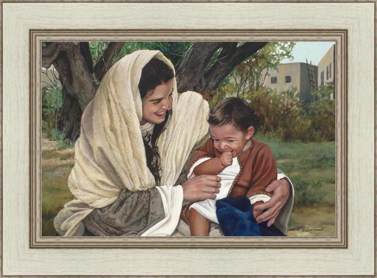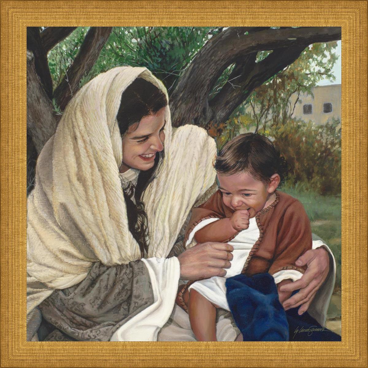 For All Small Moment is a painting by Liz Lemon Swindle. This painting depicts Mary with young Jesus sitting in front of a tree.