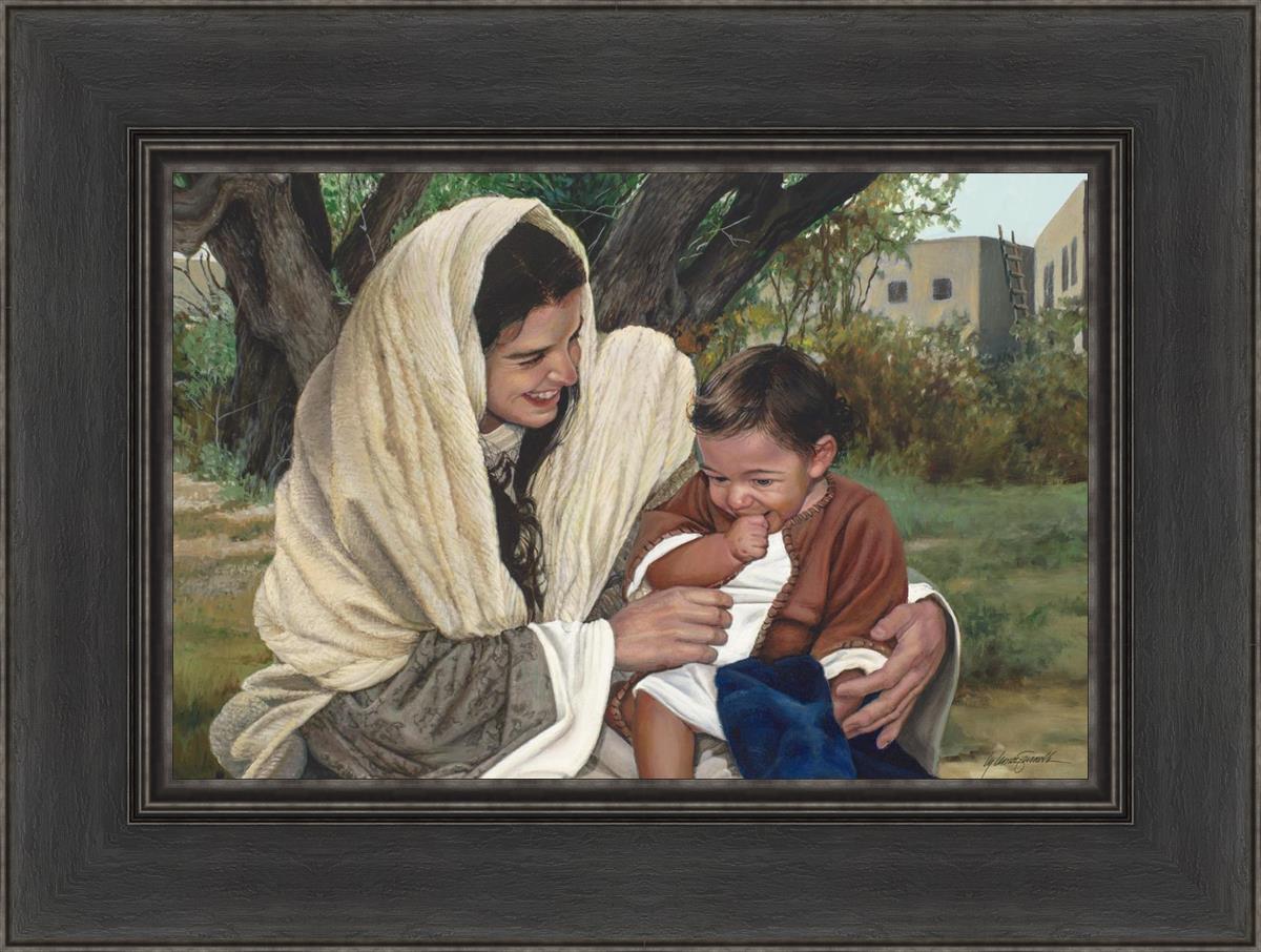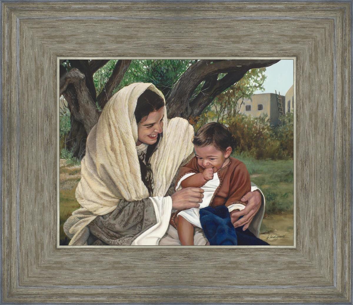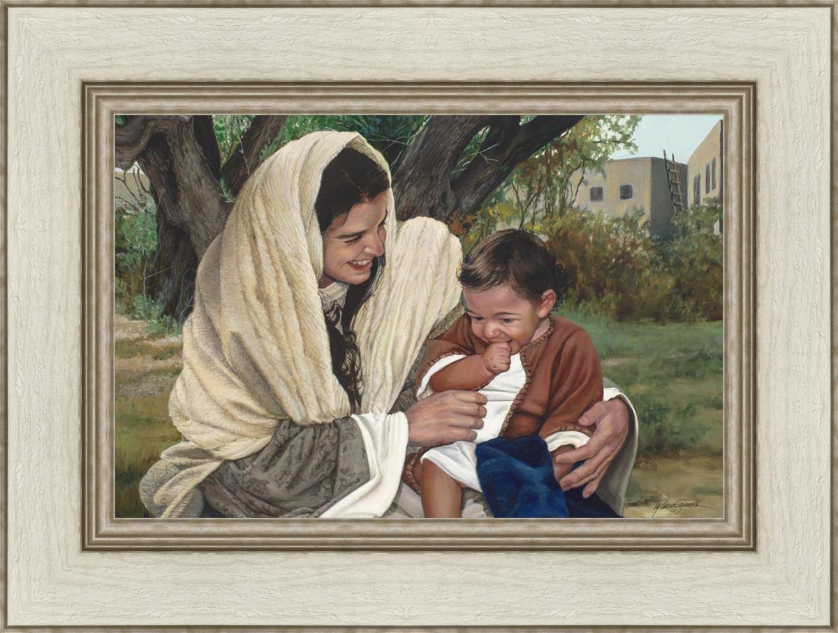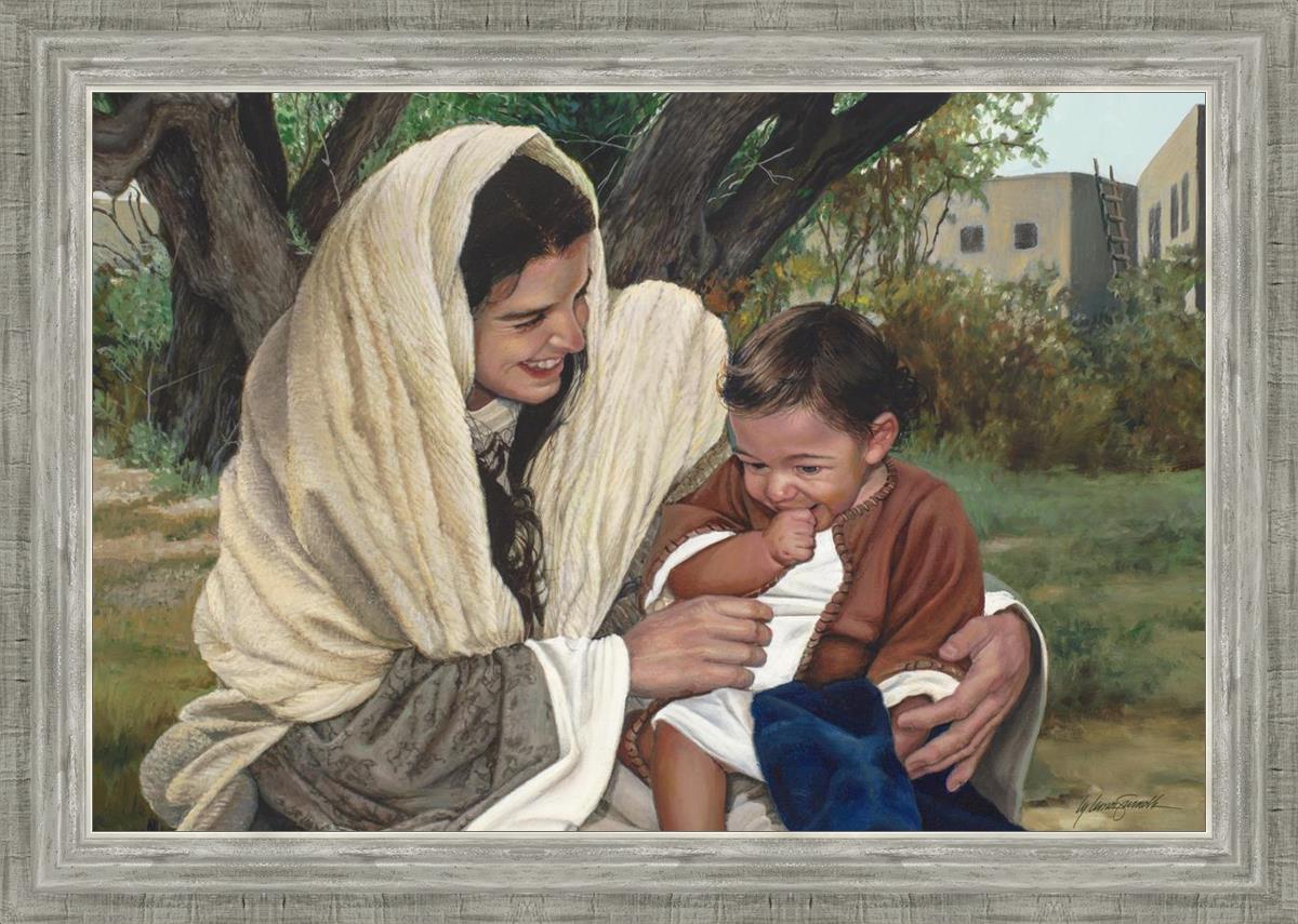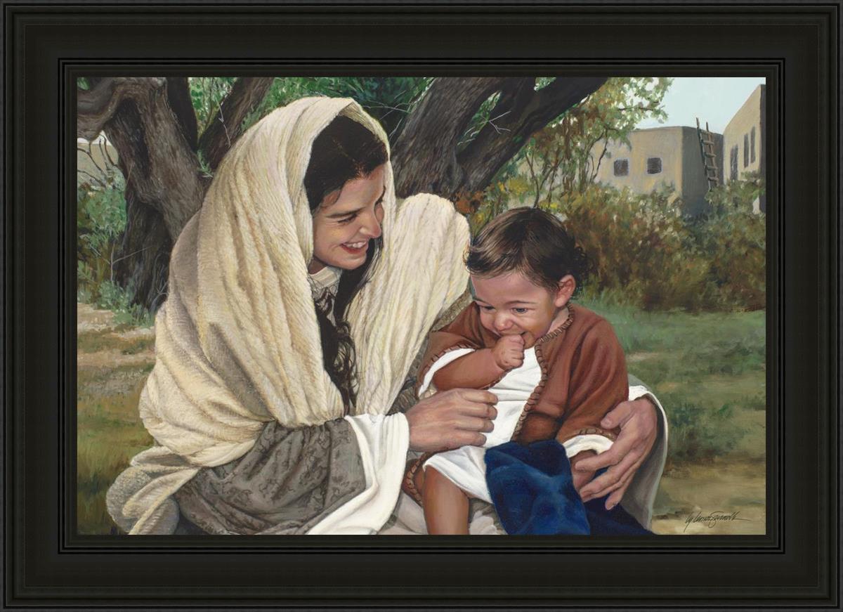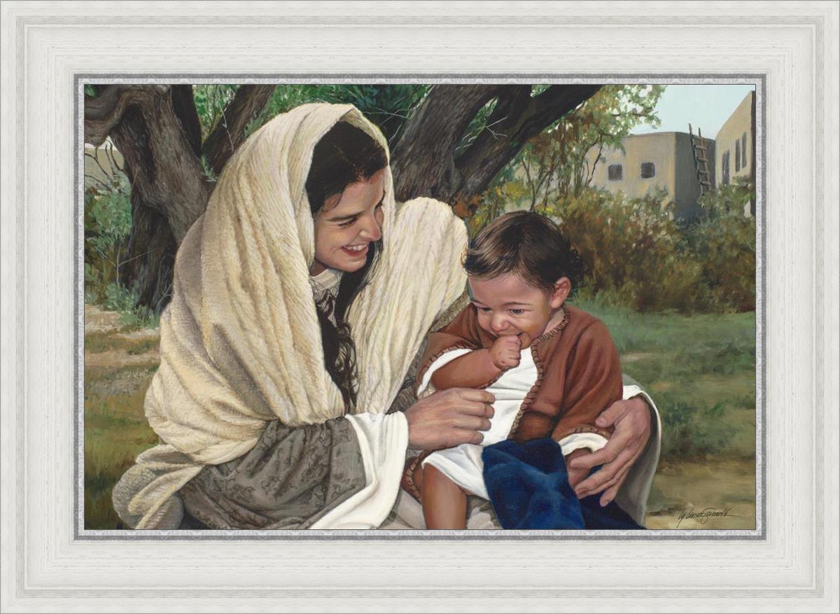 For All Small Moment is a painting by Liz Lemon Swindle. This painting depicts Mary with young Jesus sitting in front of a tree.