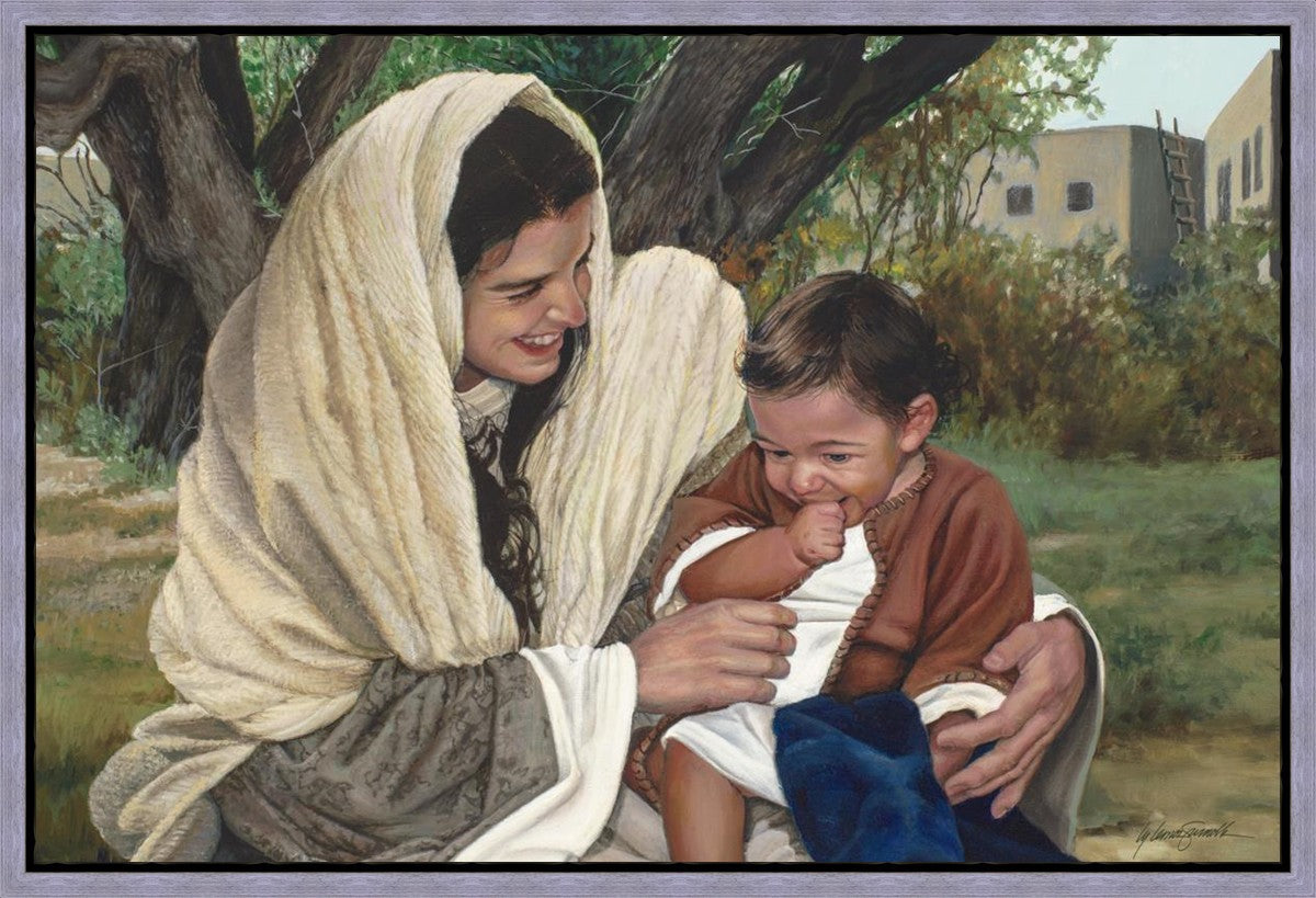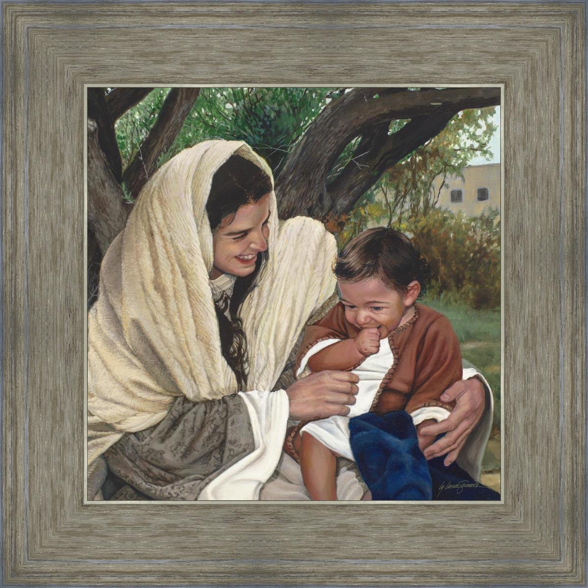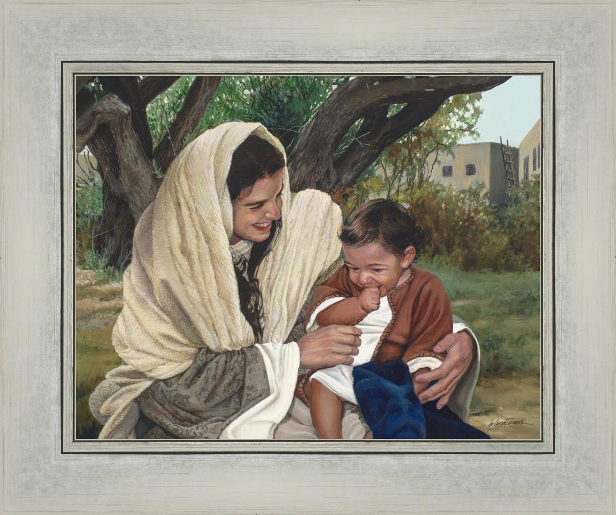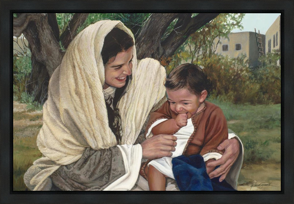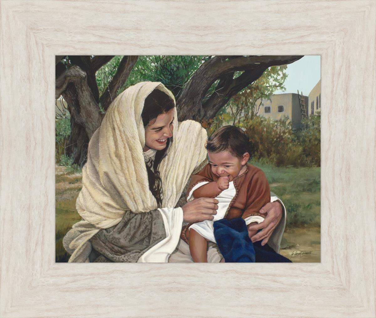 For All Small Moment is a painting by Liz Lemon Swindle. This painting depicts Mary with young Jesus sitting in front of a tree.
