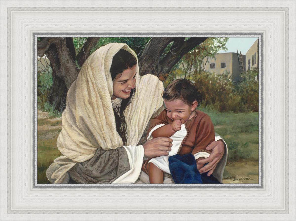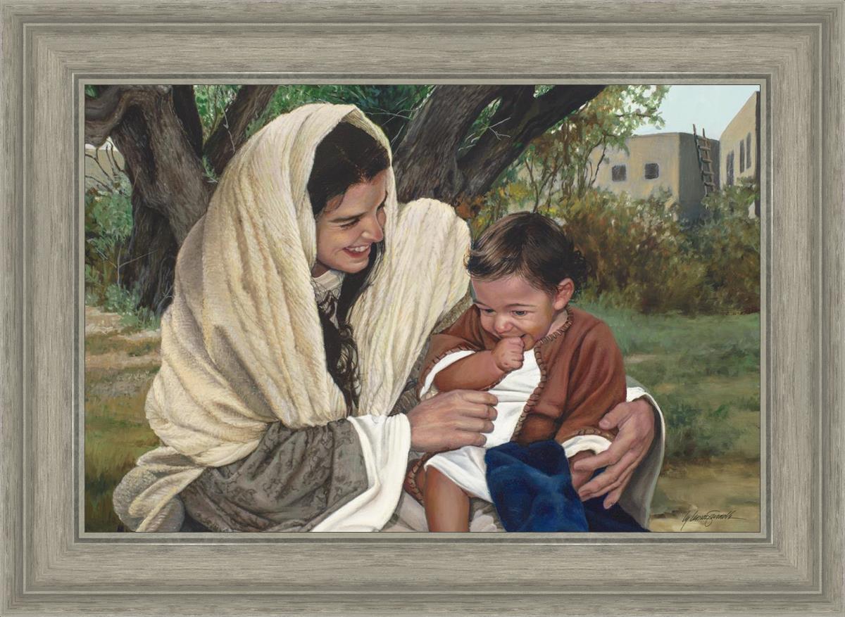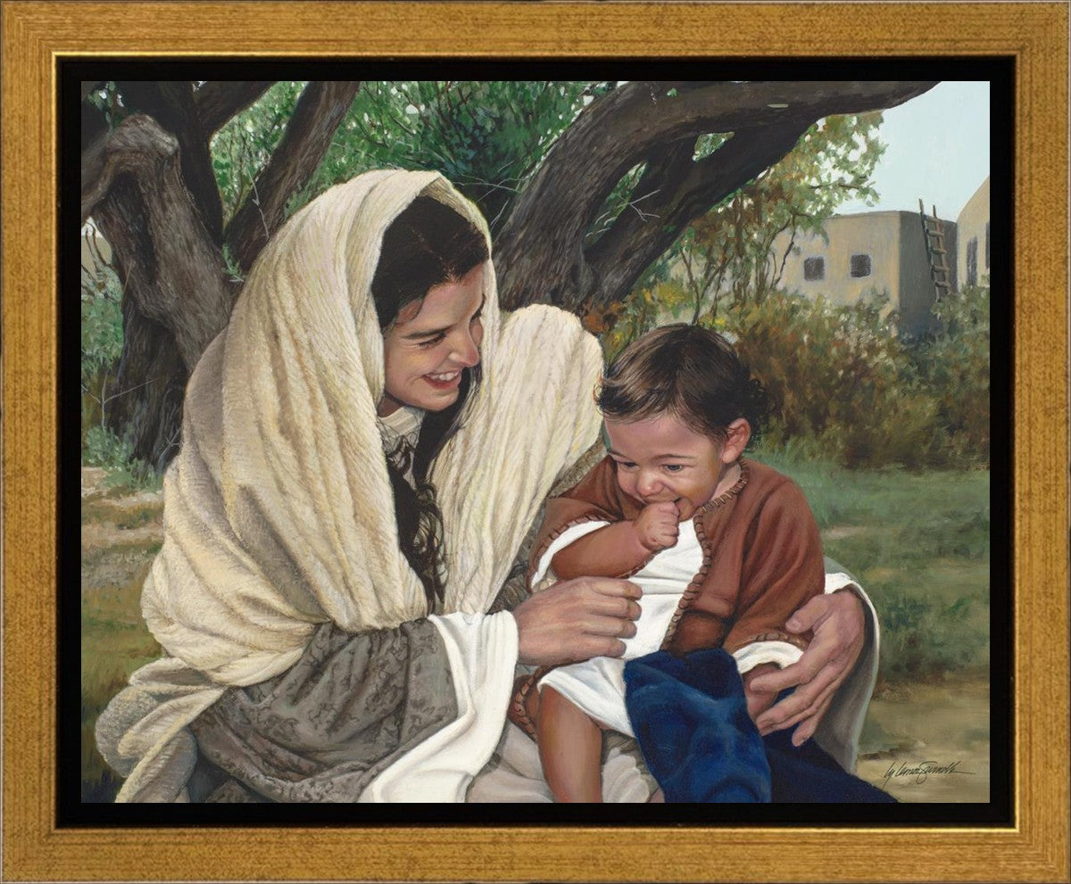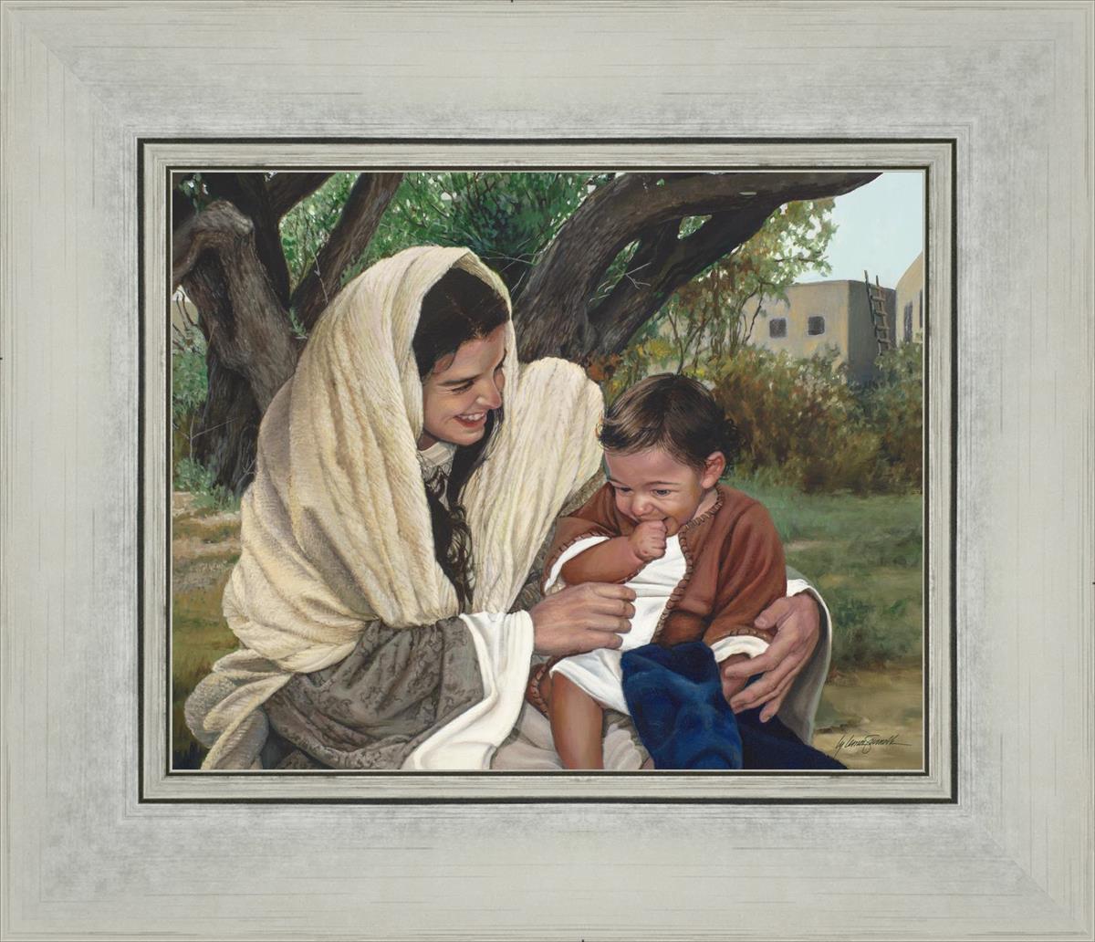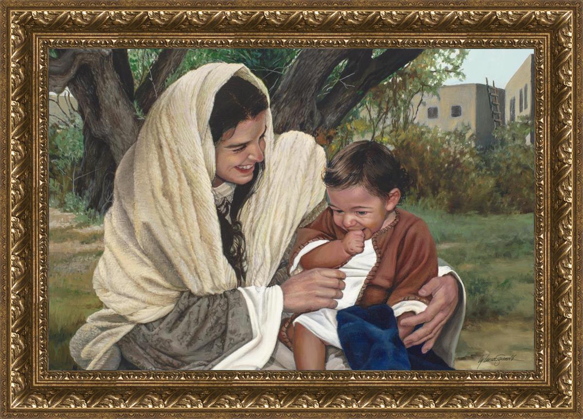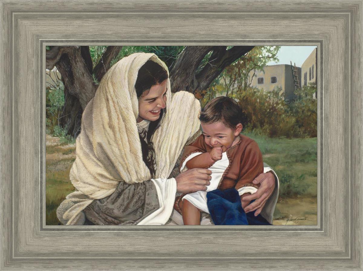 For All Small Moment is a painting by Liz Lemon Swindle. This painting depicts Mary with young Jesus sitting in front of a tree.