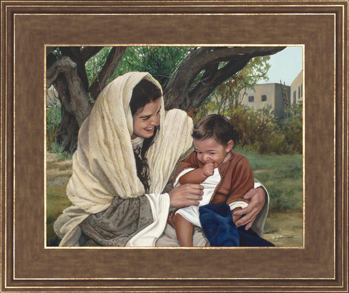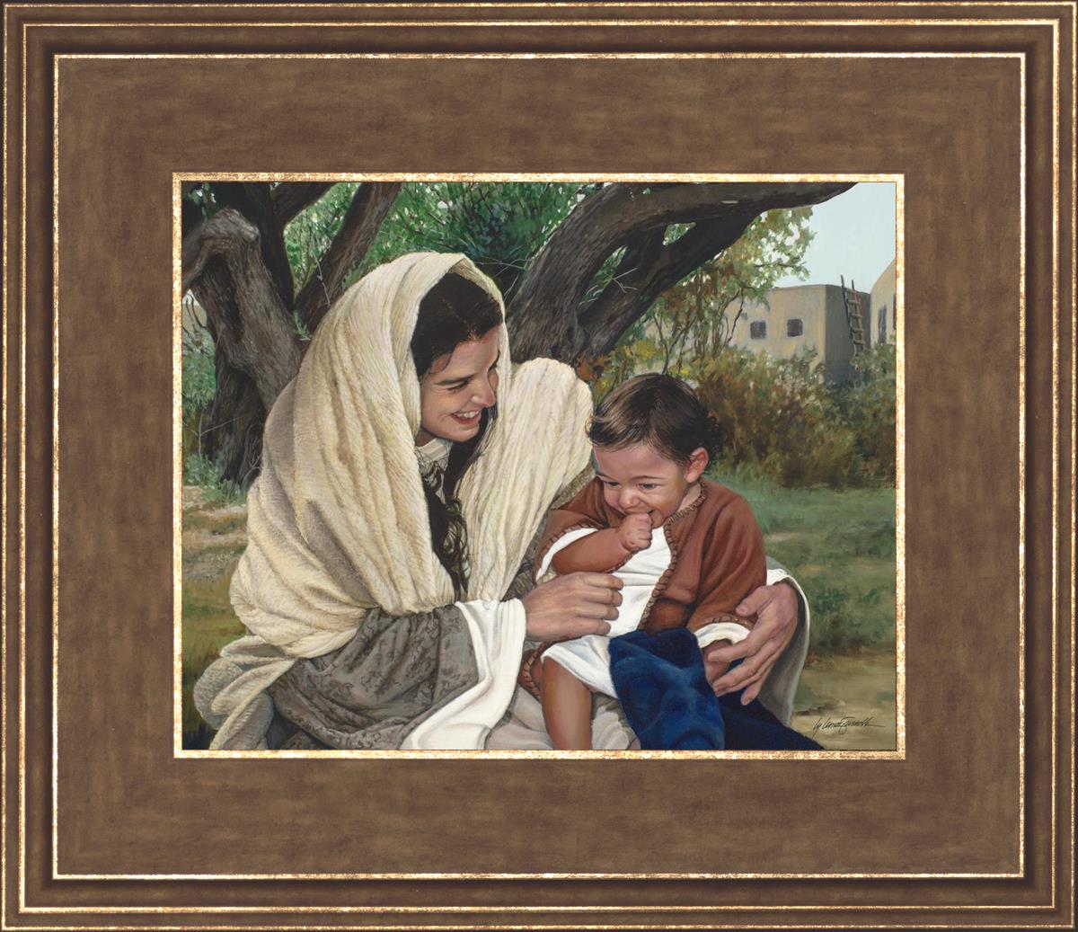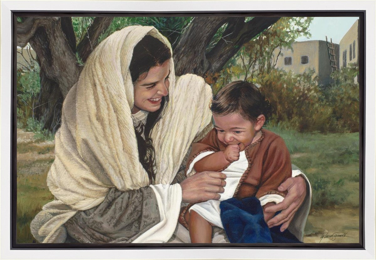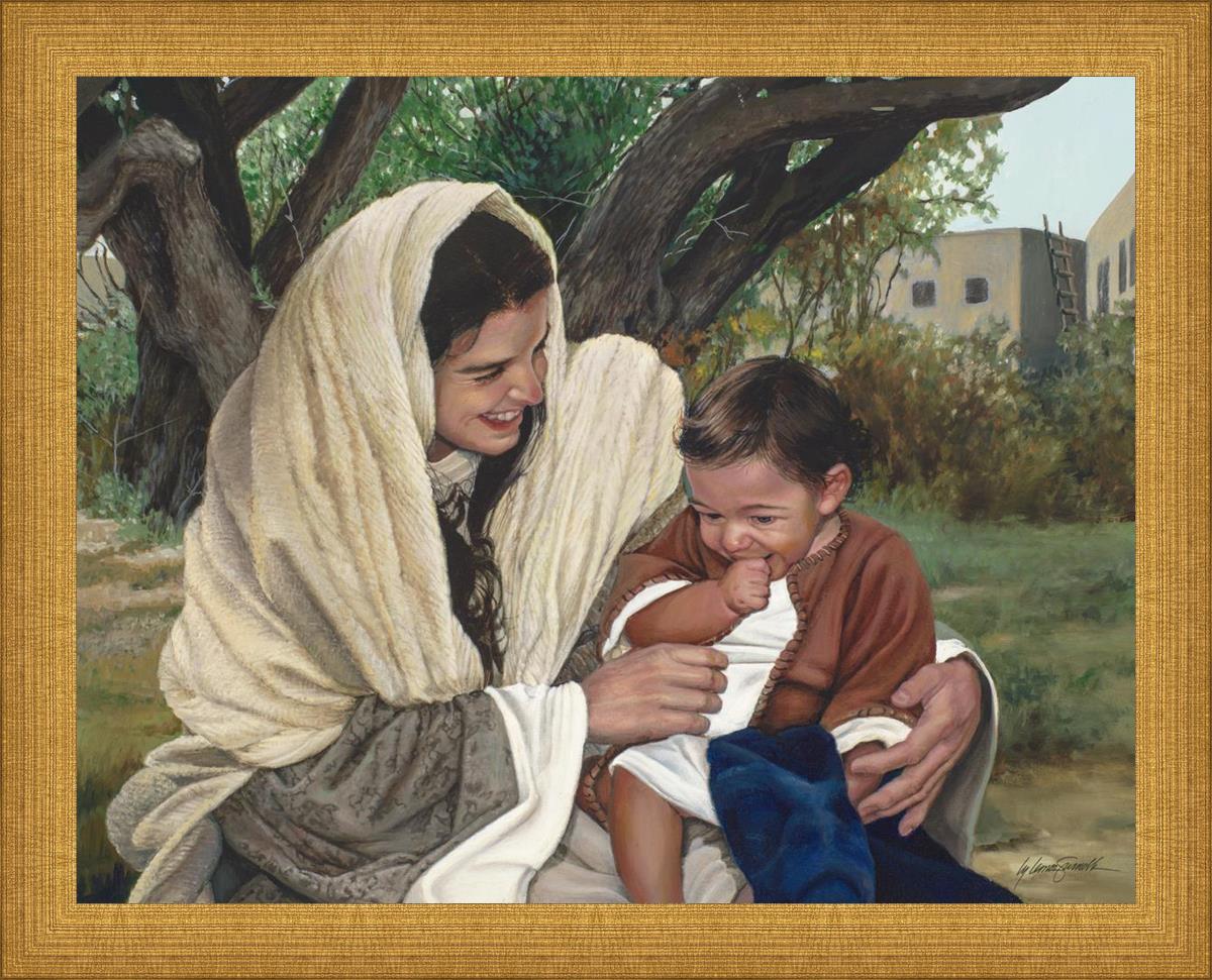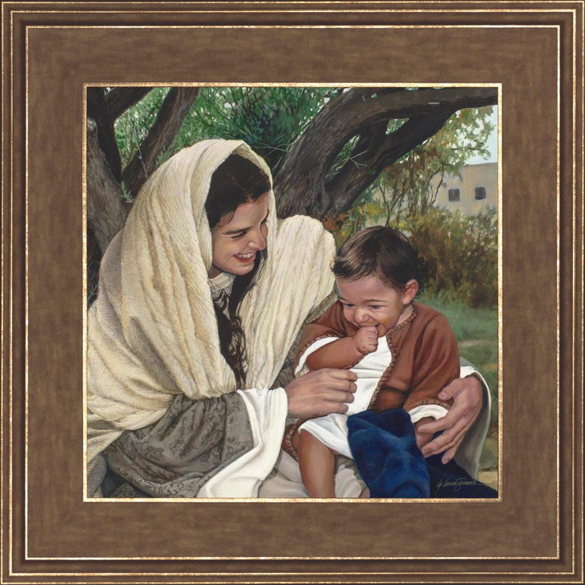 For All Small Moment is a painting by Liz Lemon Swindle. This painting depicts Mary with young Jesus sitting in front of a tree.