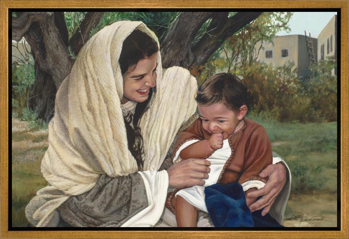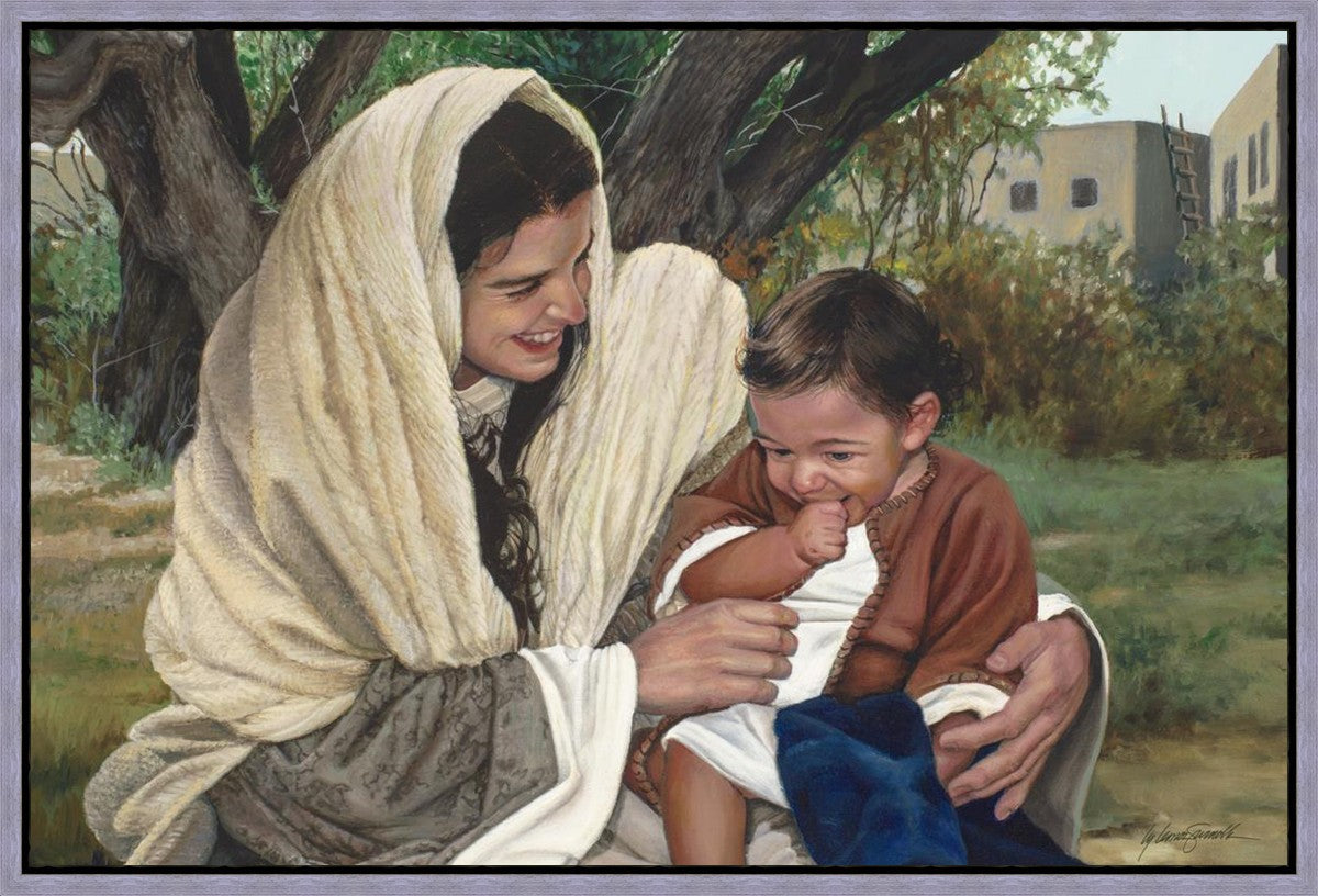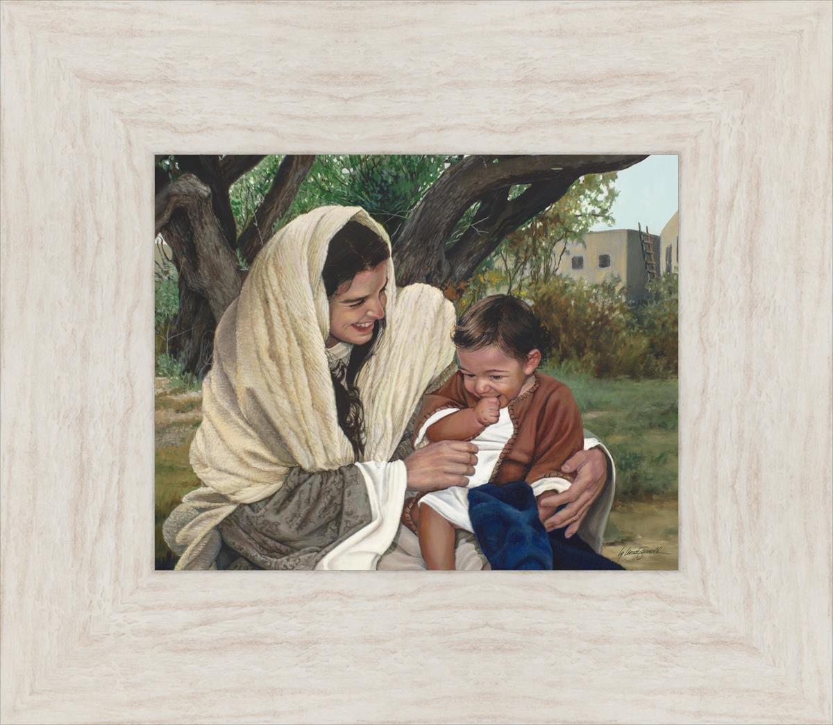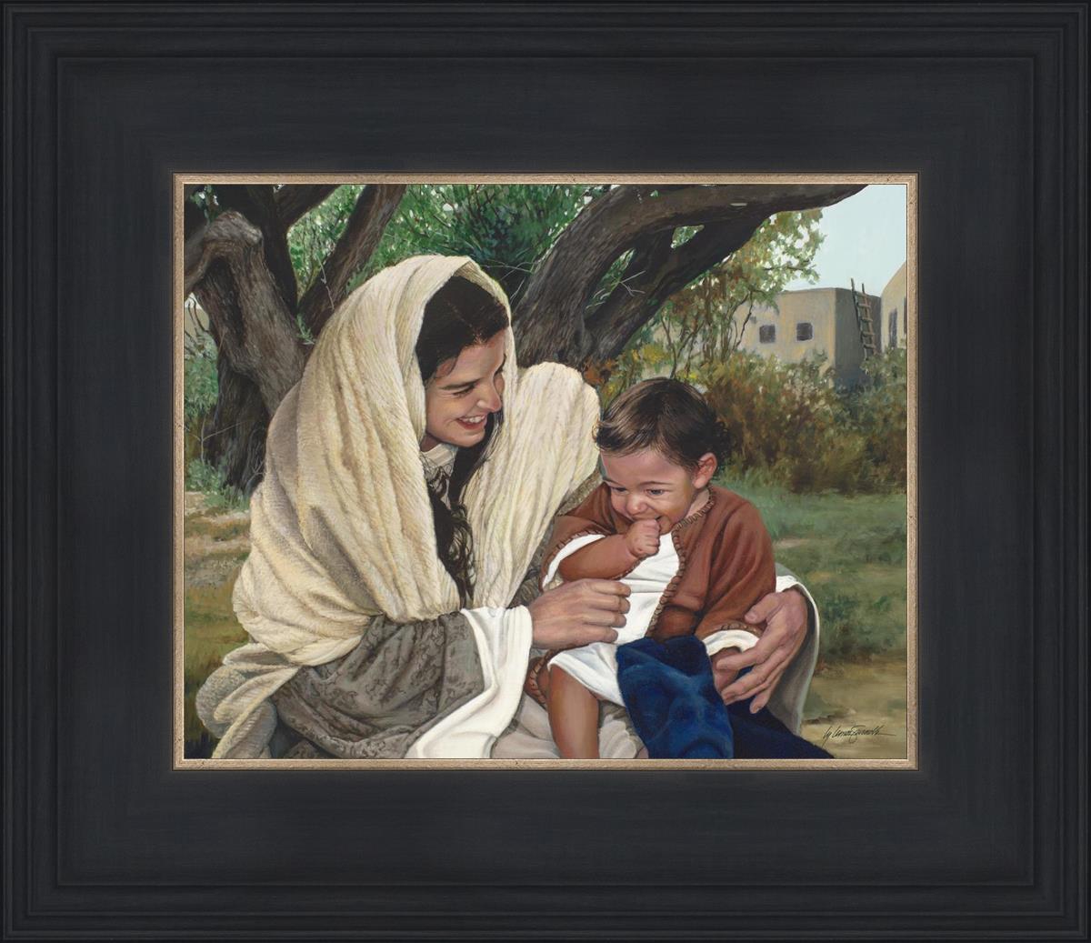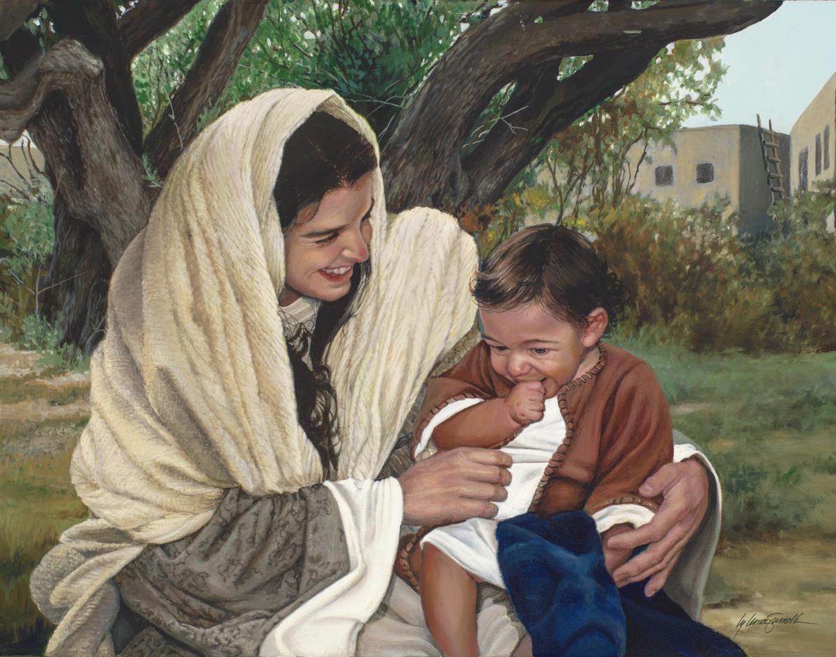 For All Small Moment is a painting by Liz Lemon Swindle. This painting depicts Mary with young Jesus sitting in front of a tree.