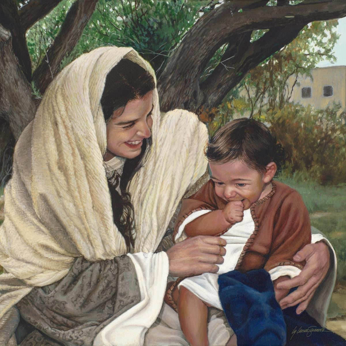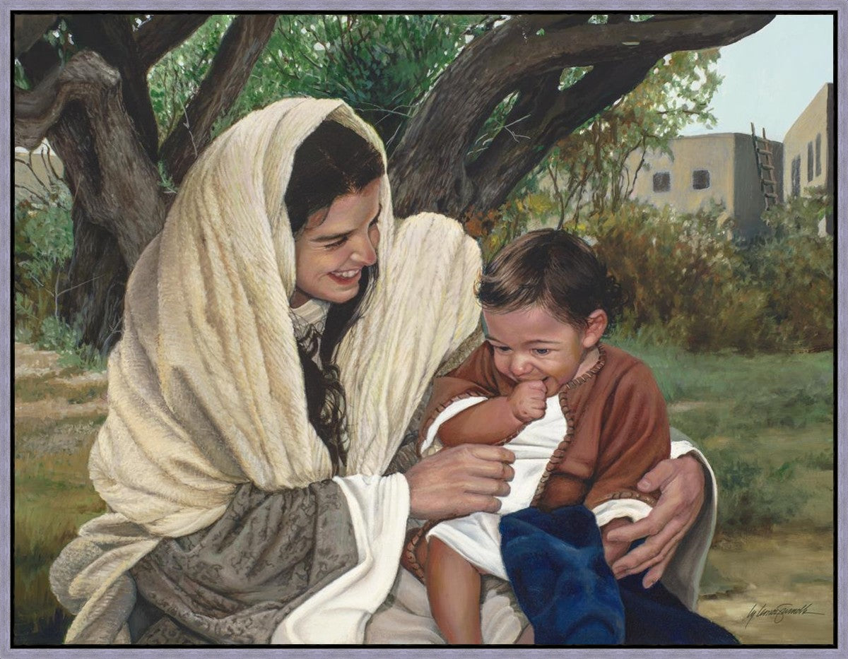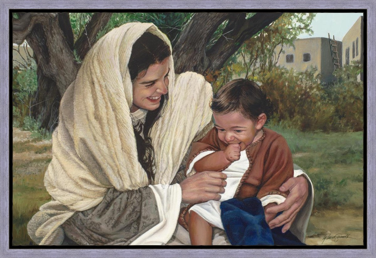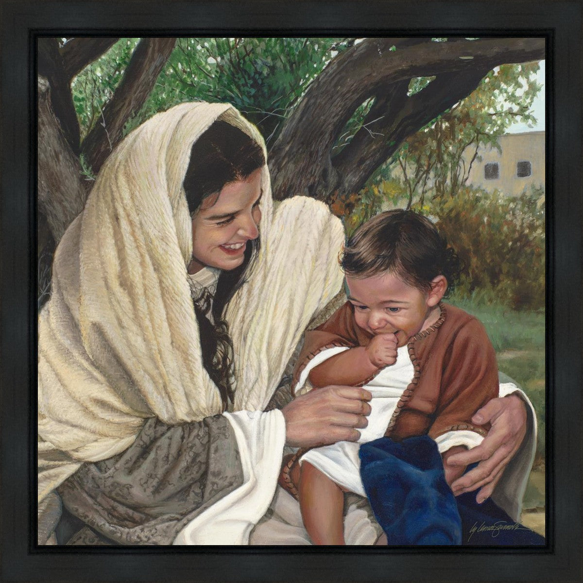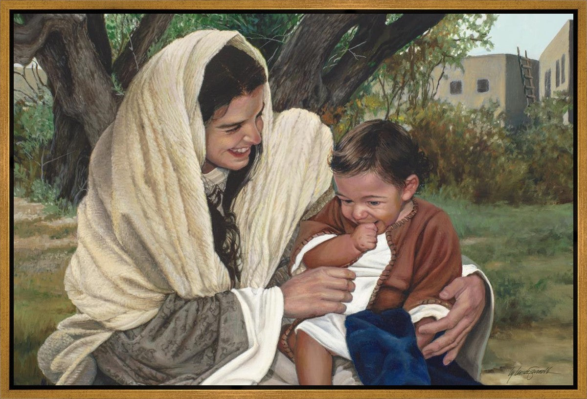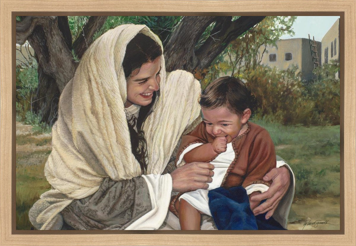 For All Small Moment is a painting by Liz Lemon Swindle. This painting depicts Mary with young Jesus sitting in front of a tree.