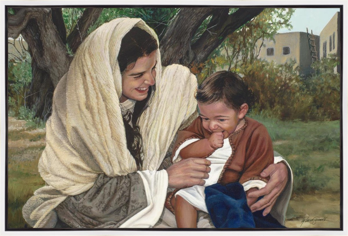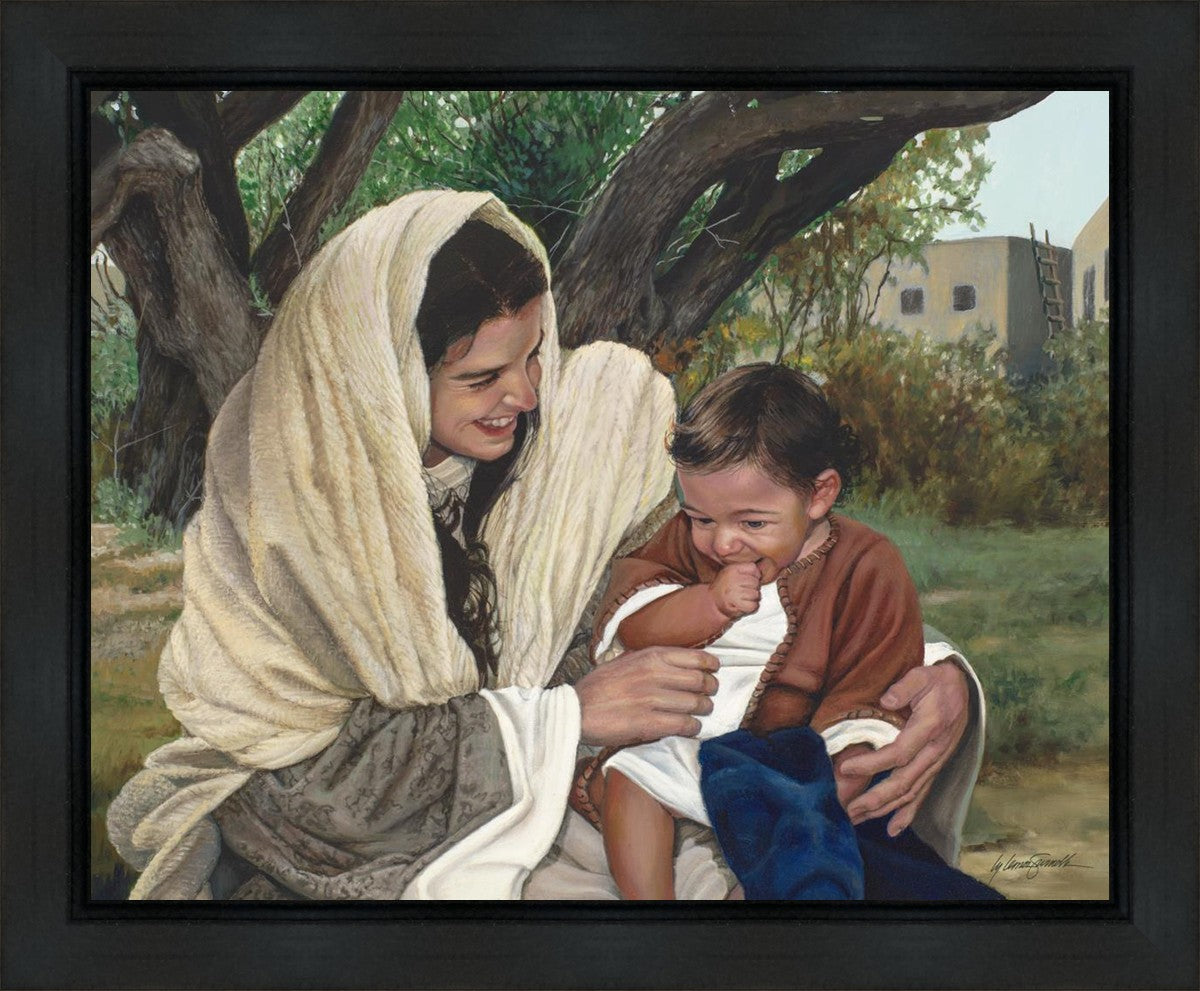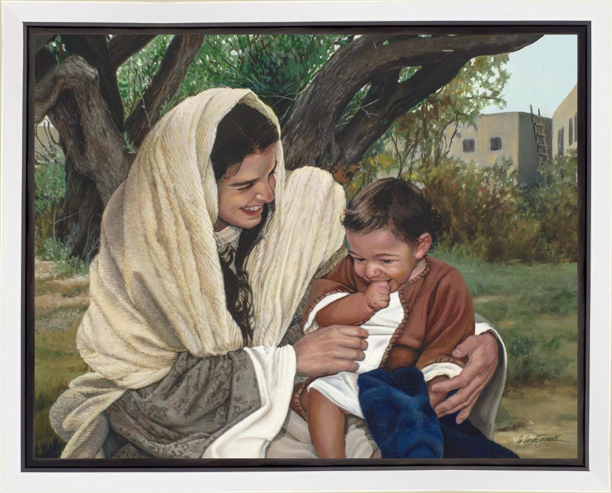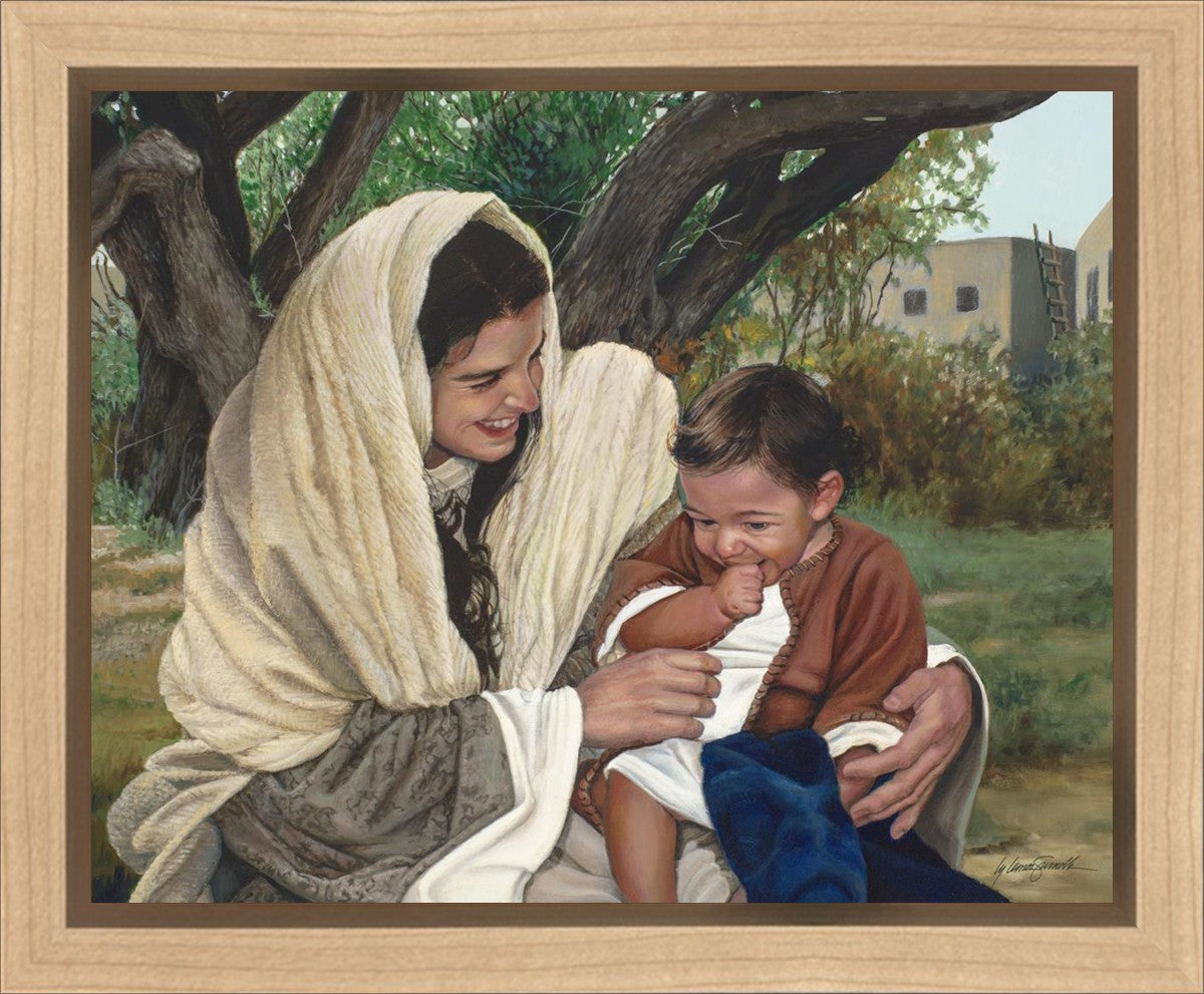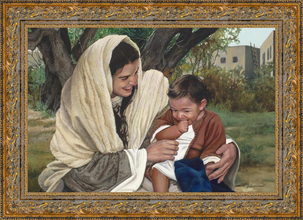 For All Small Moment is a painting by Liz Lemon Swindle. This painting depicts Mary with young Jesus sitting in front of a tree.