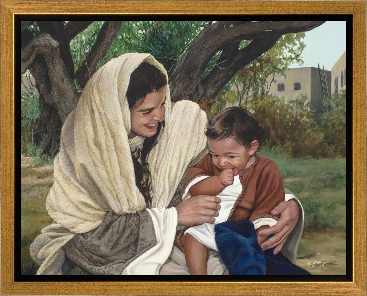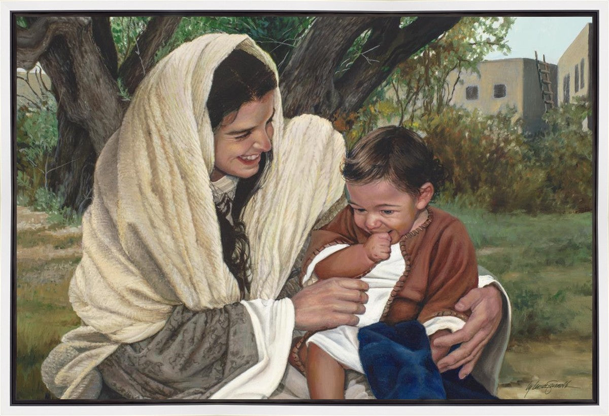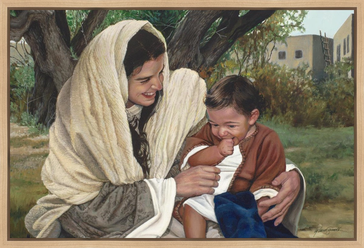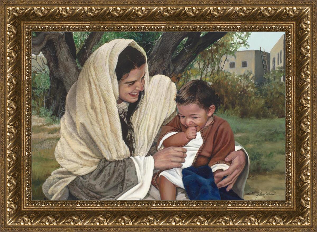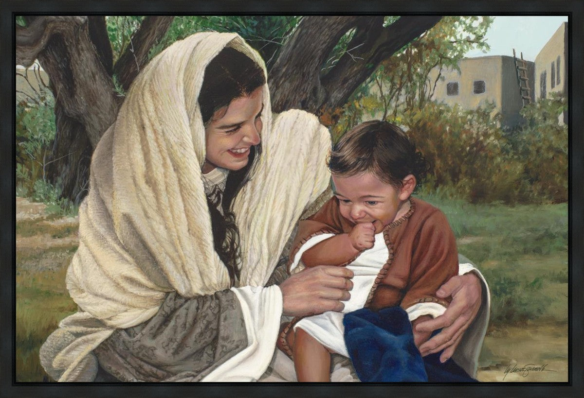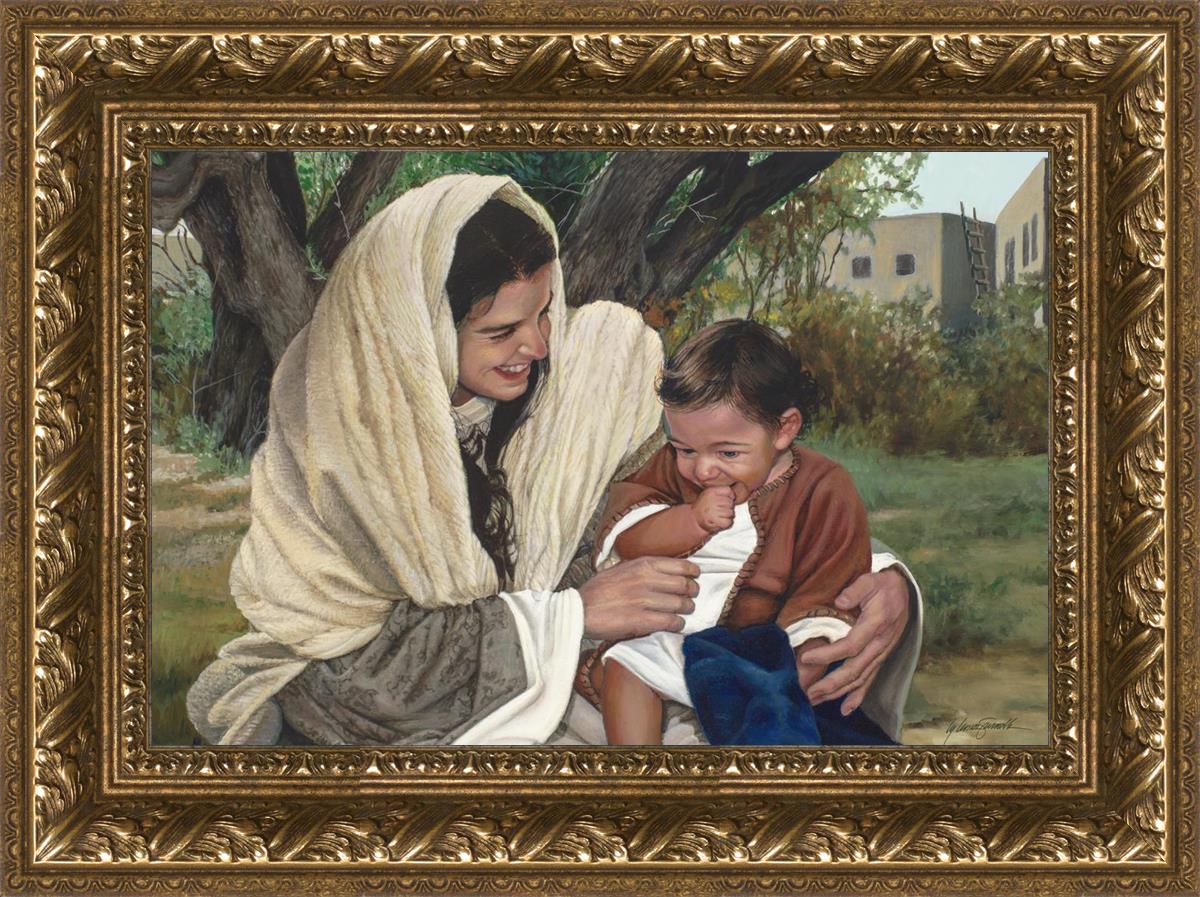 For All Small Moment is a painting by Liz Lemon Swindle. This painting depicts Mary with young Jesus sitting in front of a tree.