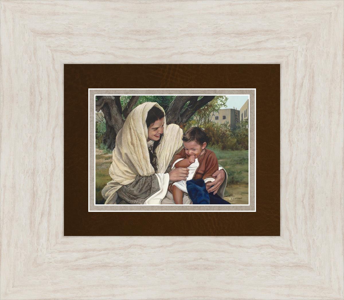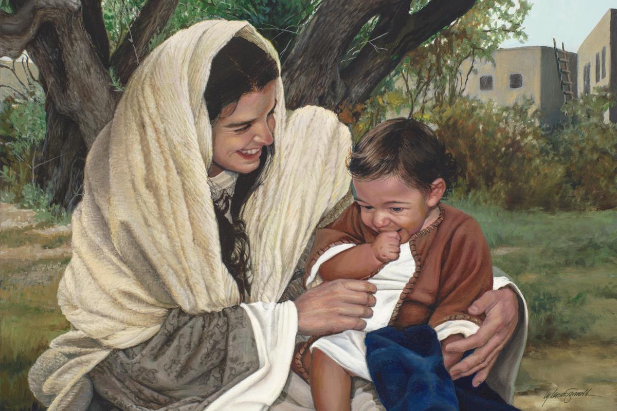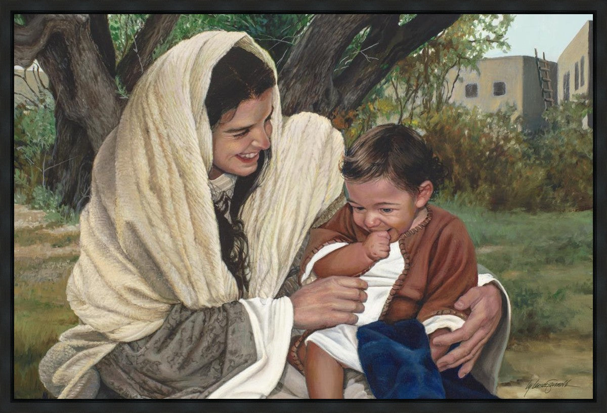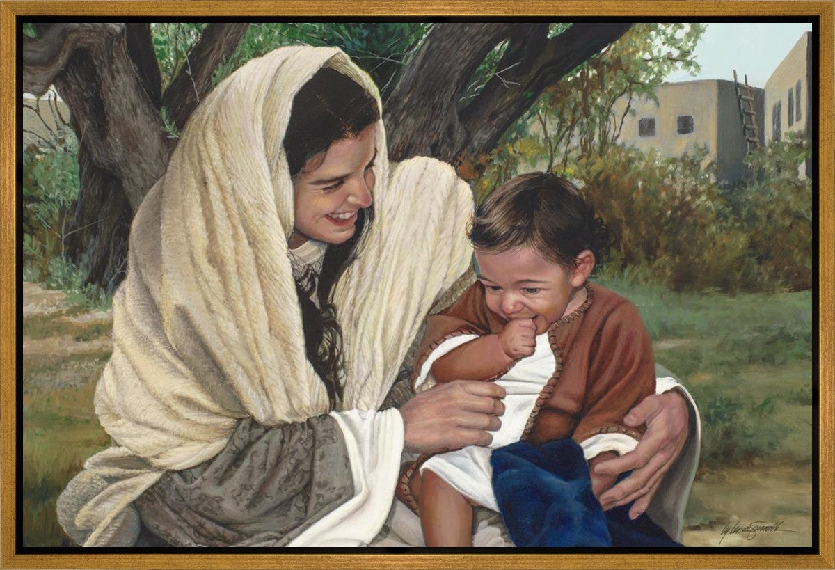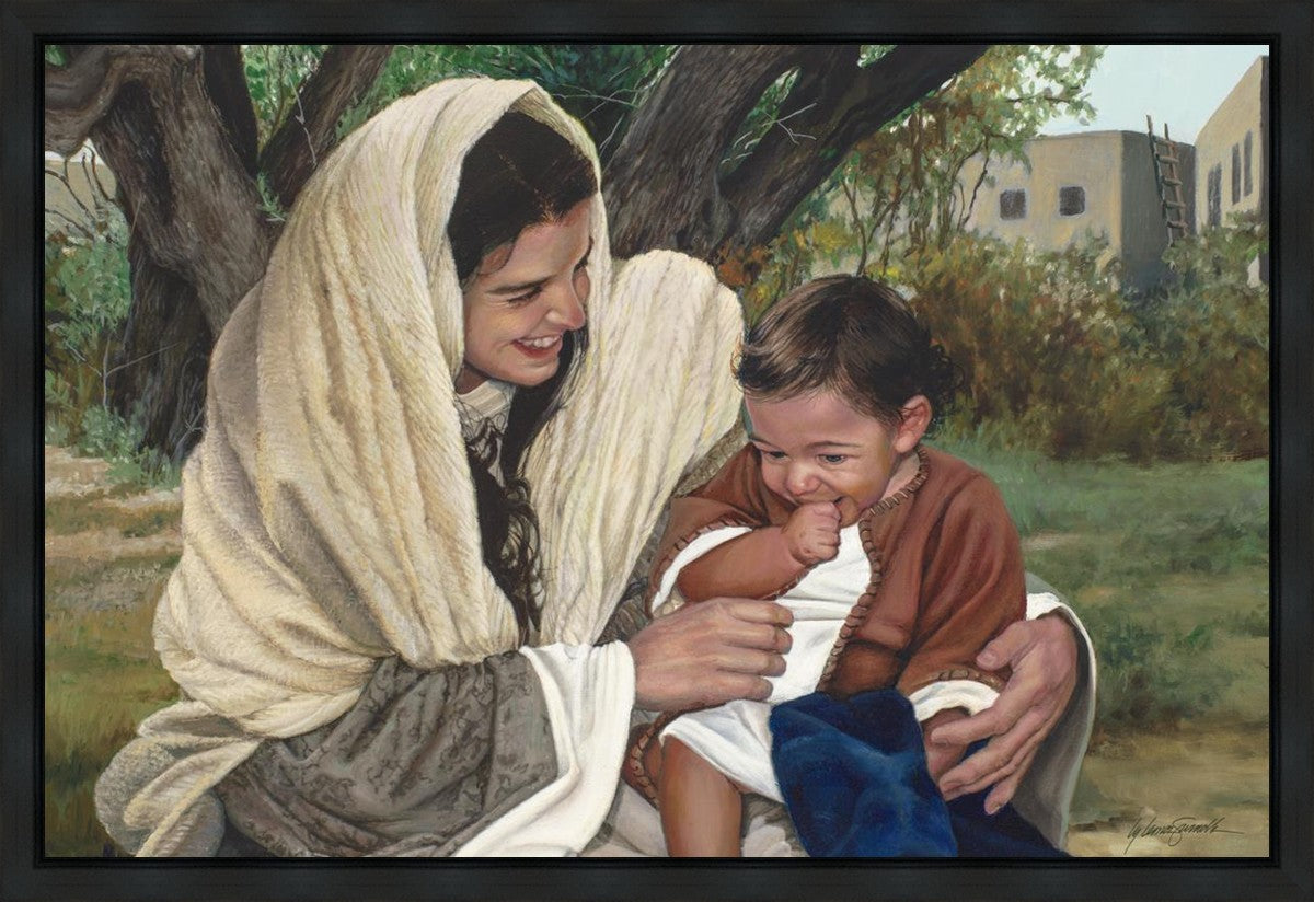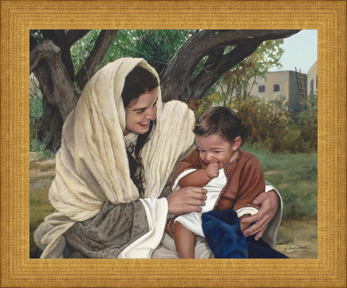 For All Small Moment is a painting by Liz Lemon Swindle. This painting depicts Mary with young Jesus sitting in front of a tree.