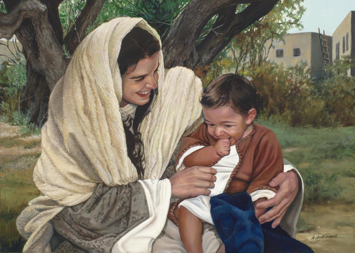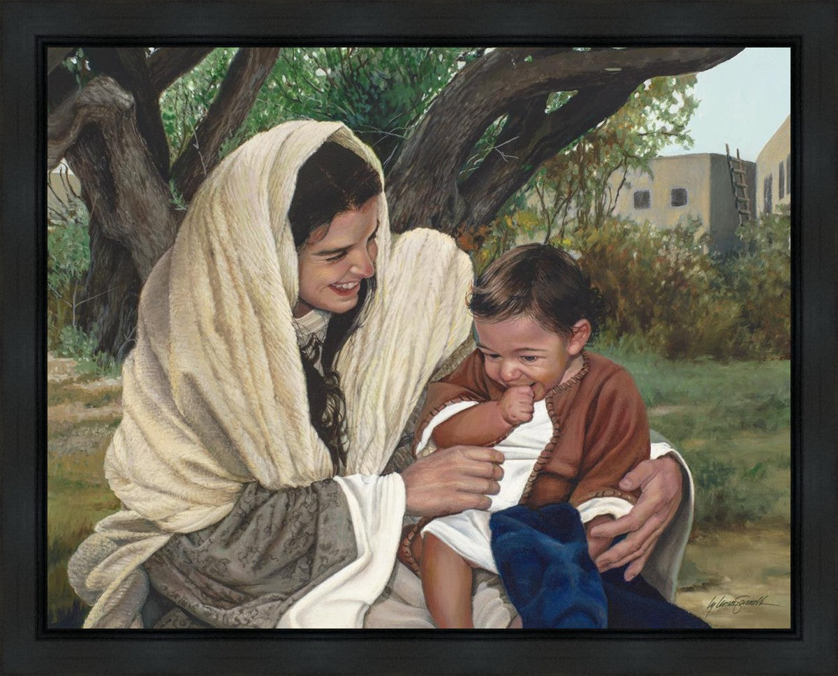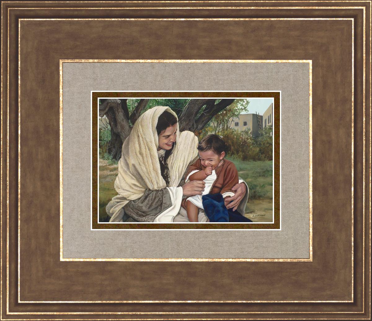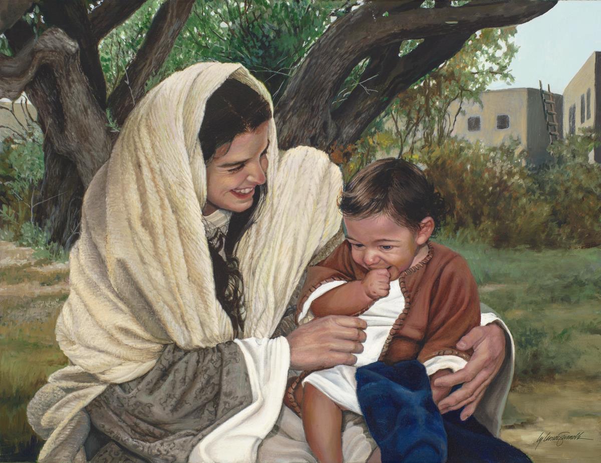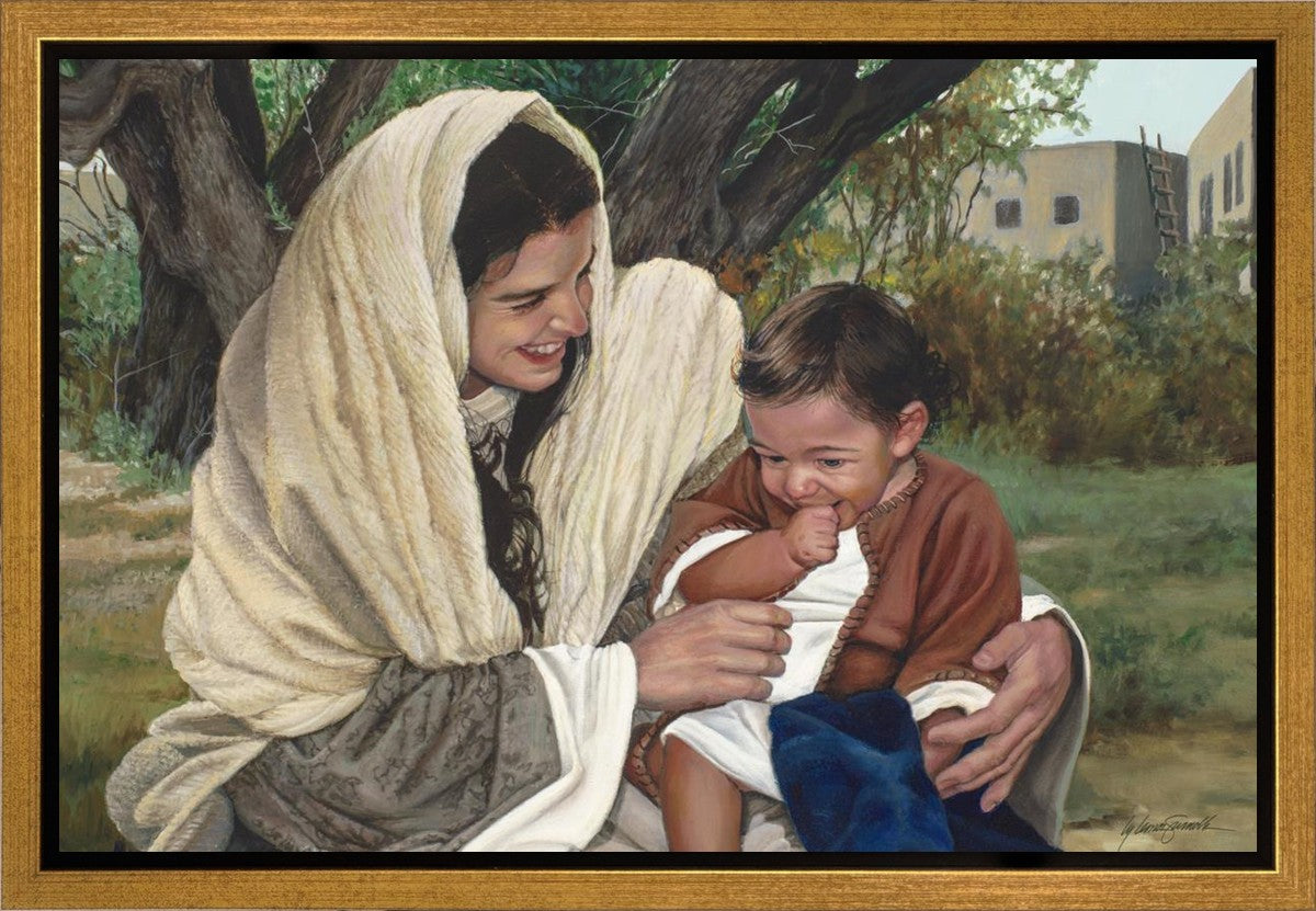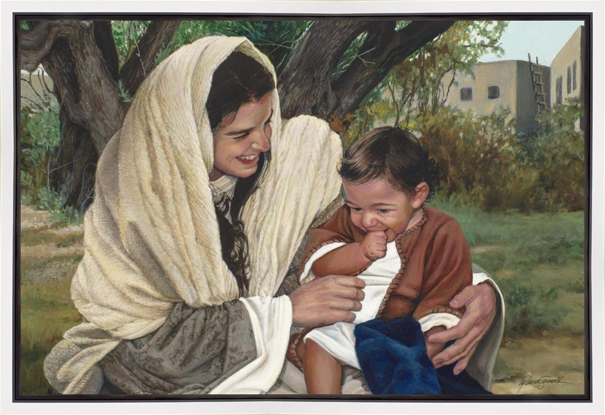 For All Small Moment is a painting by Liz Lemon Swindle. This painting depicts Mary with young Jesus sitting in front of a tree.