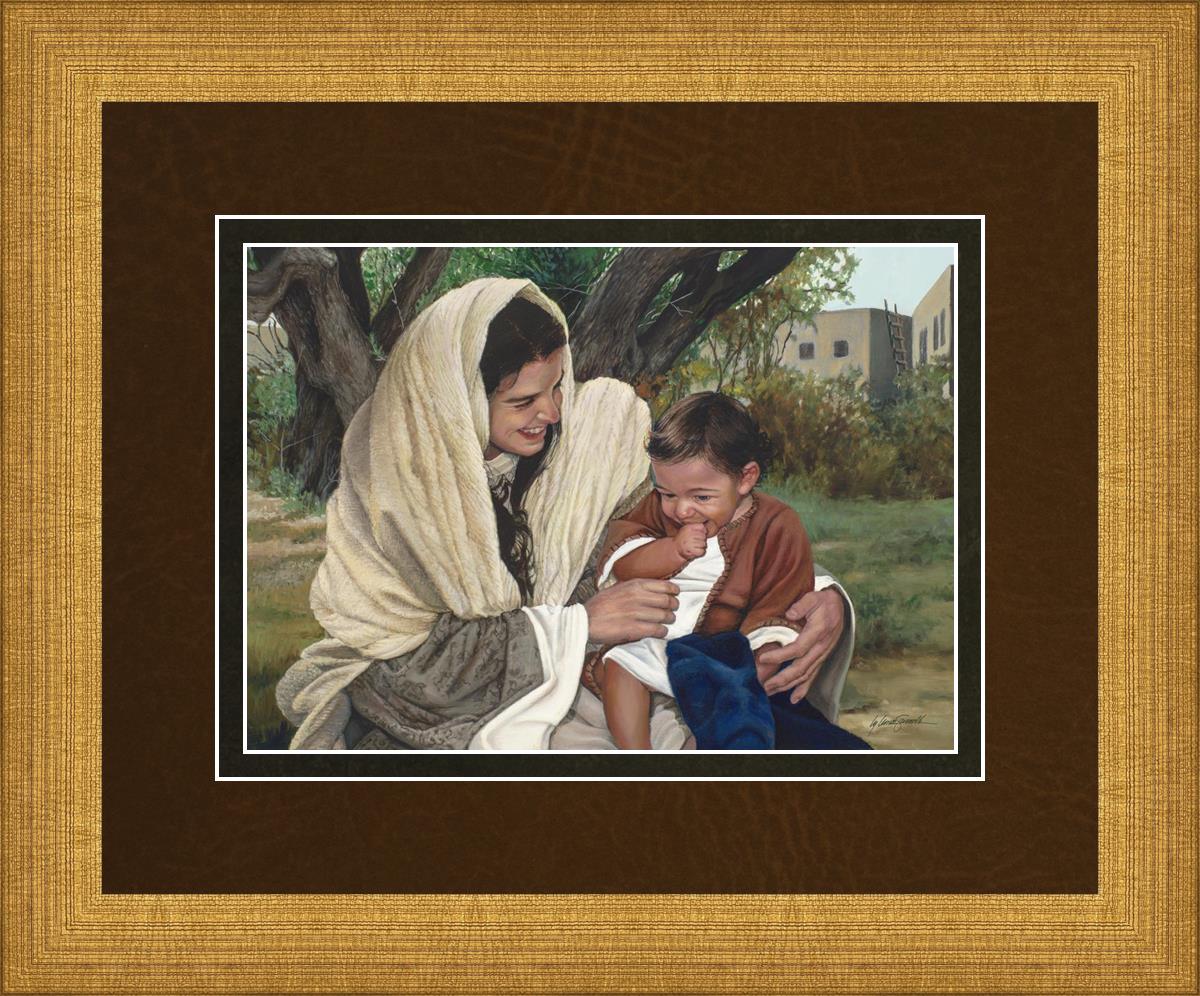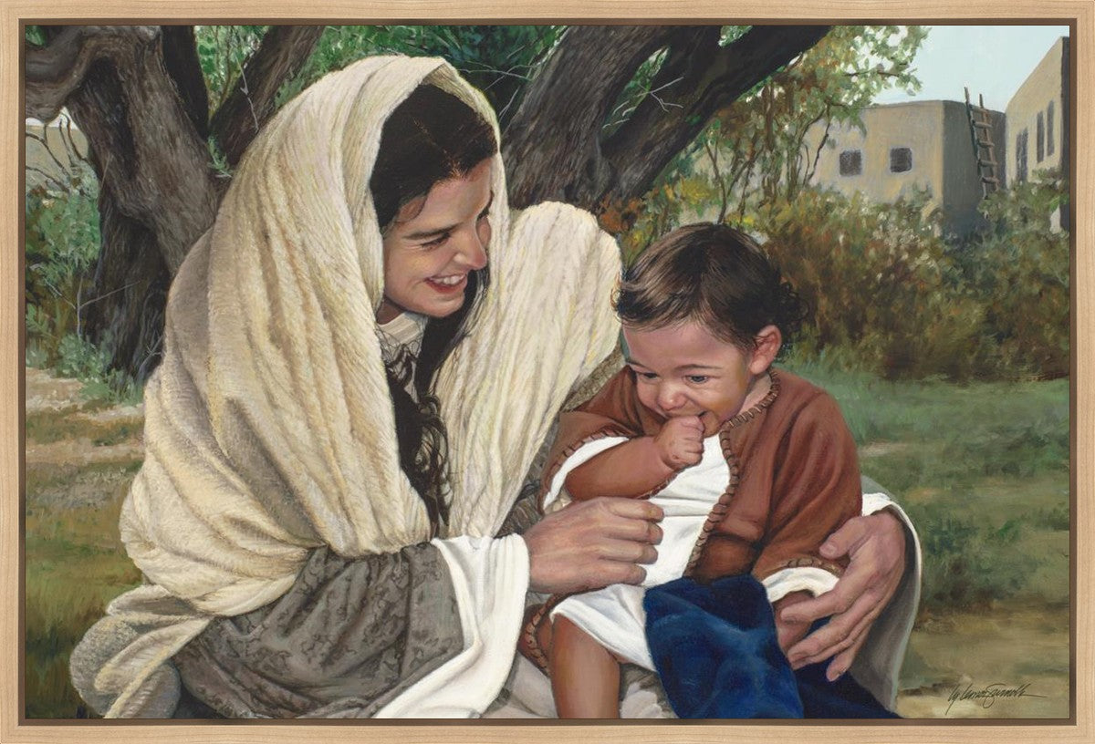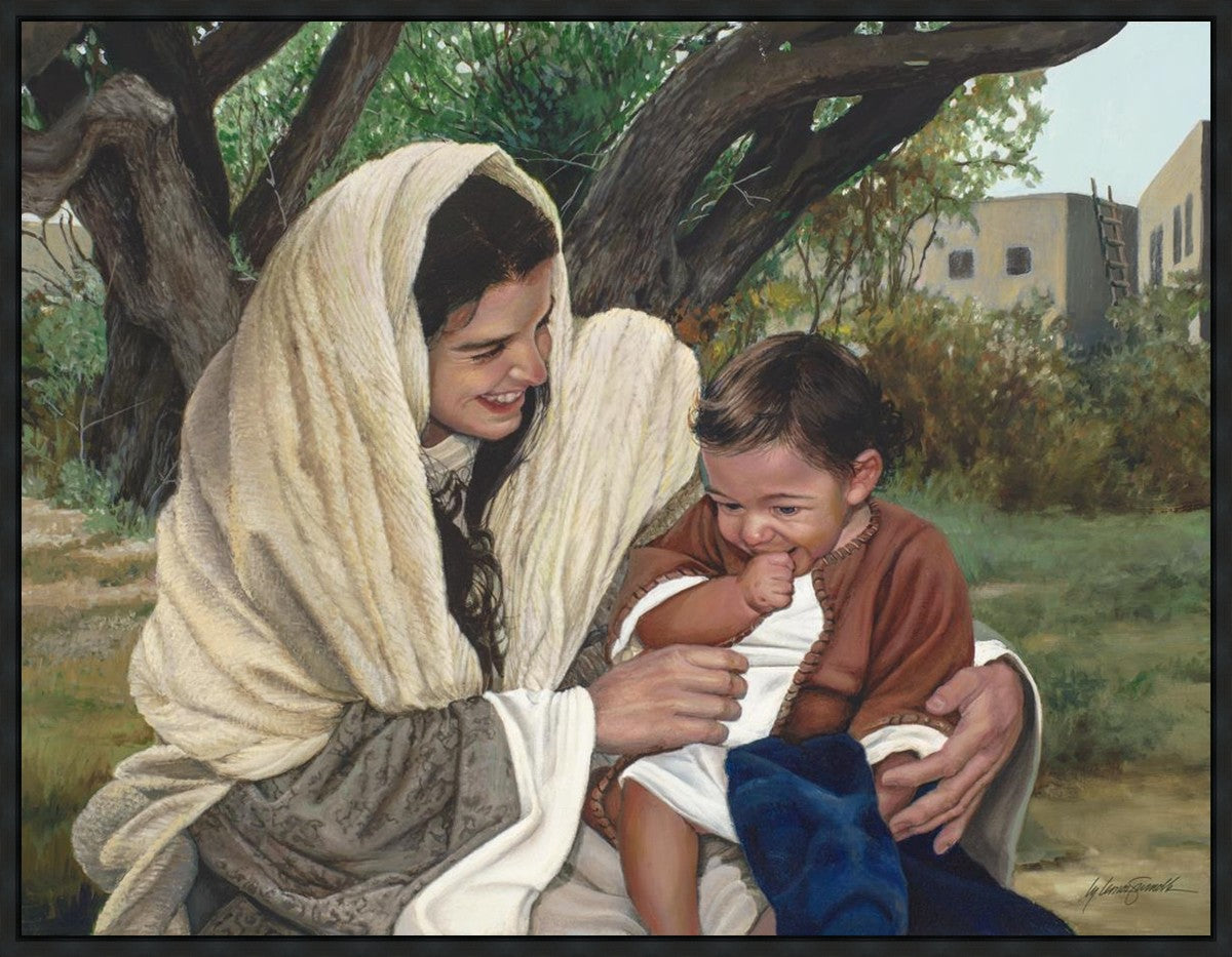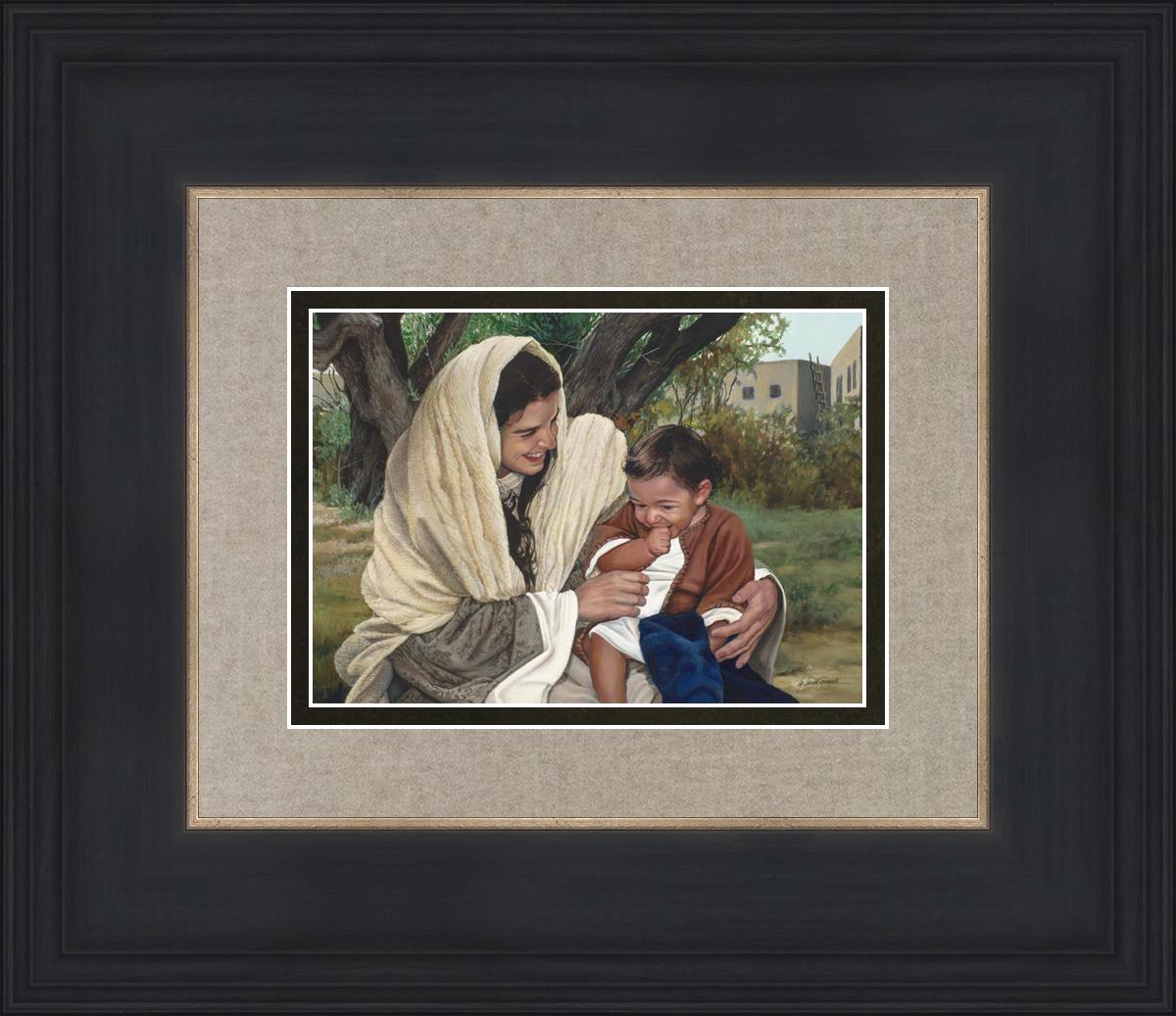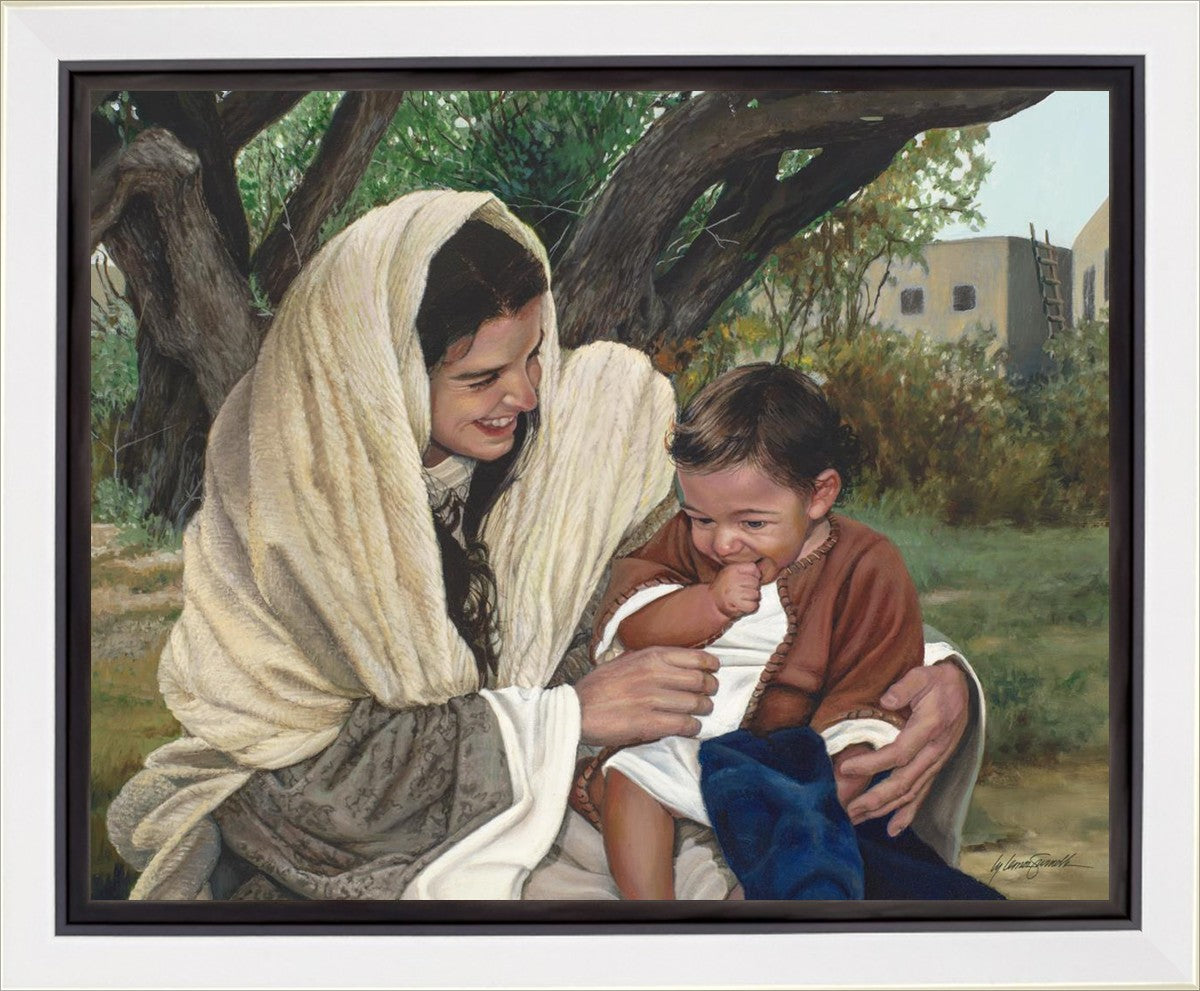 For All Small Moment is a painting by Liz Lemon Swindle. This painting depicts Mary with young Jesus sitting in front of a tree.