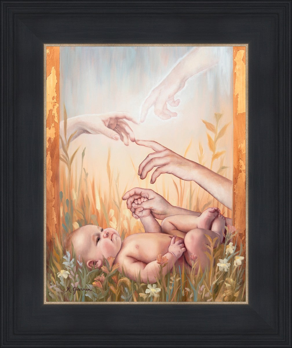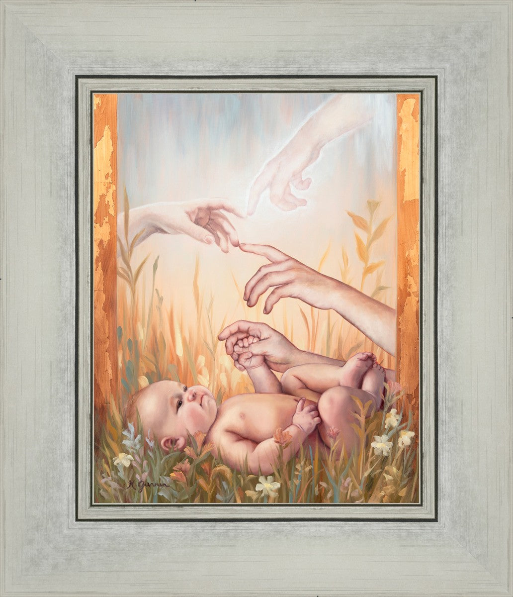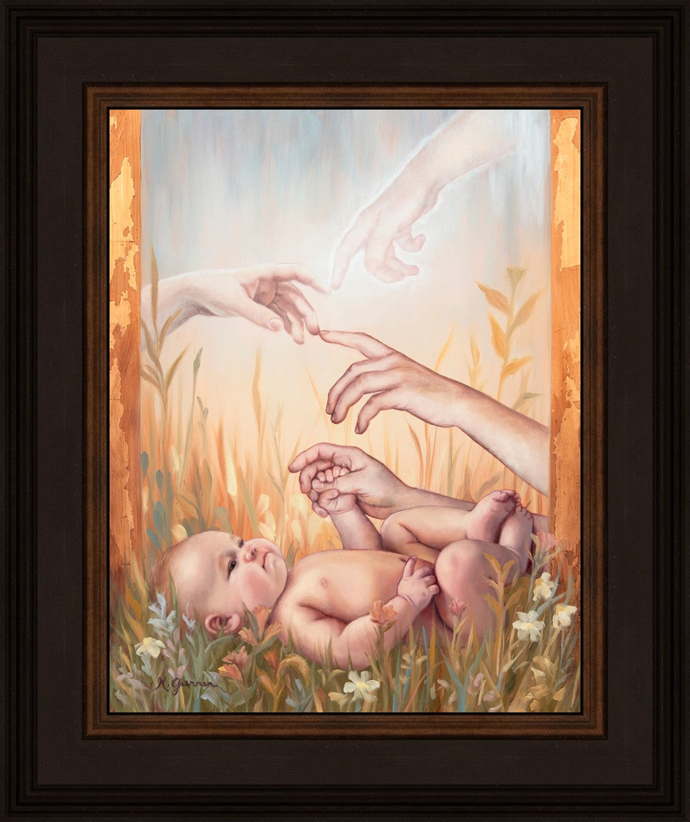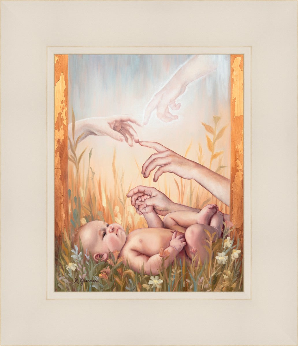 “Generations of Mothers” was first inspired by Michelangelo’s painting of the Creation of Adam. His painting was from a masculine perspective and I found myself excited to create a feminine version, with Heavenly Mother creating Eve. But the creation of Eve was more than the creation of just one woman, she was the vessel through which all the generations of the earth would be born.