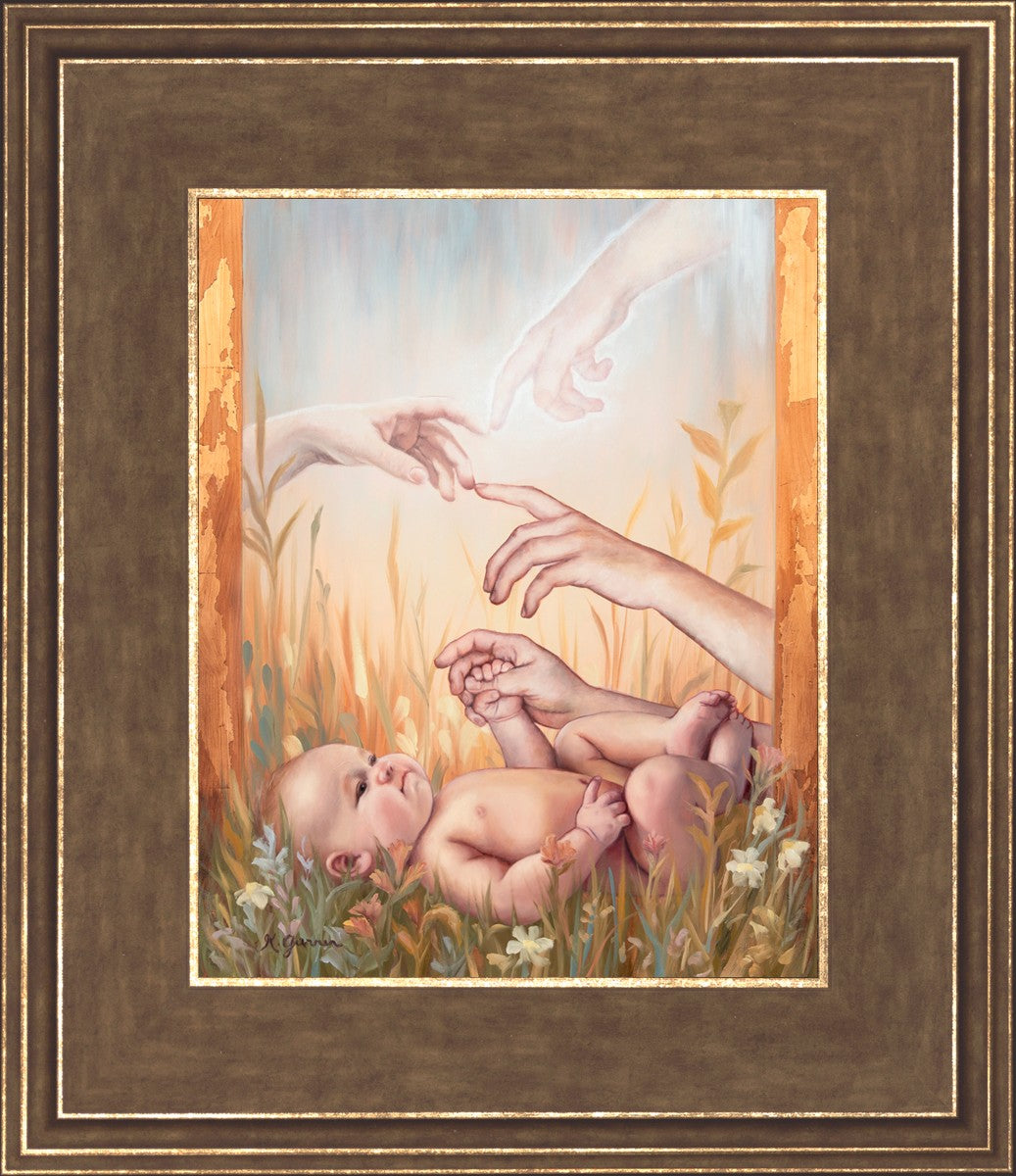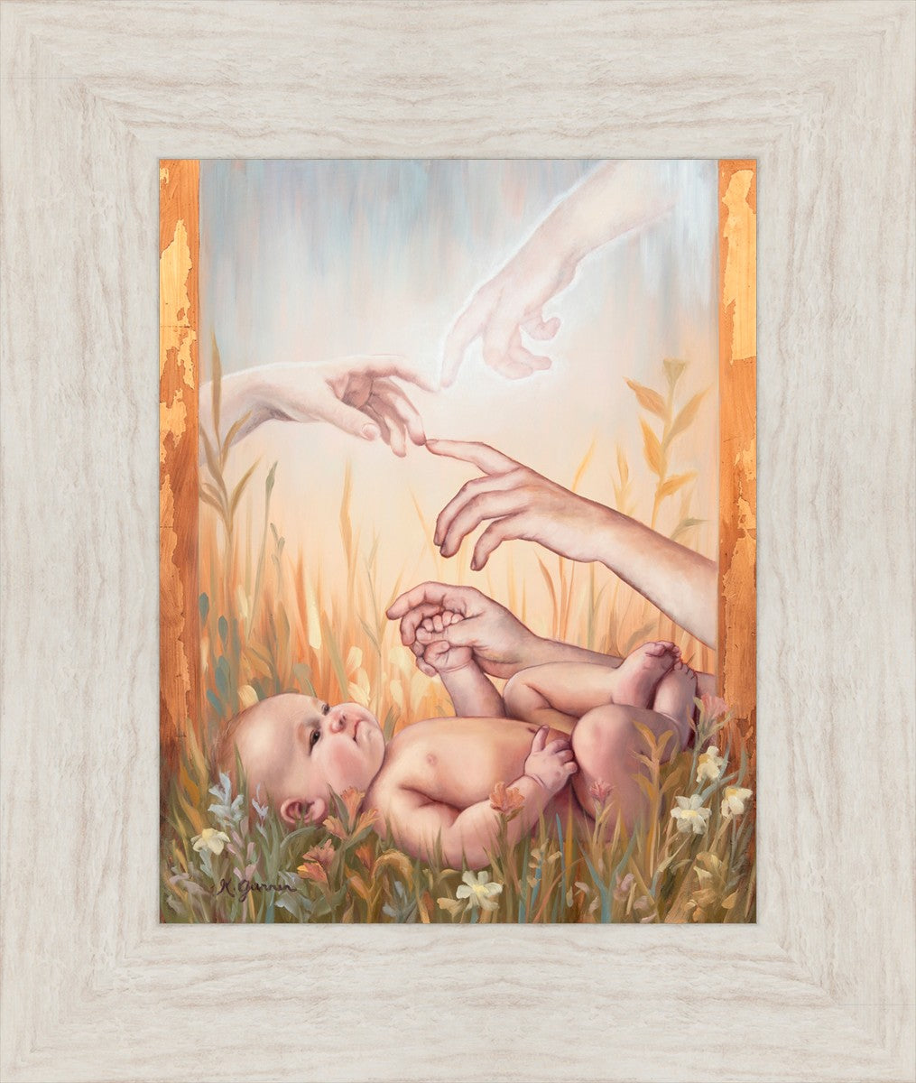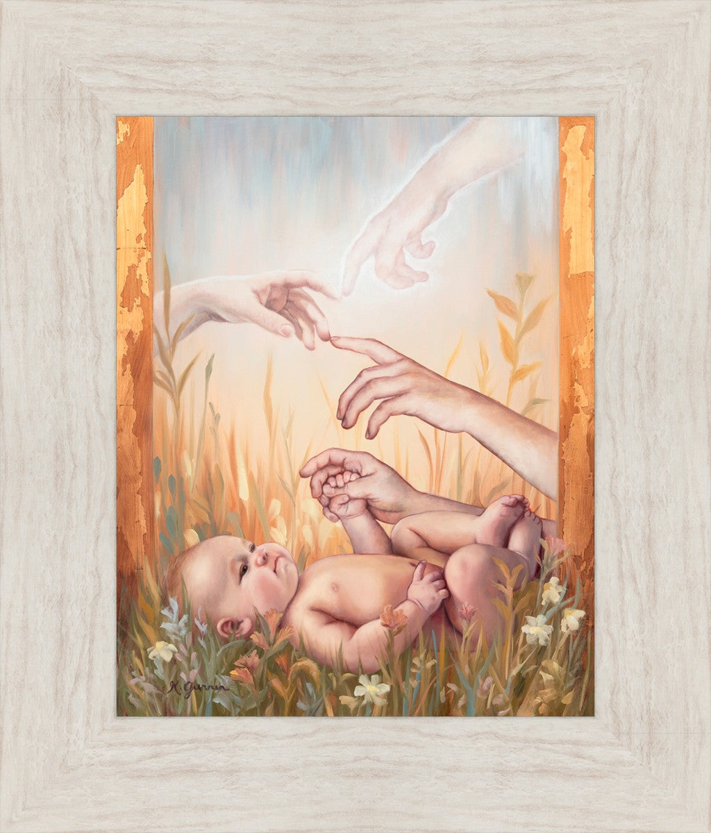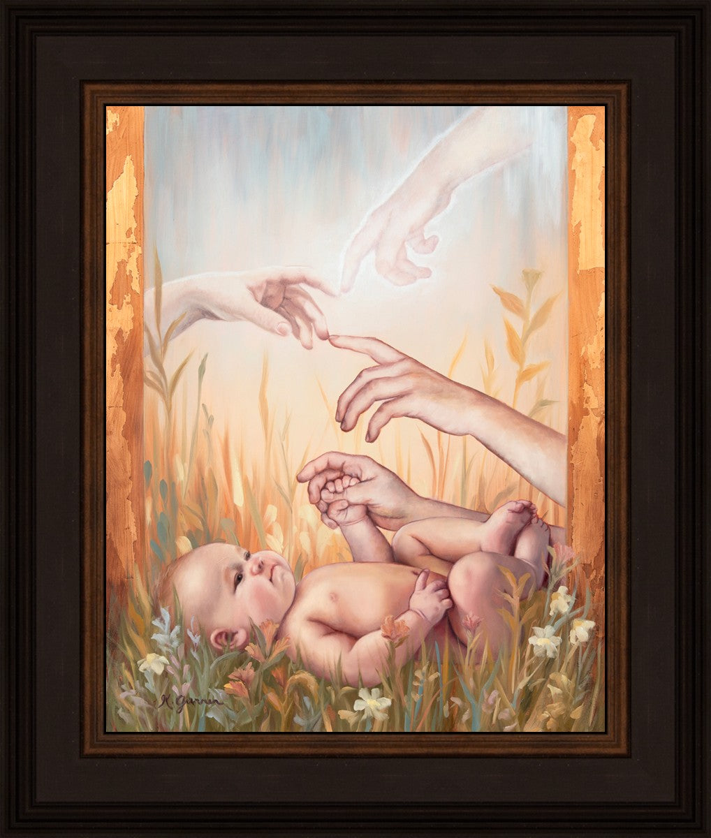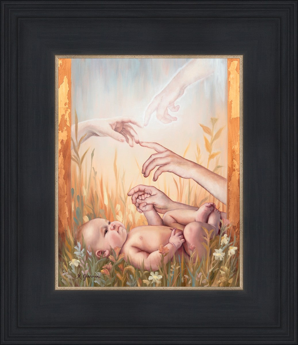 “Generations of Mothers” was first inspired by Michelangelo’s painting of the Creation of Adam. His painting was from a masculine perspective and I found myself excited to create a feminine version, with Heavenly Mother creating Eve. But the creation of Eve was more than the creation of just one woman, she was the vessel through which all the generations of the earth would be born.