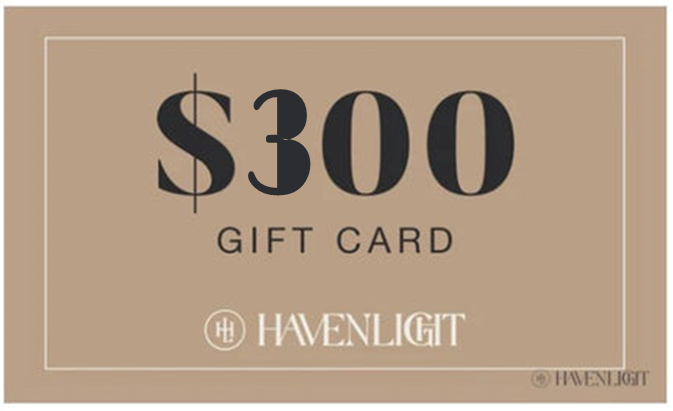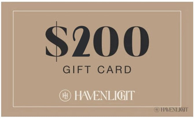 Gift cards are delivered by email and contain instructions to redeem them at checkout. Our gift cards have no additional processing fees and are valid at all Havenlight retail locations as well as online.