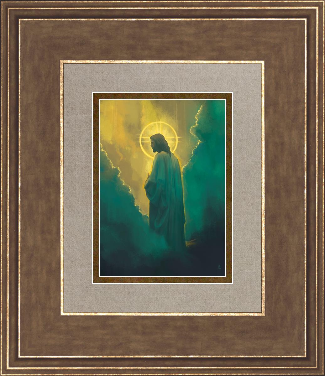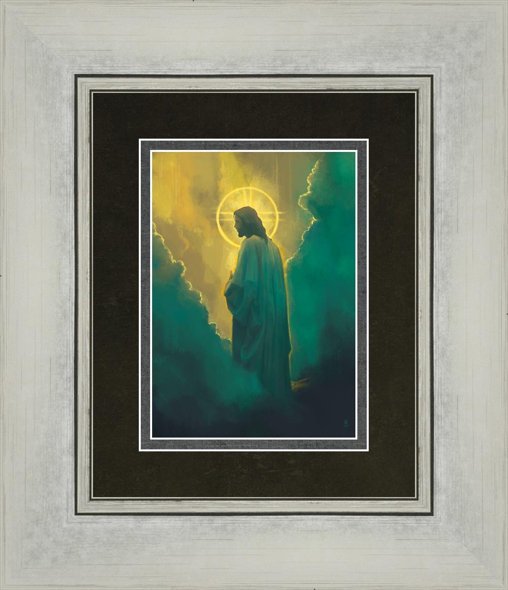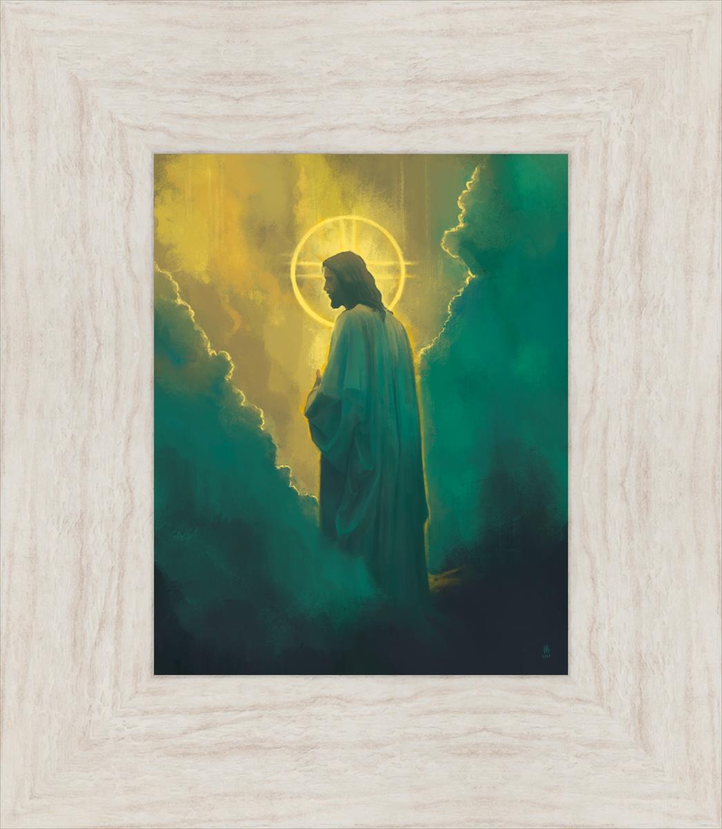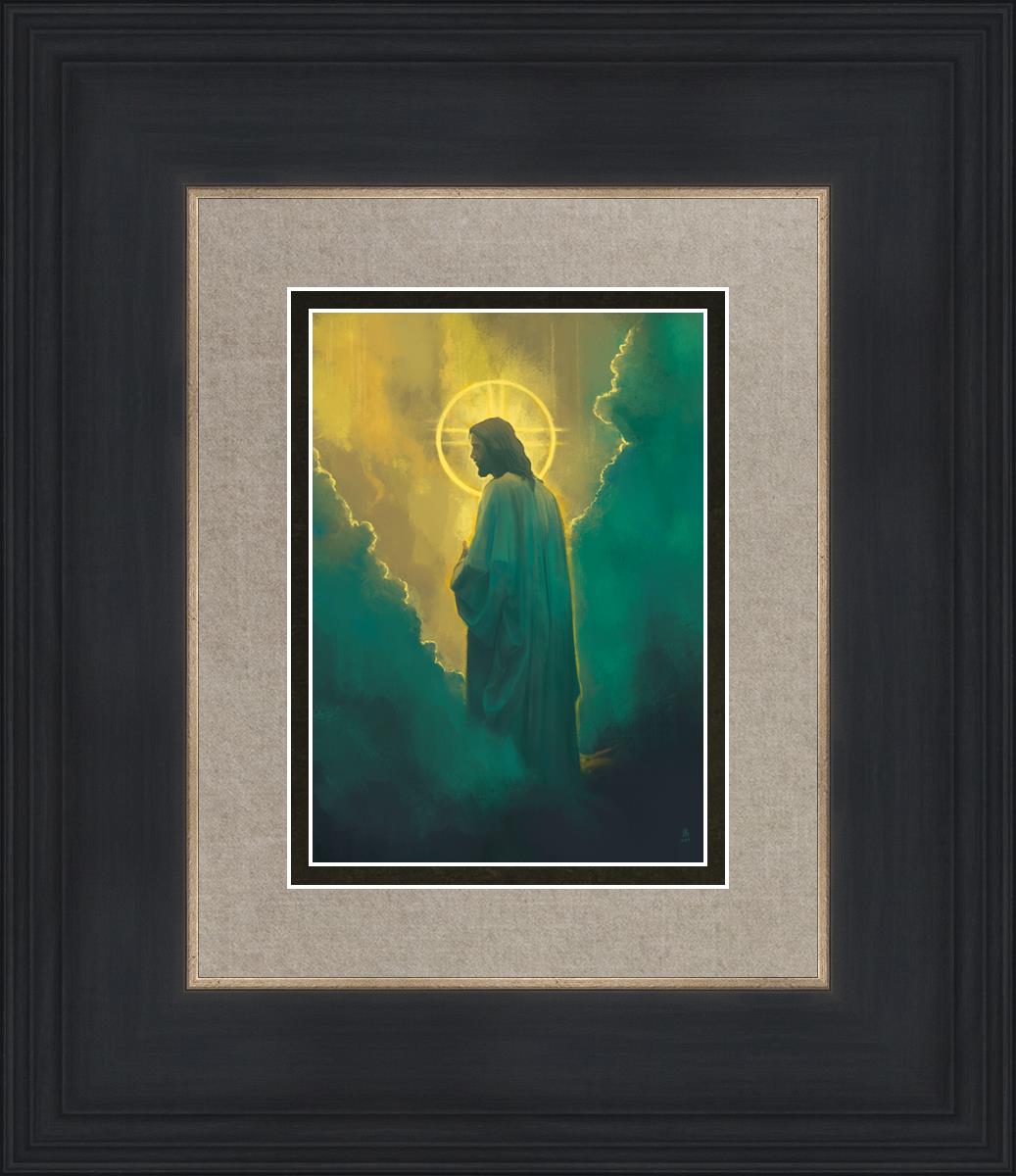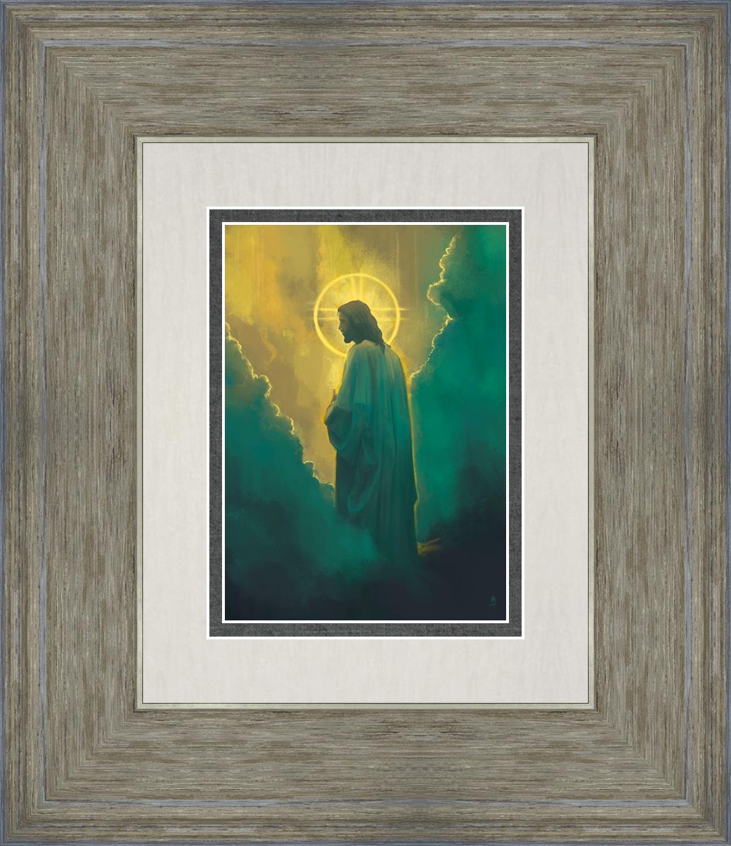 The clouds suggest the gentle and comforting nature of the divine. but also show that way the path and light is obscured without Christ to guide us. This painting offers a powerful and evocative portrayal of Jesus Christ, inviting viewers to contemplate the divine and its relationship to humanity.