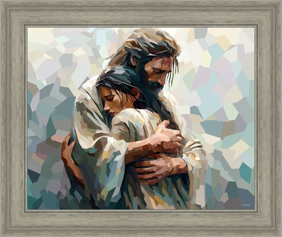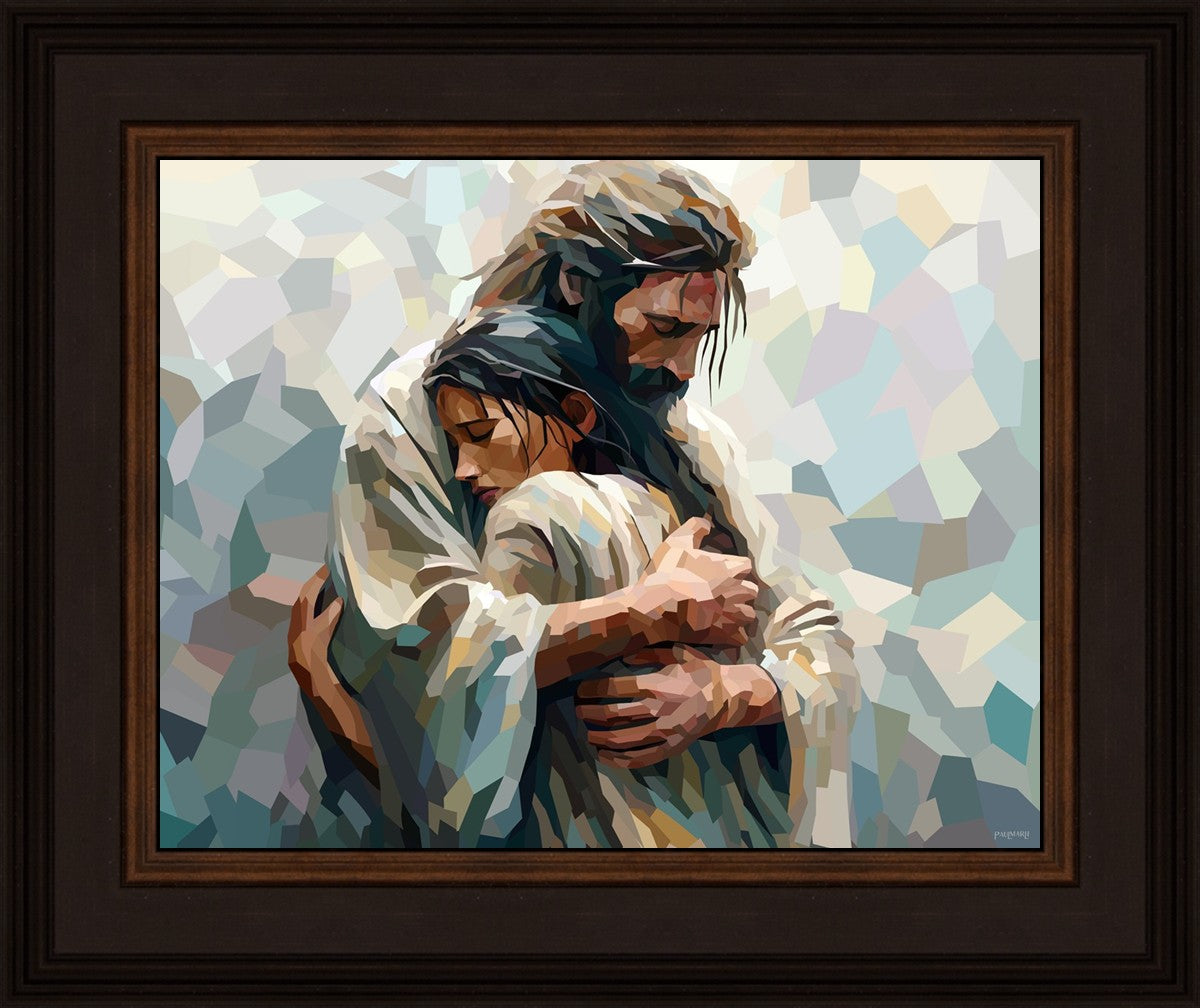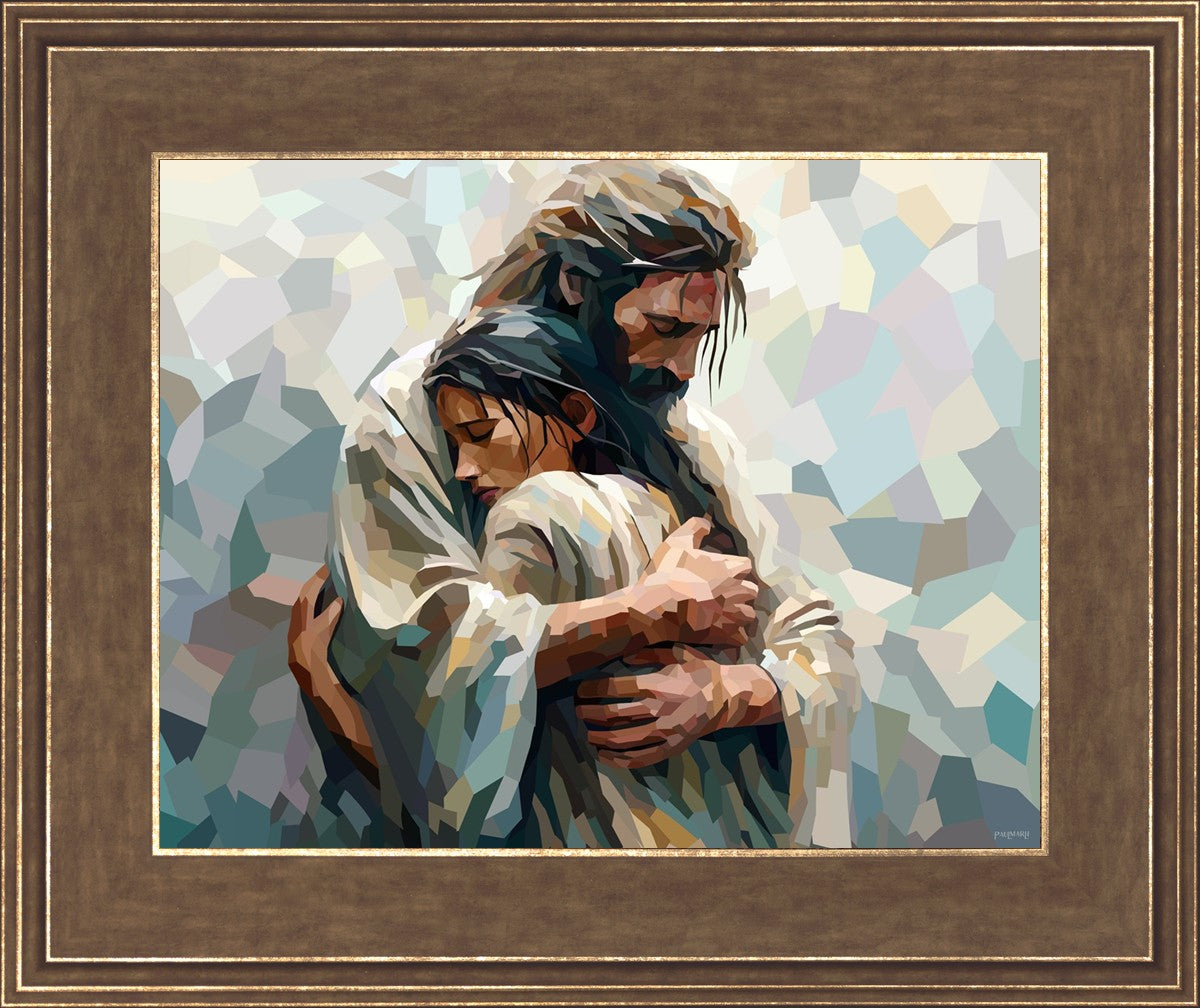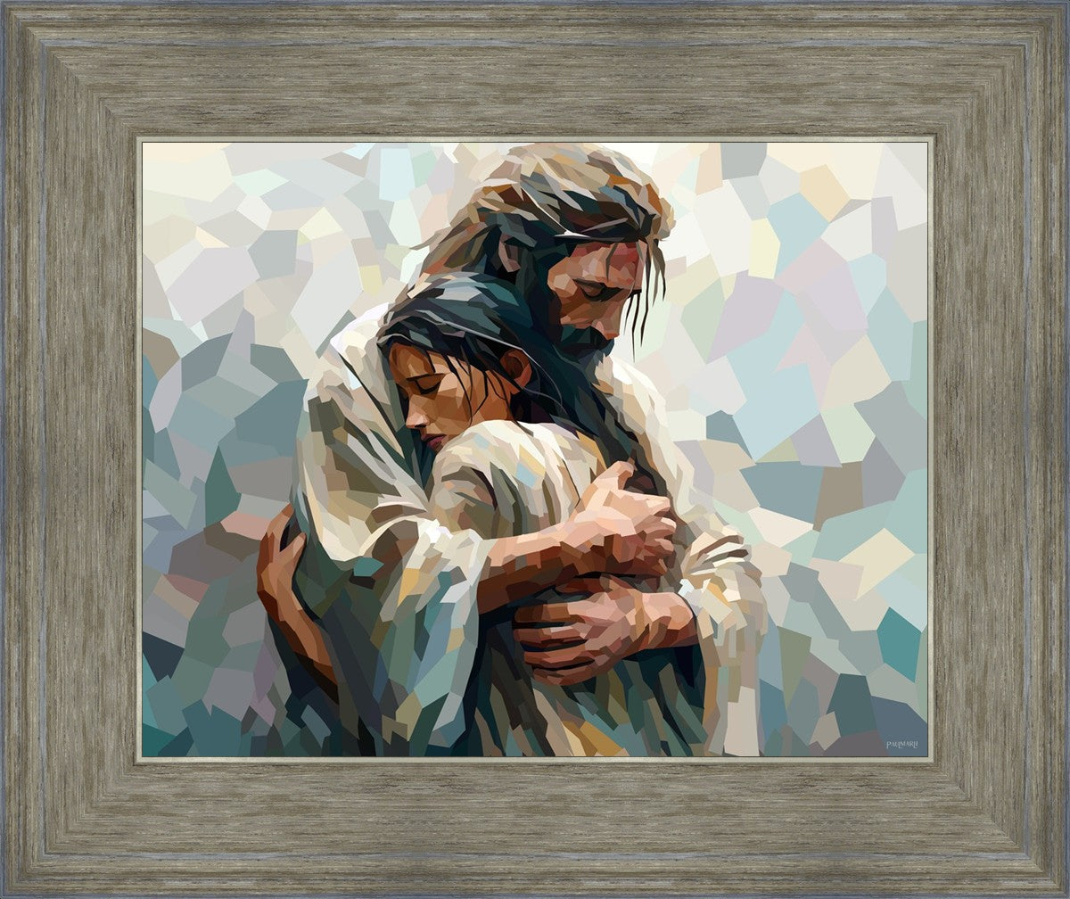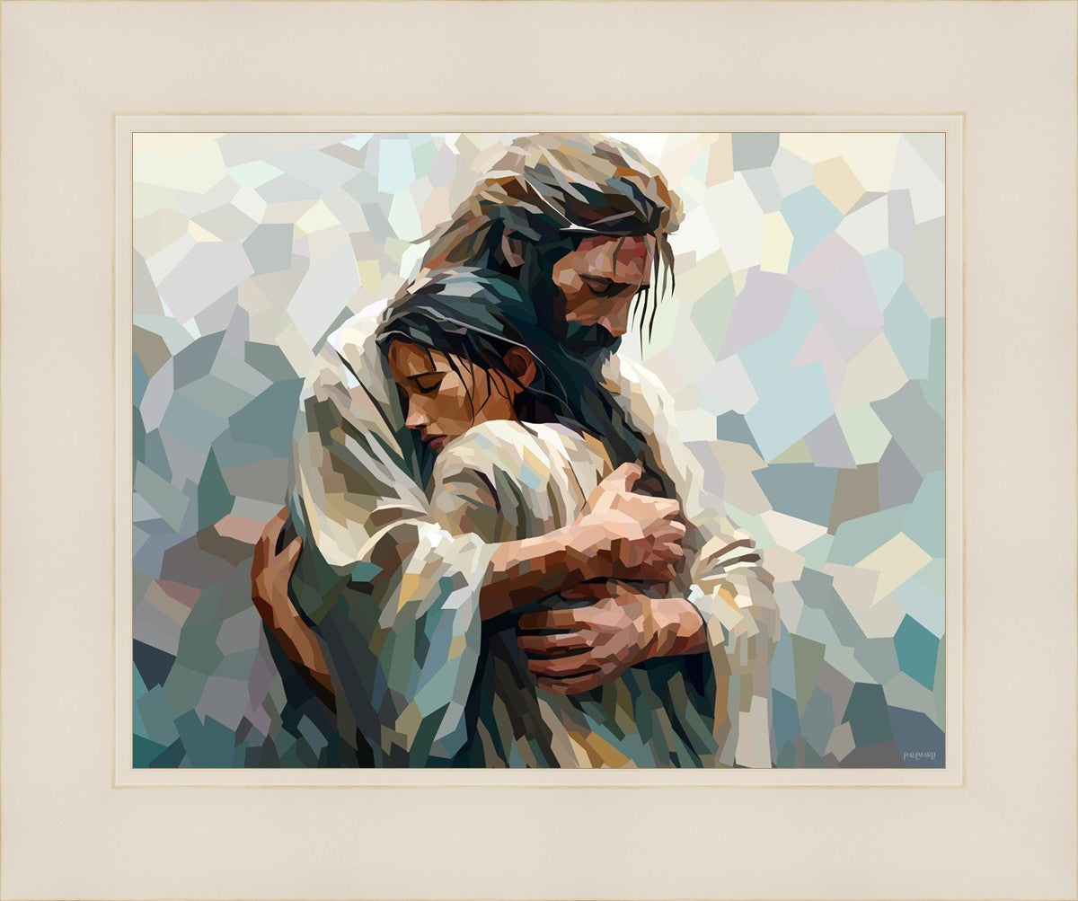 I am so pleased with my artwork. It arrived in perfect condition and in a timely manner. I can’t wait to frame it and hang it up. It makes me think of Jesus giving me a hug when I need it most!