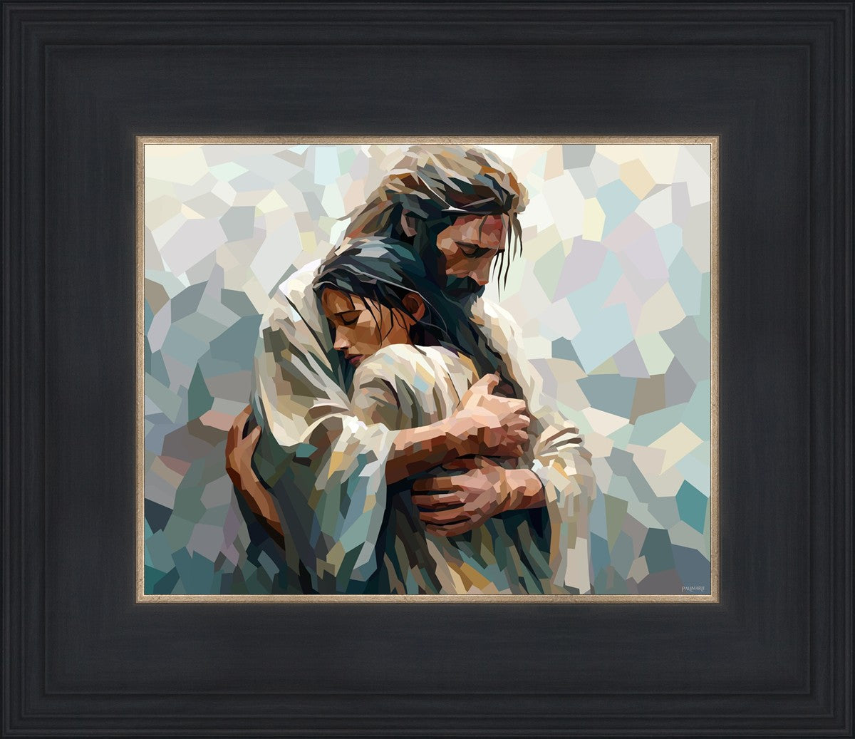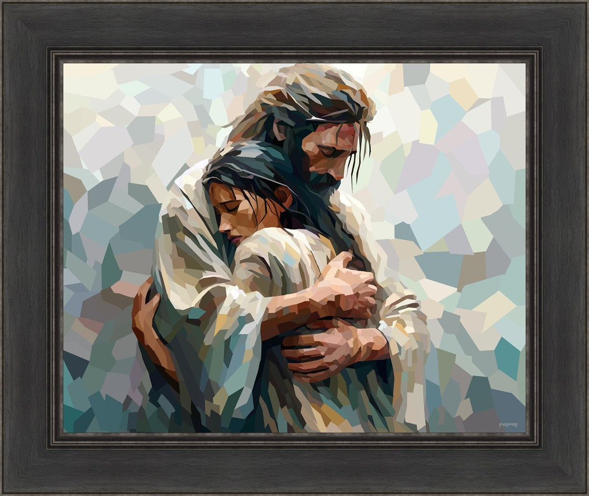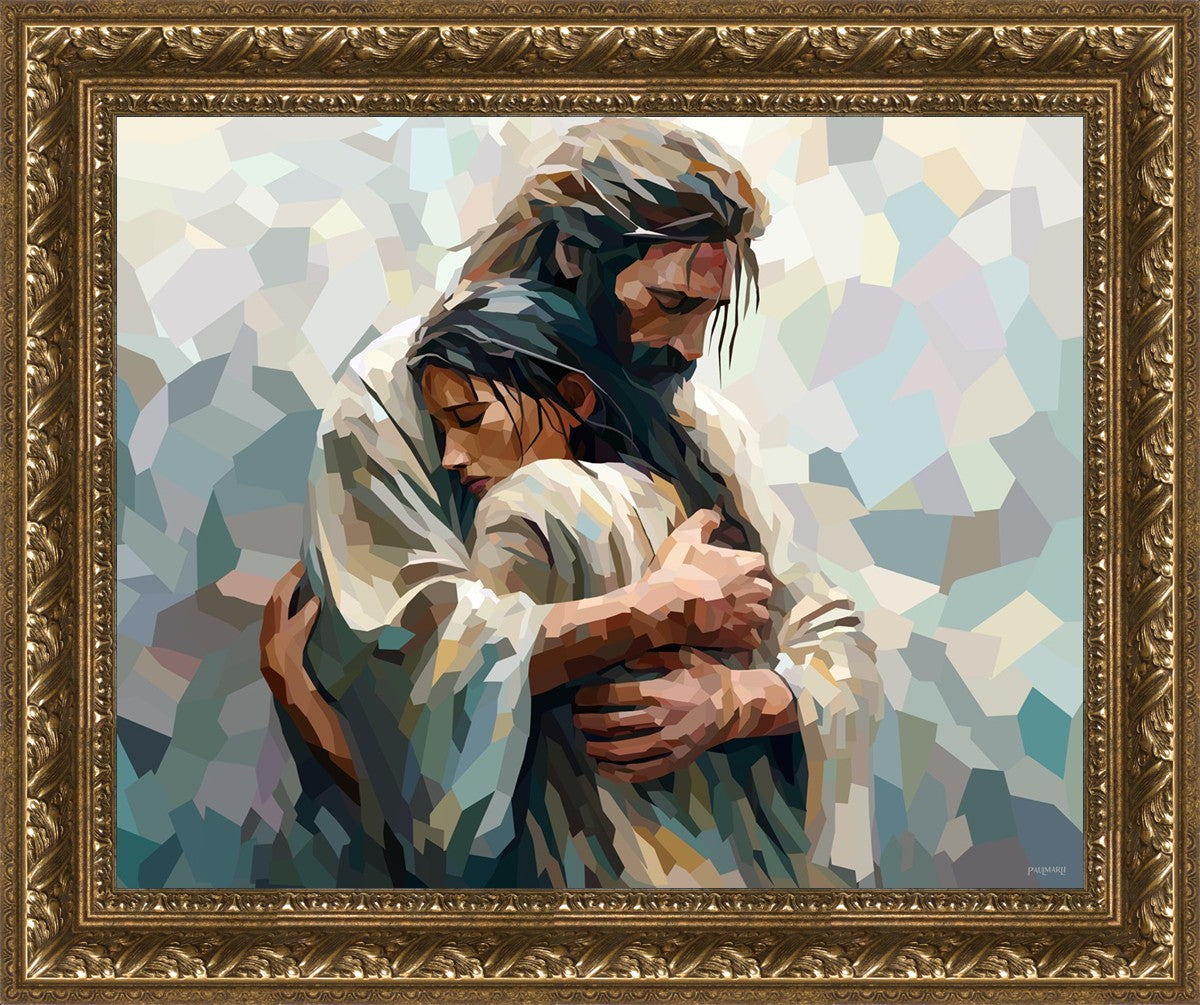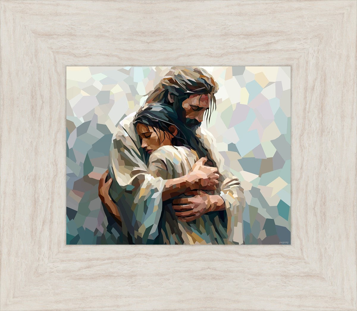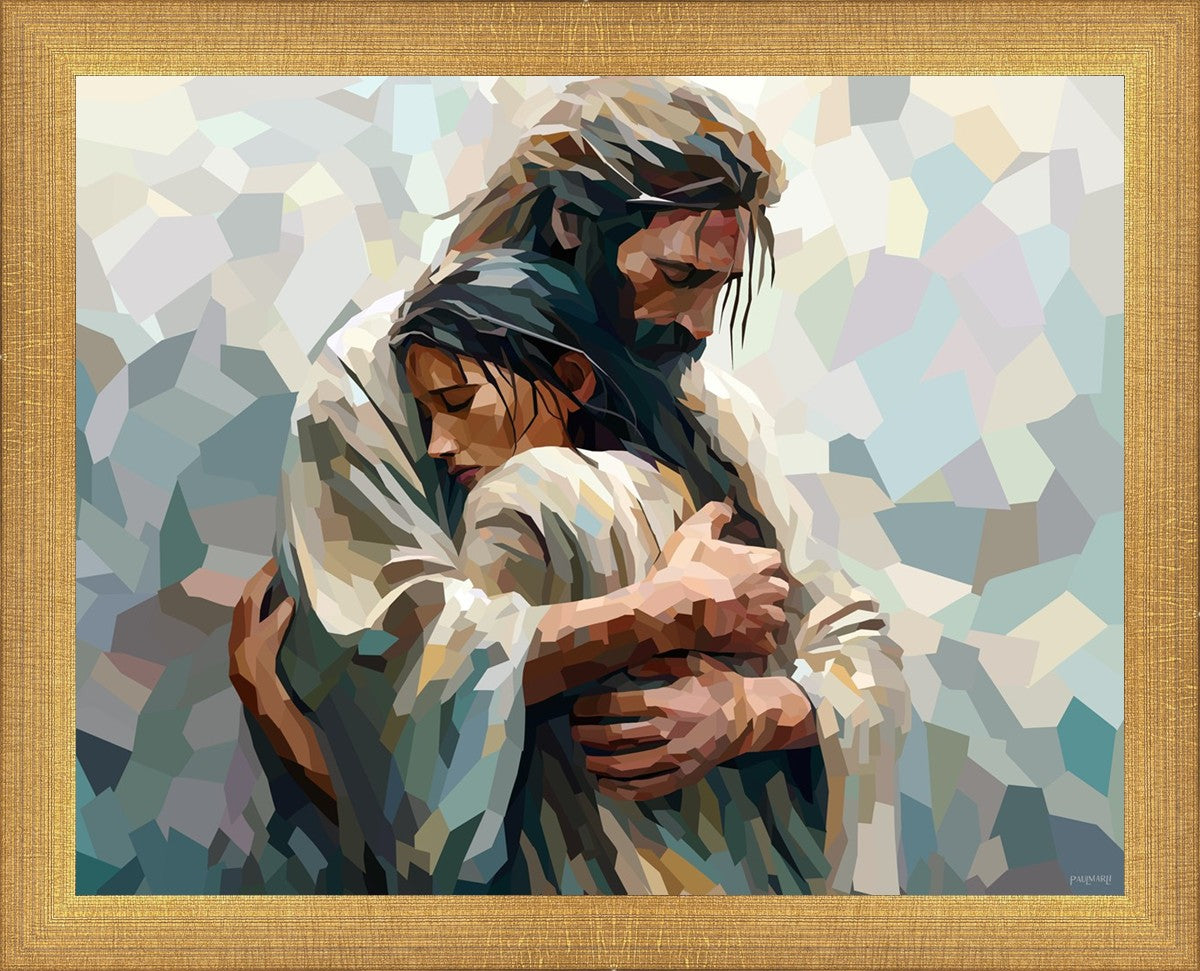 I am so pleased with my artwork. It arrived in perfect condition and in a timely manner. I can’t wait to frame it and hang it up. It makes me think of Jesus giving me a hug when I need it most!