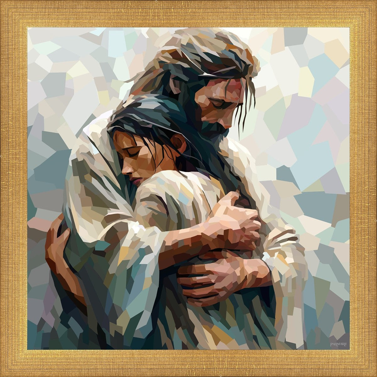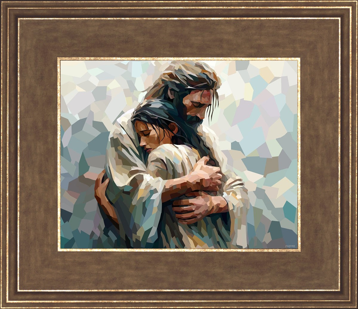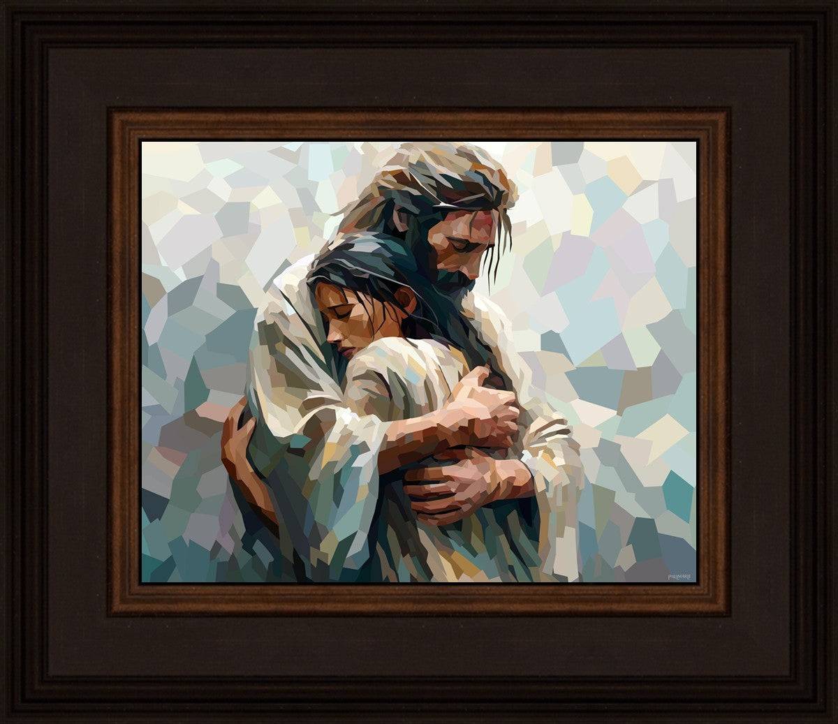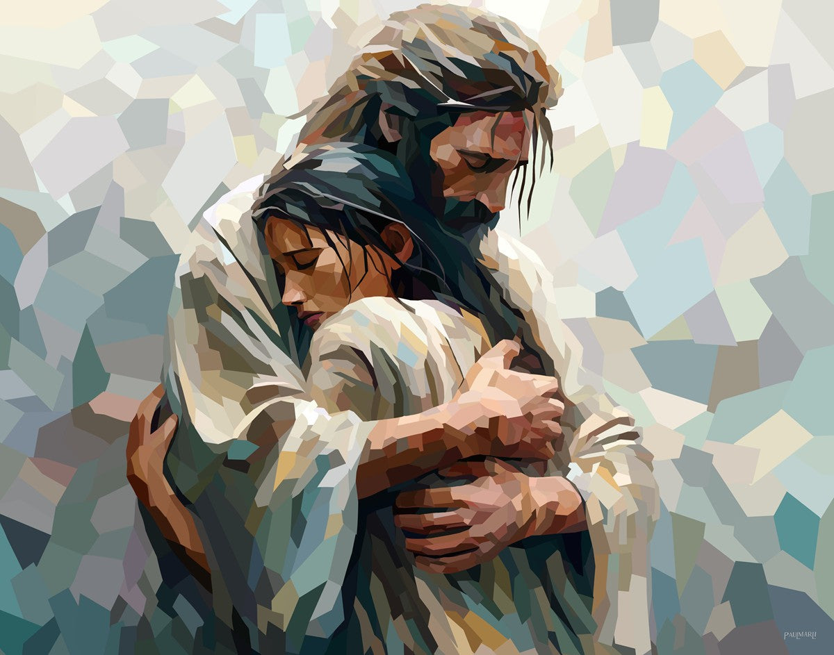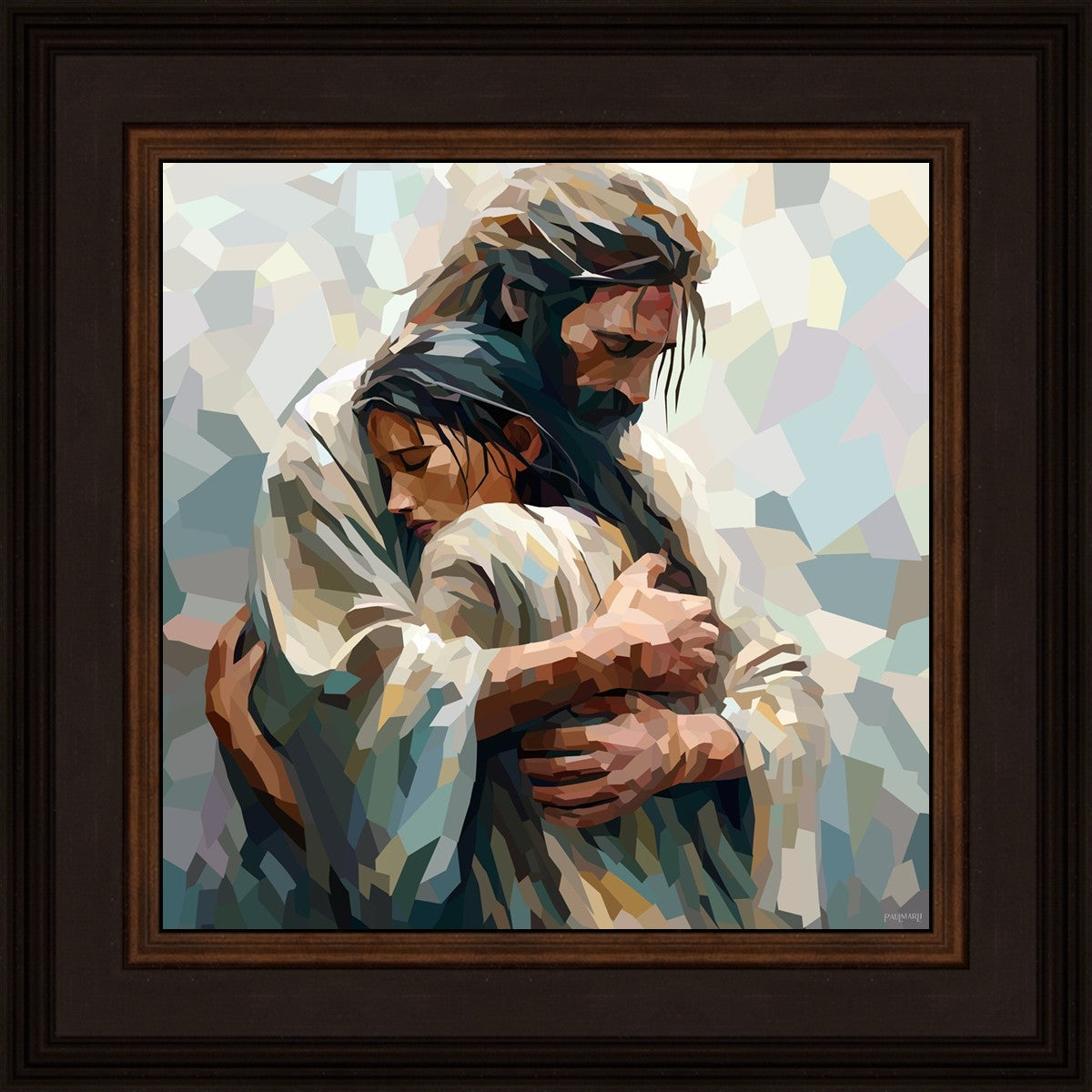 I am so pleased with my artwork. It arrived in perfect condition and in a timely manner. I can’t wait to frame it and hang it up. It makes me think of Jesus giving me a hug when I need it most!