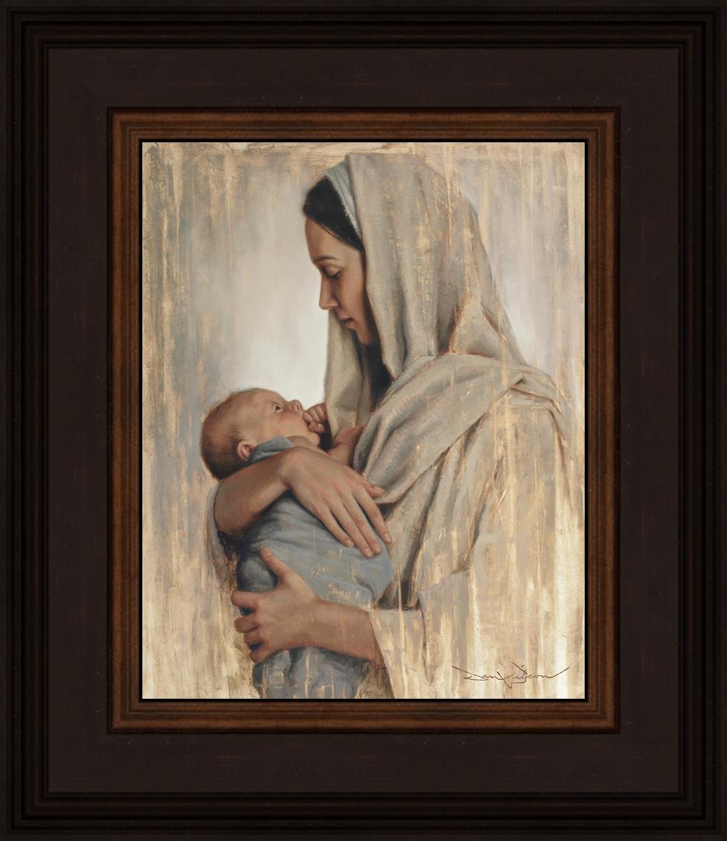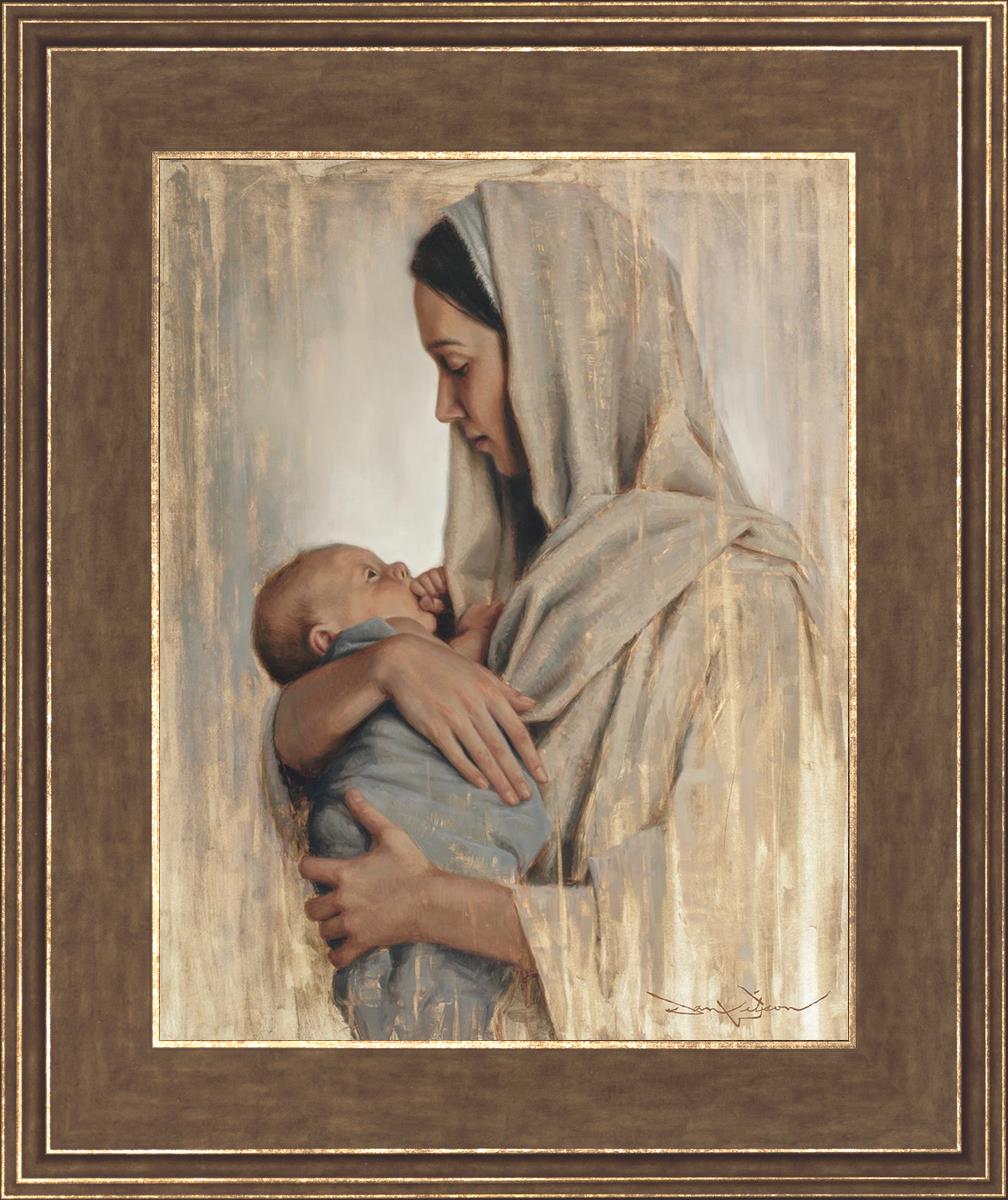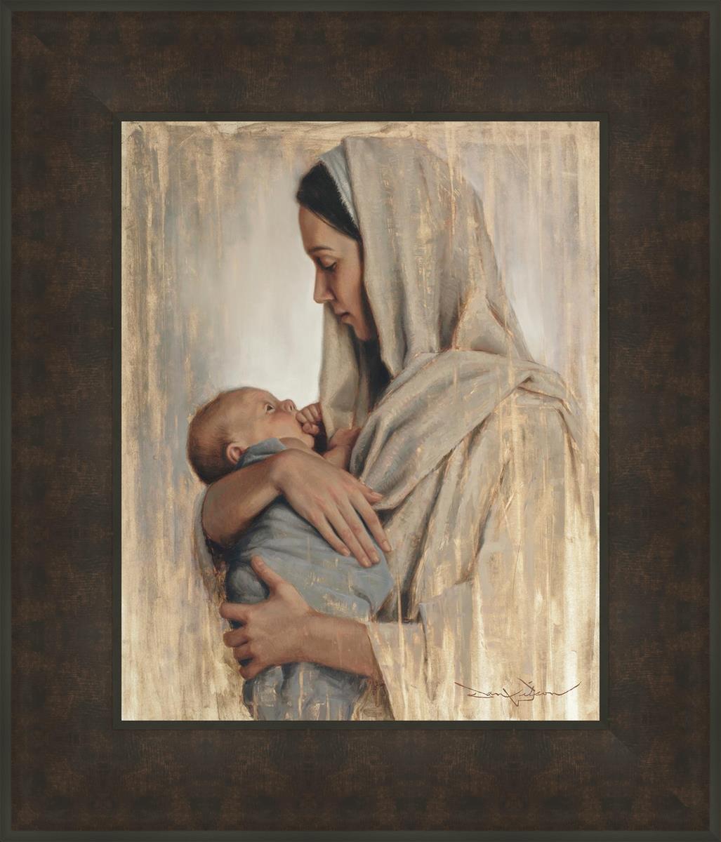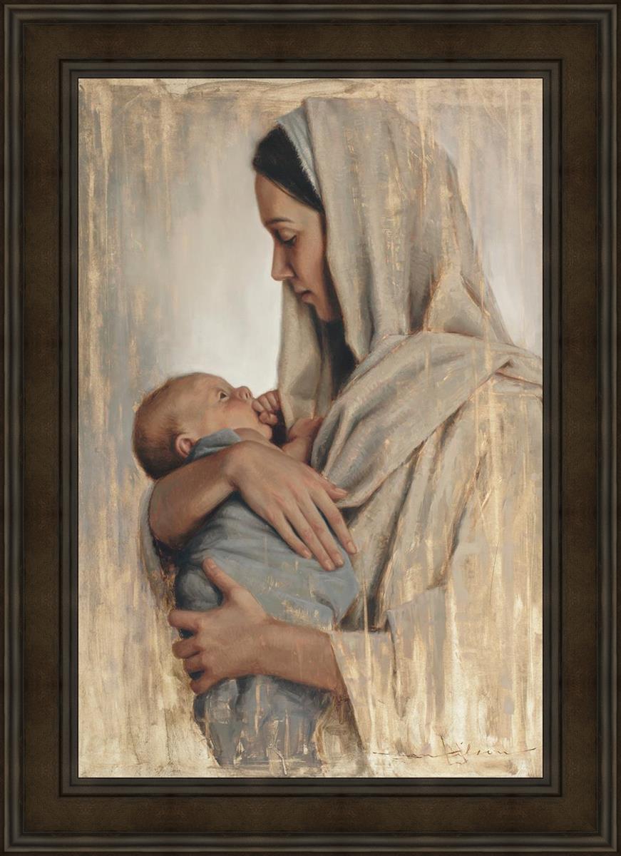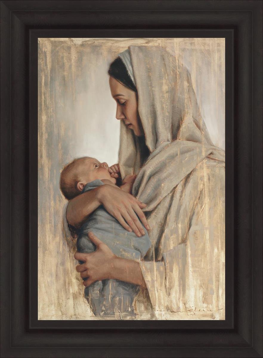 It's a beautiful picture! I love the way the picture was framed and the quality of it. It's a great depiction of the love and awe that Mary has for the love that you can see in her face as she holds Jesus in her arms.